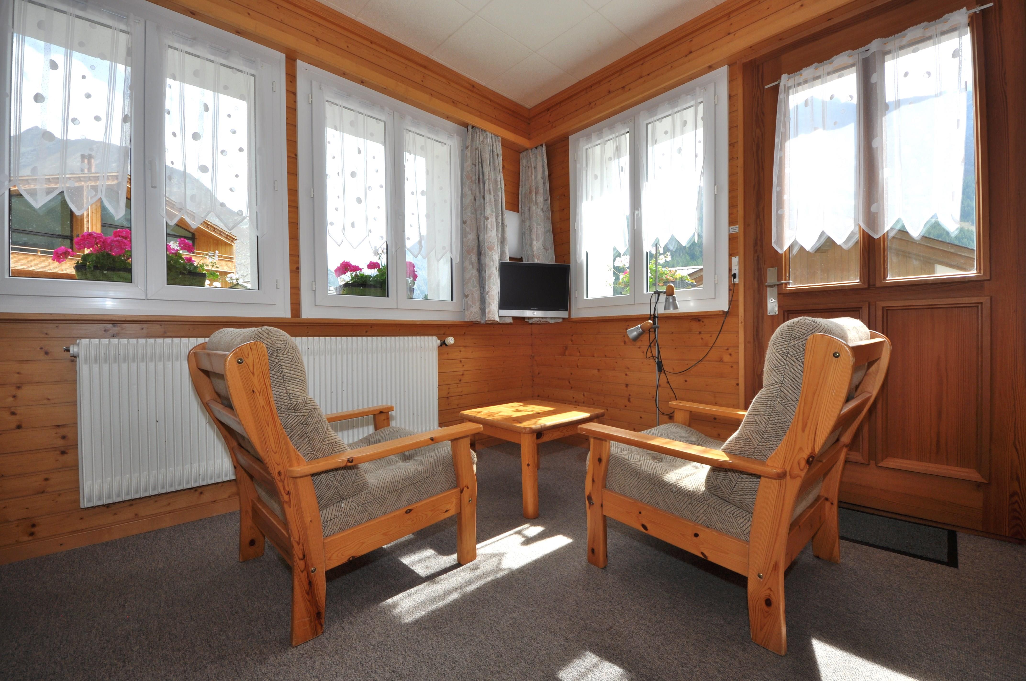 Studio (24 m2, 2 Betten), Erdgeschoss, Bad/WC, TV, gemütlich eingerichtet, das Haus liegt 4 Gehminuten vom Dorfkern erhöht, sehr sonnige und ruhige Lage, herrliche Aussicht, in der Nähe der Luftseilbahn Hannig.