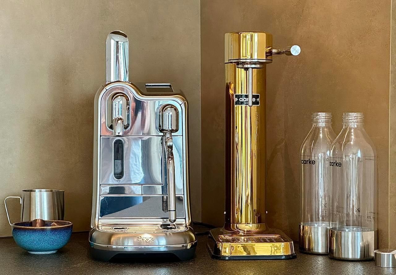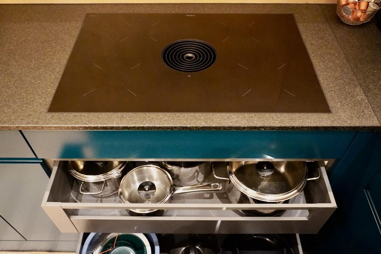 Sonstige Kücheneinrichtung (Küche1): Bora Kochherd, V-Zug Kombisteamer-Ofen, diverse Pfannen und Teller, Kohlensäurewasser-Spender, diverse weitere Ausstattung