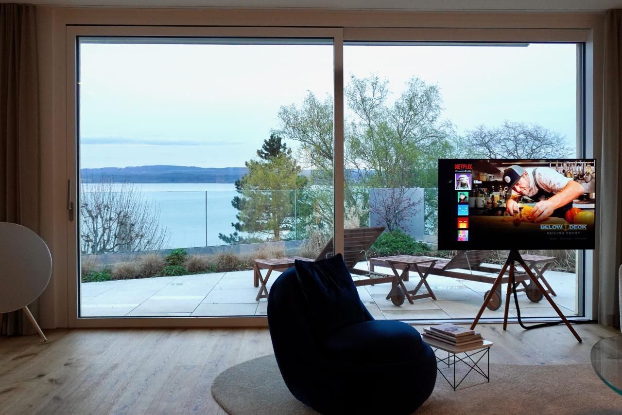 Direkt neben dem idyllischen Bodensee gelegen, werden Sie von jedem Fenster aus atemberaubende Ausblicke genießen. Verbringen Sie eine schöne Zeit auf den Liegenstühlen und genießen Sie die malerische Landschaft.