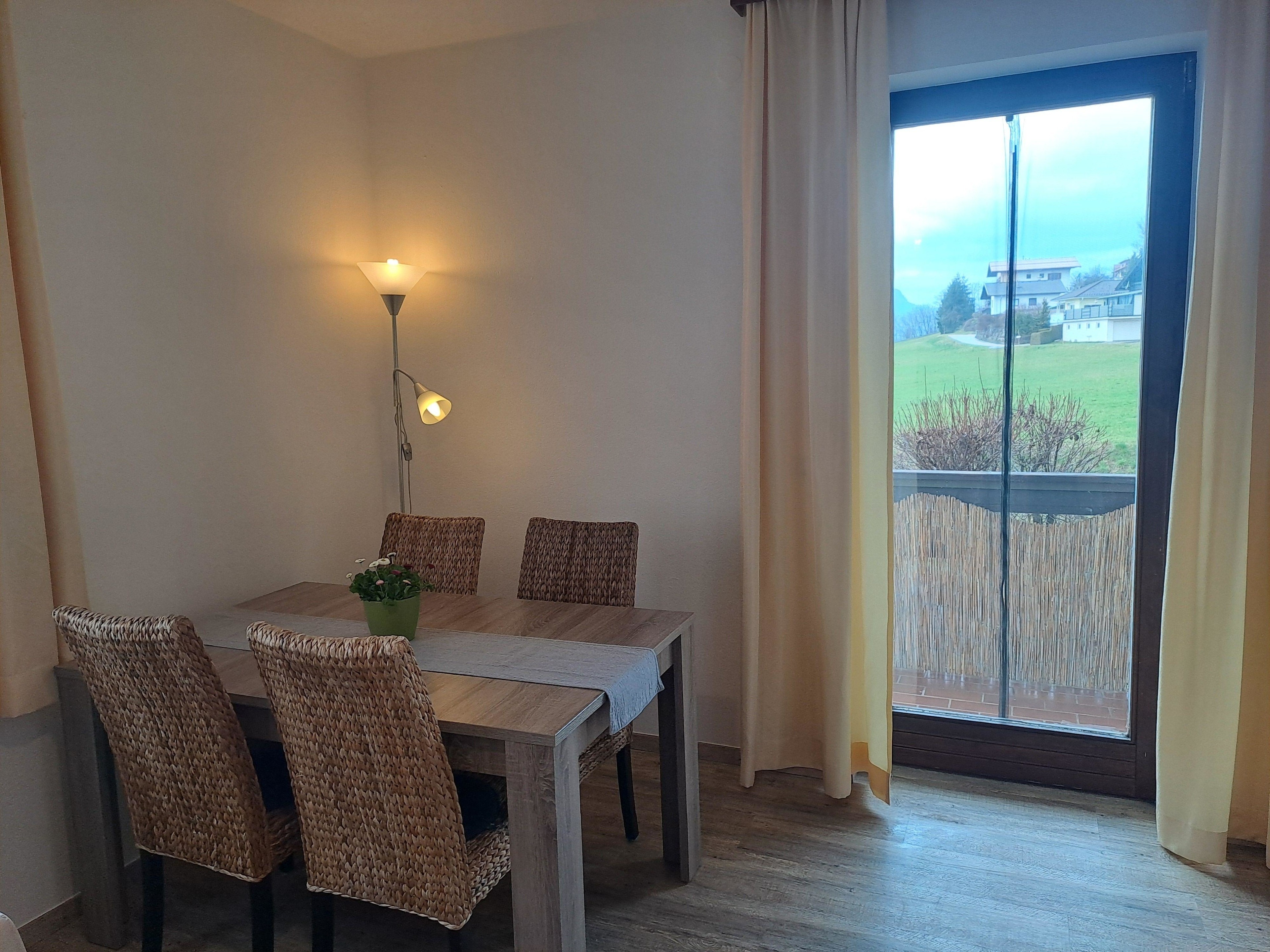 Das Appartement verfügt über ein Doppelzimmer, ein Wohnzimmer mit Küche und Essbereich, Bad, separater Toilette, einem Abstellraum und einem Balkon mit Sicht auf unseren ruhig gelegenen Garten.