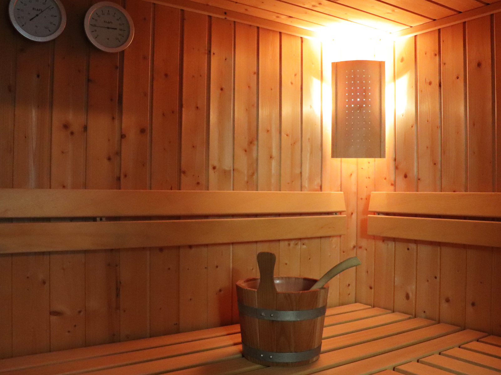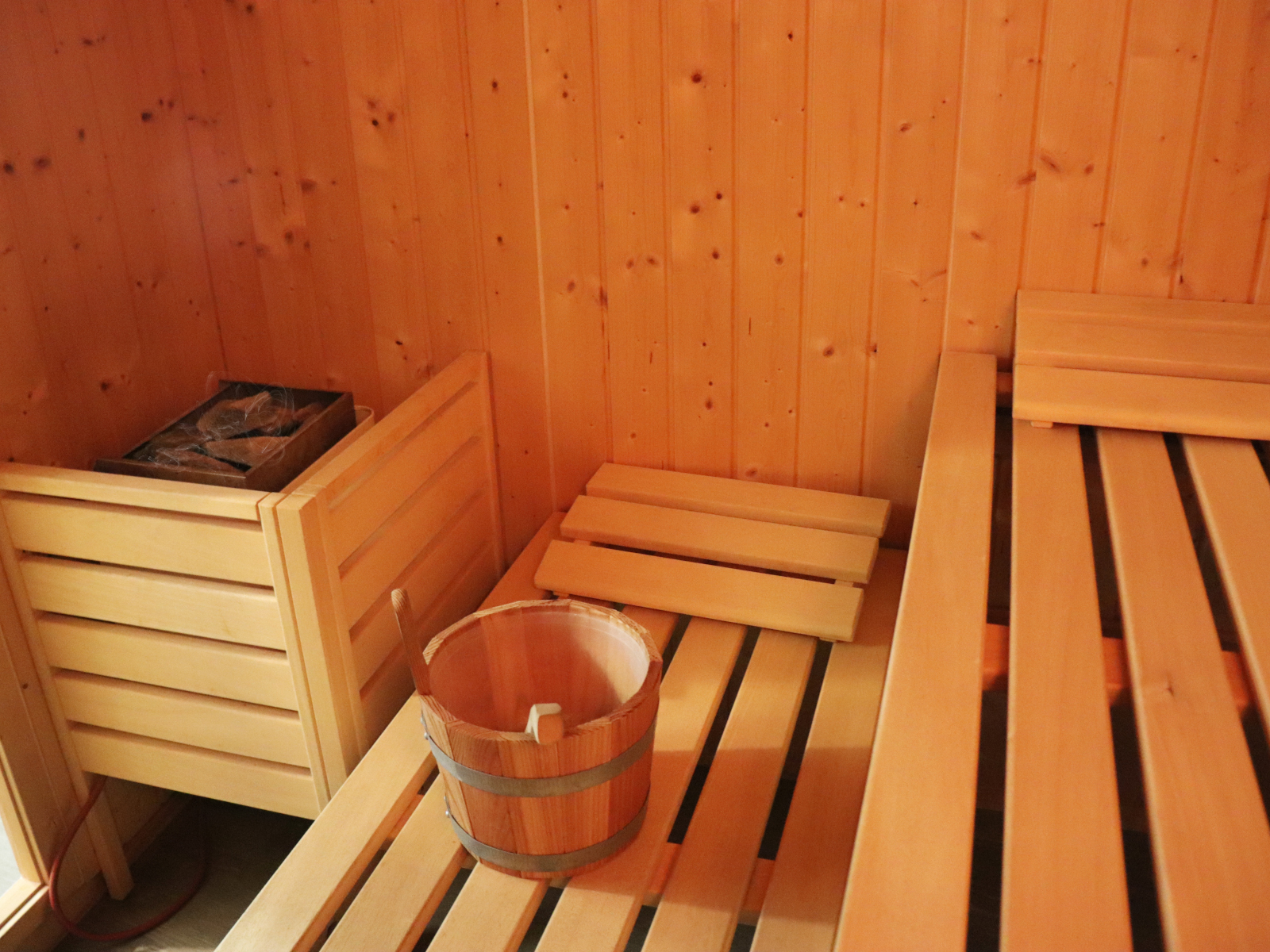 Grosszügiges Badezimmer mit Fussbodenheizung, separatem WC, eigener Sauna für 4 Personen. Badezimmerwäsche, Bademäntel stehen zur Verfügung sind im Preis inklusive.