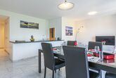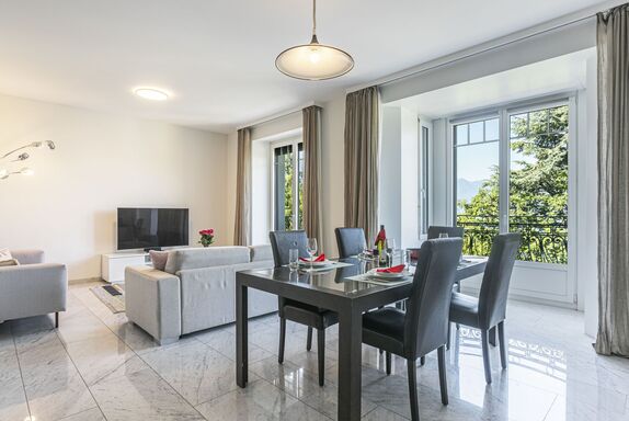 Le Jazz, 3-Zimmer-Wohnung 101 m2 im 3. Stock. Komfortabel und geschmackvoll eingerichtet: Wohn-/Esszimmer mit Kabel-TV (Flachbildschirm). Ausgang zum Balkon. 1 Zimmer mit 1 Doppelbett (160 cm, Länge 200 cm), Bad/WC, Ventilator und elektrischem Rollladen. 1 Zimmer mit 1 Doppelbett (140 cm, Länge 200 cm). Küche (Geschirrspüler, 4 Induktionskochplatten, Toaster, Wasserkocher, Mikrowelle, Tiefkühler, elektrische Kaffeemaschine, Kochinsel). Dusche/WC. Kleiner Balkon 3 m2. Balkonmöbel. Sehr schöne Sicht auf den See, die Berge und die Ortschaft. Zur Verfügung: Waschmaschine, Wäschetrockner. Internet (WLAN). Bitte beachten: Nichtraucher-Unterkunft, kein Parkplatz.