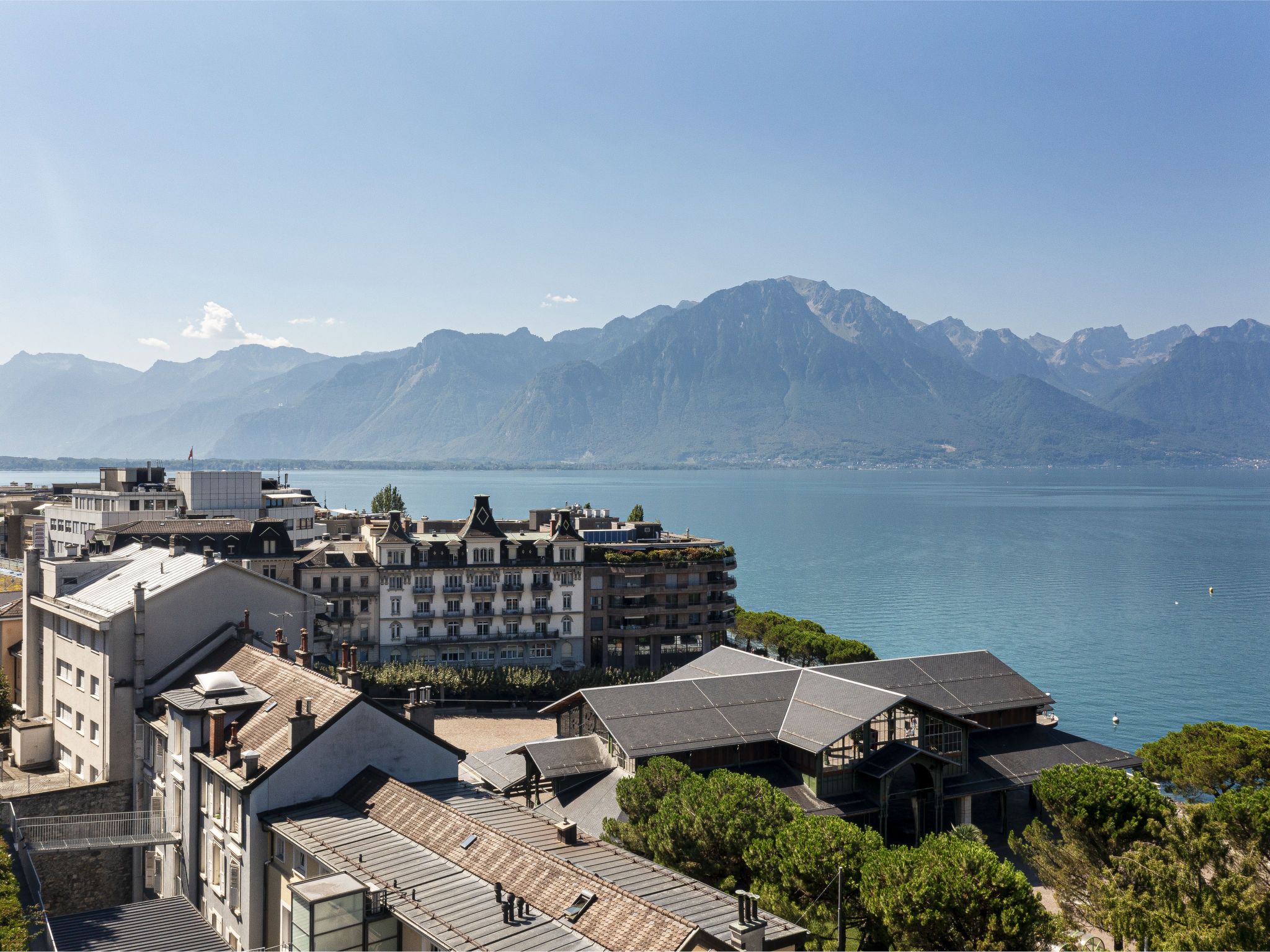 Luxuriöse Residenz Le Jazz. Im Ort, zentrale, belebte Lage, im Herzen der Stadt, 50 m vom See. Im Hause: Fahrstuhl, Zentralheizung. Öffentliches Parkhaus in 50 m. Lebensmittelgeschäft 10 m, Supermarkt 50 m, Einkaufszentrum 50 m, Restaurant 10 m, Café, Zentrum zu Fuss in 1 Minuten erreichbar, Bushaltestelle Montreux Débarcadère 240 m, Bahnstation Montreux 170 m, Badesee Lac Léman 100 m. Nahe gelegene Sehenswürdigkeiten: Statue de Freddie Mercury 120 m, Château de Chillon 3 km, Musée de Charlie Chaplin 9.4 km, Montreux Jazz Festival. Bekannte Skigebiete sind gut erreichbar: Leysin, Villars/Diablerets, Portes du Soleil. Wandergebiete: Rocher-de-Naye.