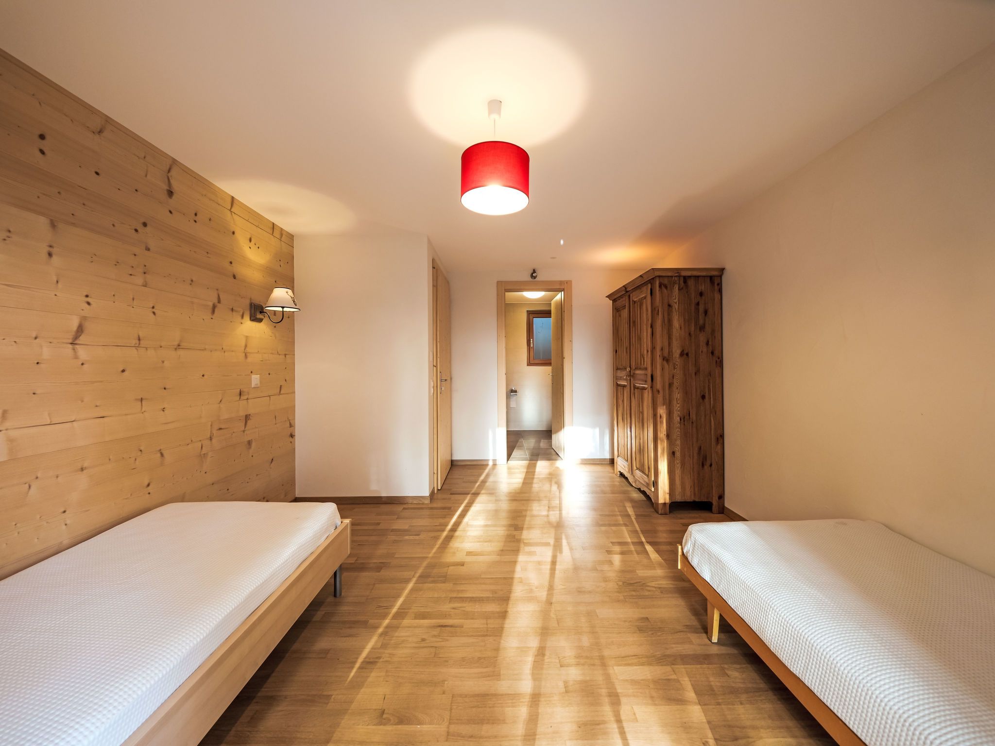 Dipankar, 5-Zimmer-Chalet 150 m2 auf 4 Stockwerken, Südlage. Geräumig und hell, vollständig renoviert, schön und modern eingerichtet: grosses Wohn-/Esszimmer mit Schwedenofen, Esstisch, TV und Flachbildschirm. Ausgang zum Balkon, Richtung Westen. Offene Küche (Backofen, Geschirrspüler, 4 Induktionskochplatten, Toaster, Wasserkocher, elektrische Kaffeemaschine, Kapseln für die Kaffeemaschine (Nespresso) extra, Racletteofen, Fondue Set (Käse)). Unteres Geschoss: 1 Zimmer mit 2 Betten (80 cm), Bad/WC. Ausgang zum Garten, zur Terrasse. 1 Zimmer mit 2 Betten (80 cm), Dusche/WC. Ausgang zum Garten, zur Terrasse. Obergeschoss: 1 Zimmer mit 1 franz. Bett (1 x 160 cm), Dusche/WC. Ausgang zum Balkon, Richtung Westen. 1 Zimmer mit 3 Betten (80 cm), Bad/WC. 2 kleine Balkone, Westlage, kleiner Gartensitzplatz. Sicht auf den Wald. Zur Verfügung: Waschmaschine, Wäschetrockner, Babybett. Internet (Wireless LAN, gratis). Parkplatz (1 Auto), Garage (1 Auto). Bitte beachten: Nichtraucher-Haus.