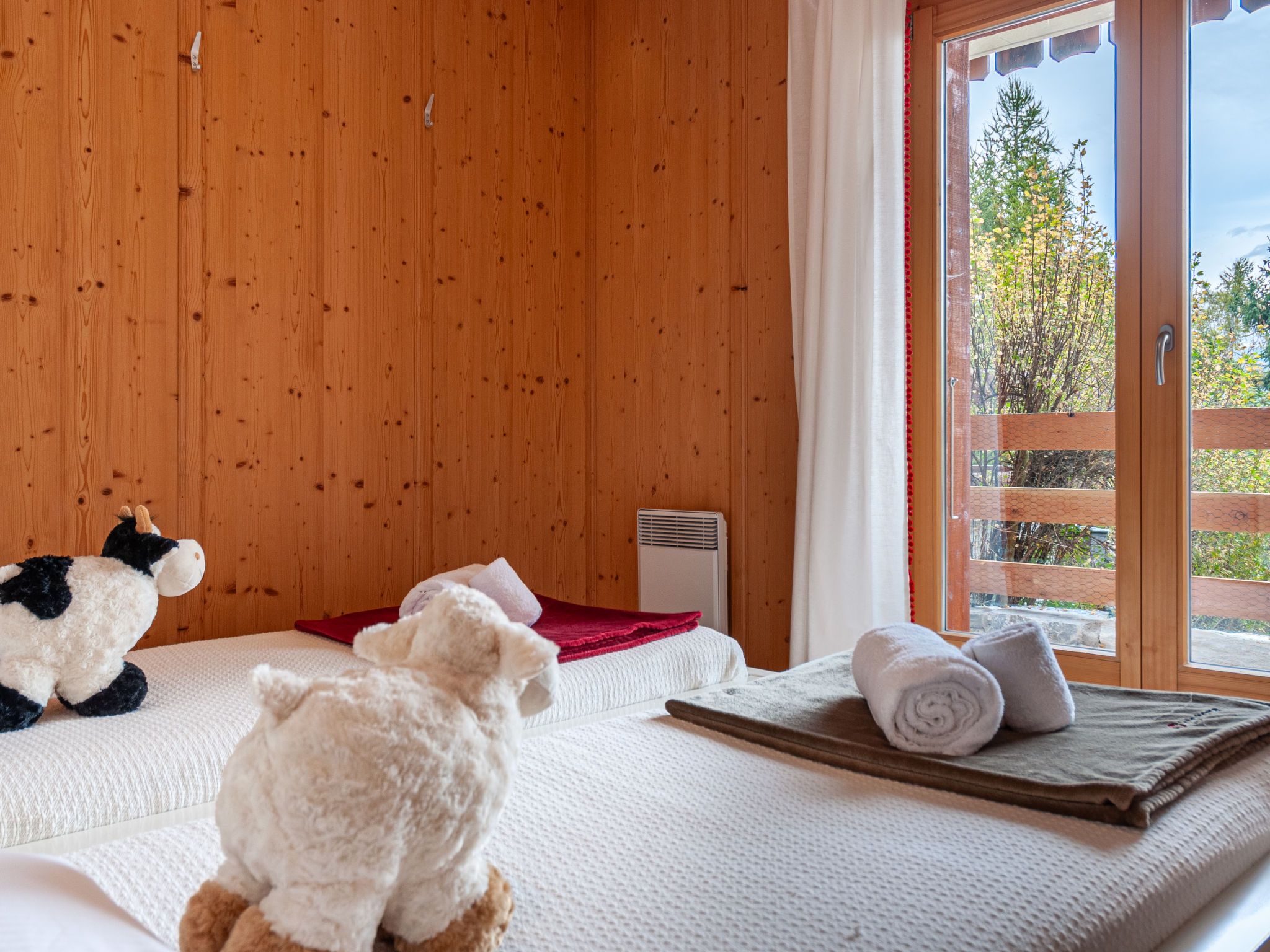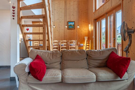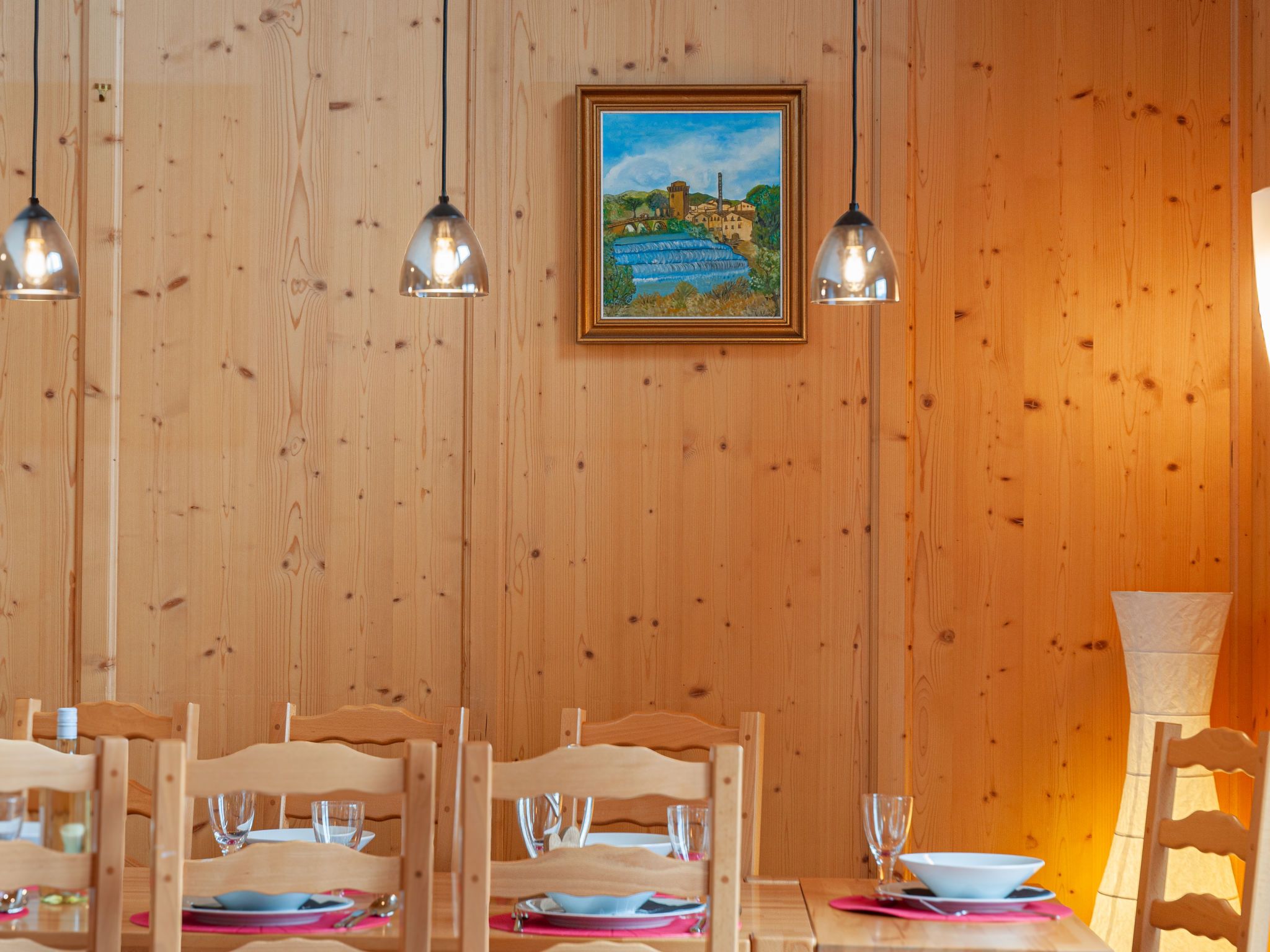 Sneachta, 5-Zimmer-Chalet 115 m2 auf 3 Stockwerken. Objekt geeignet für 4 Erwachsene + 4 Kinder. Komfortabel und gemütlich eingerichtet: kleiner Eingang. Wohn-/Esszimmer mit offenem Kamin, Kabel-TV und DVD. Ausgang zur Terrasse, Richtung Norden. Kleine, offene Küche (Backofen, Geschirrspüler, 4 Glaskeramikplatten, Toaster, Wasserkocher, Mikrowelle, Tiefkühler, elektrische Kaffeemaschine, Kapseln für die Kaffeemaschine (Nespresso) extra, Racletteofen, Fondue Set (Käse)). Dusche/WC. E-Heizung, Fussbodenheizung. Unteres Geschoss: 2 Zimmer, jedes Zimmer mit 1 franz. Bett (160 cm, Länge 200 cm). 1 Zimmer mit 2 Betten (90 cm, Länge 200 cm). Bad/WC. Obergeschoss: 1 Zimmer mit 1 Doppelbett (160 cm, Länge 200 cm), Bad/Dusche/WC. Grosse Terrasse, Nordlage und Ostlage. Terrassenmöbel, Gartengrill. Herrliche Panoramasicht auf die Berge. Zur Verfügung: Waschmaschine, Wäschetrockner, Kinderhochstuhl. Internet (WLAN, gratis). Parkplatz (2 Autos). Bitte beachten: geeignet für Familien. Nichtraucher-Haus. Maximal 1 Haustier/Hund erlaubt.
