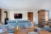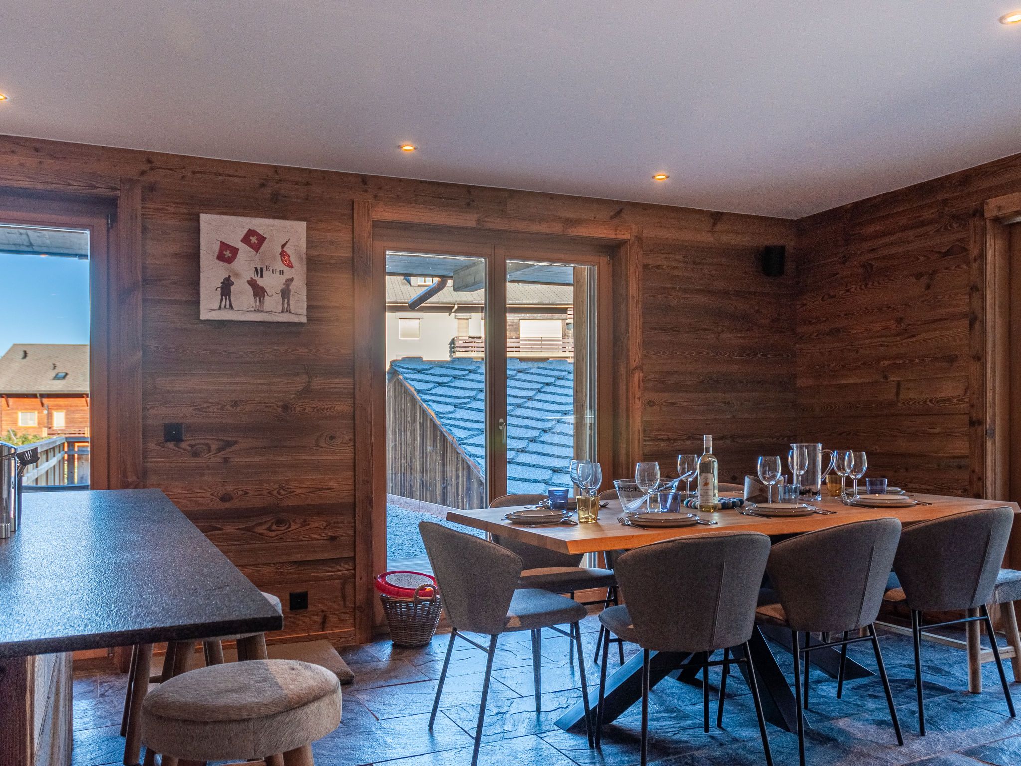 Ferme D'Alice A2, 4-Zimmer-Wohnung 140 m2, im Erdgeschoss, Südlage. Objekt geeignet für 4 Erwachsene + 4 Kinder. Sehr komfortabel und luxuriös eingerichtet: Eingang mit sep. WC. Grosses Wohn-/Esszimmer mit Panoramafenster mit Schwedenofen, Bar und Kabel-TV. Ausgang zur Terrasse, Richtung Süden und Richtung Osten. 1 grosses Zimmer mit 1 Doppelbett (2 x 90 cm, Länge 200 cm), Dusche/WC und Kabel-TV. Ausgang zur Terrasse. 1 Zimmer mit 1 franz. Bett (180 cm, Länge 200 cm), Dusche/WC und Kabel-TV. 1 Kinderzimmer mit 2 x 2 Etagenbetten (90 cm, Länge 200 cm), Dusche/WC. Ausgang zur Terrasse. Grosse, offene Küche (Geschirrspüler, 4 Glaskeramikplatten, Toaster, Wasserkocher, Mikrowelle, elektrische Kaffeemaschine, Racletteofen, Kochinsel, Fondue Set (Käse)). Grosse Terrasse 400 m2, Südlage und Ostlage. Terrassenmöbel, Liegestühle (2). Schöne Sicht auf die Berge. Zur Verfügung: Haartrockner. Internet (WLAN, gratis). Parkplatz (überdacht, 3 Autos), Höhe 215 cm. Bitte beachten: Nichtraucher-Haus. Maximal 1 Haustier/Hund erlaubt.