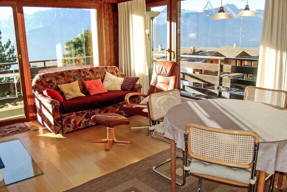 App. 20A Ramuge, 2-Zimmer-Wohnung 45 m2 im 2. Stock. Objekt geeignet für 2 Erwachsene + 2 Kinder. Schön eingerichtet: Wohn-/Esszimmer mit offenem Kamin und Kabel-TV. Ausgang zum Balkon. 1 Zimmer mit 2 Betten (90 cm, Länge 200 cm). Eingang mit 1 x 2 Etagenbetten (80 cm, Länge 180 cm). Küche (Backofen, Geschirrspüler, 4 Glaskeramikplatten, elektrische Kaffeemaschine, Kapseln für die Kaffeemaschine (Nespresso) extra, Racletteofen, Fondue Set (Chinoise)). Bad/WC. Ölheizung. Balkon, Ostlage und Nordlage. Balkonmöbel. Schöne Sicht auf die Berge und das Tal. Zur Verfügung: Haartrockner. Internet (WLAN, gratis). Parkplatz (extra) in 400 m. Bitte beachten: Nichtraucher-Unterkunft. Anstelle eines abgeschlossenen Schlafzimmers befinden sich manche Schlafplätze in einem offenen Bereich (Galerie, Nische etc.).