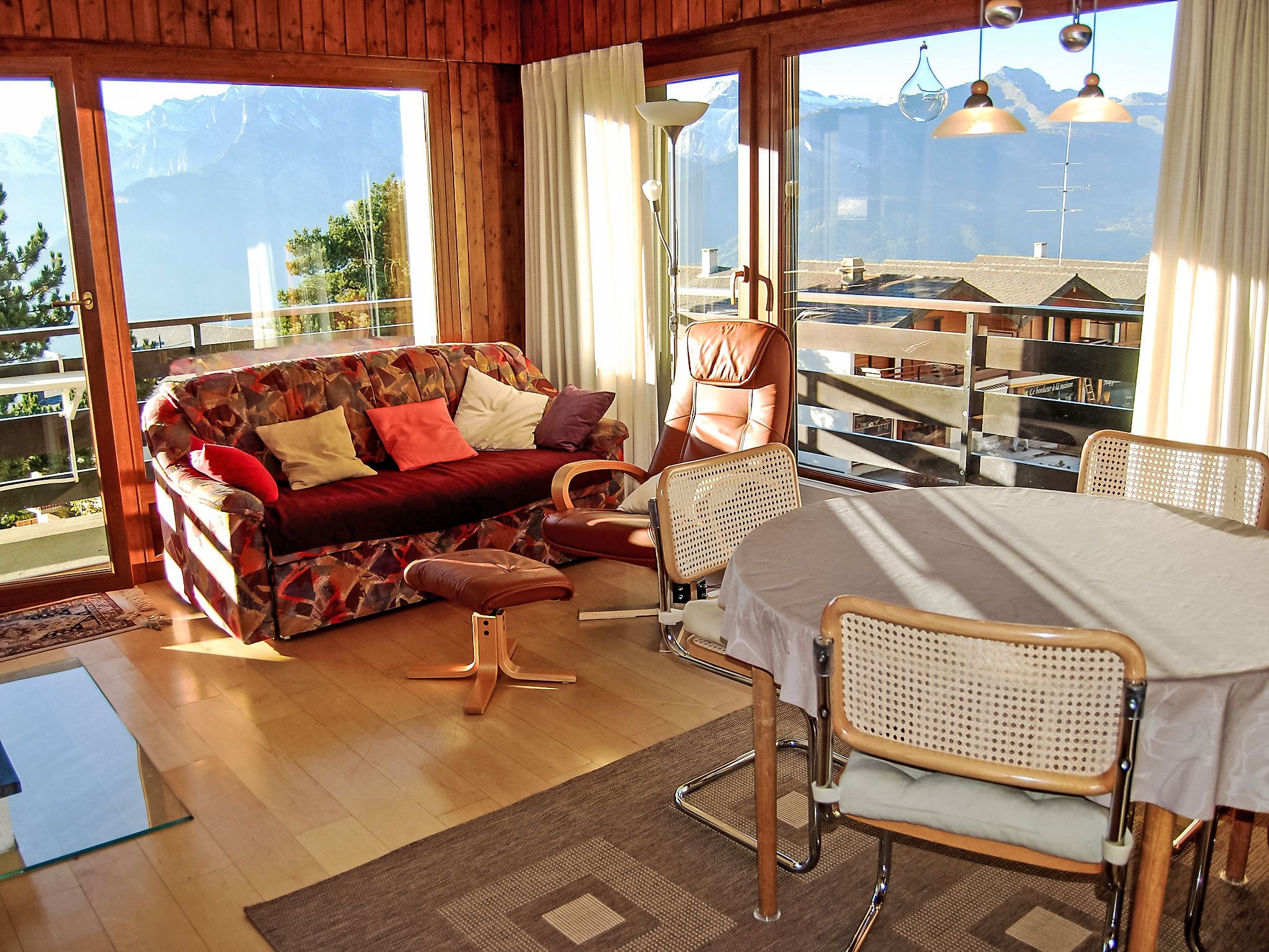 Appartementhaus Ramuge, 1'350 m.ü.M., auf 5 Stockwerken. Im Ort. Im Hause: Einkaufsmöglichkeit, Fahrstuhl, Zentralheizung, Waschmaschine, Wäschetrockner (zur Mitbenutzung, extra). Öffentliches Parkhaus in 450 m, extra. Supermarkt 5 m, Restaurant 50 m, Bar 20 m, Bäckerei 100 m, Bushaltestelle Veysonnaz Station 400 m, Bahnstation Gare de Sion 14 km, Hallenbad 50 m. Skisportanlagen 450 m, Skibushaltestelle 30 m. Bekannte Skigebiete sind gut erreichbar: Les 4 Vallées (Télécabine de Veysonnaz) 450 m. Bitte beachten: Gratis Skibus.