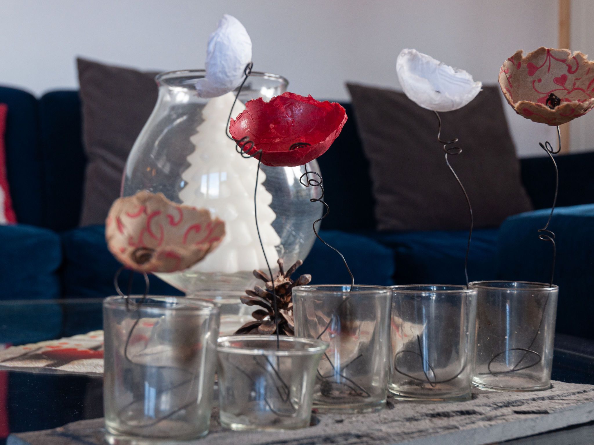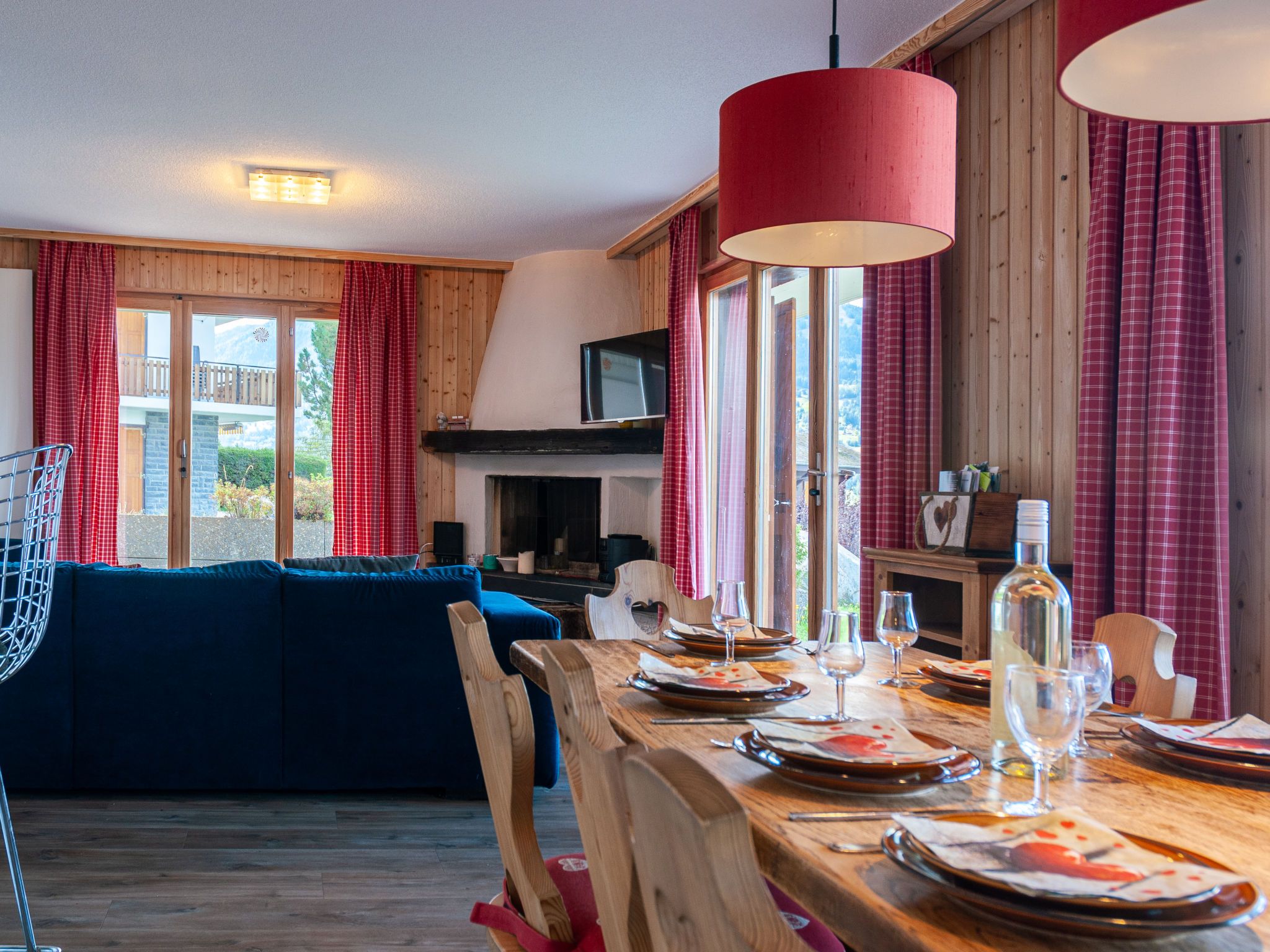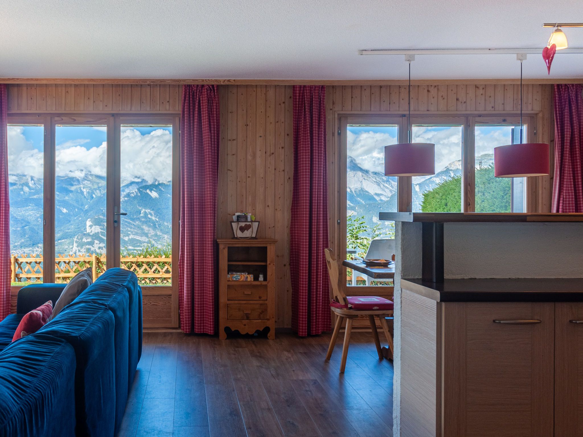 Jasmins 2, 4-Zimmer-Wohnung 78 m2, im Erdgeschoss. Komfortabel und schön eingerichtet: Eingang. Wohn-/Esszimmer mit offenem Kamin (nur Deko), Kabel-TV. Ausgang zur Terrasse, Richtung Norden und Richtung Westen. 1 Zimmer mit 1 Bett (90 cm, Länge 190 cm), 1 x 2 Etagenbetten (90 cm, Länge 200 cm), Waschbecken. 2 Zimmer, jedes Zimmer mit 1 franz. Bett (180 cm, Länge 190 cm). Ausgang zur Terrasse. Offene Küche (Backofen, Geschirrspüler, 4 Glaskeramikplatten, Toaster, Wasserkocher, elektrische Kaffeemaschine, Kapseln für die Kaffeemaschine (Dolce Gusto) extra, Racletteofen, Fondue Set (Käse)) mit Bar. Bad/WC, 2 Duschen/WC. Grosse Terrasse, Gartensitzplatz. Terrassenmöbel. Sehr schöne Sicht auf die Berge und das Tal. Zur Verfügung: Haartrockner. Internet (Wireless LAN, gratis). Parkplatz (überdacht) in 500 m. Bitte beachten: Nichtraucher-Unterkunft.