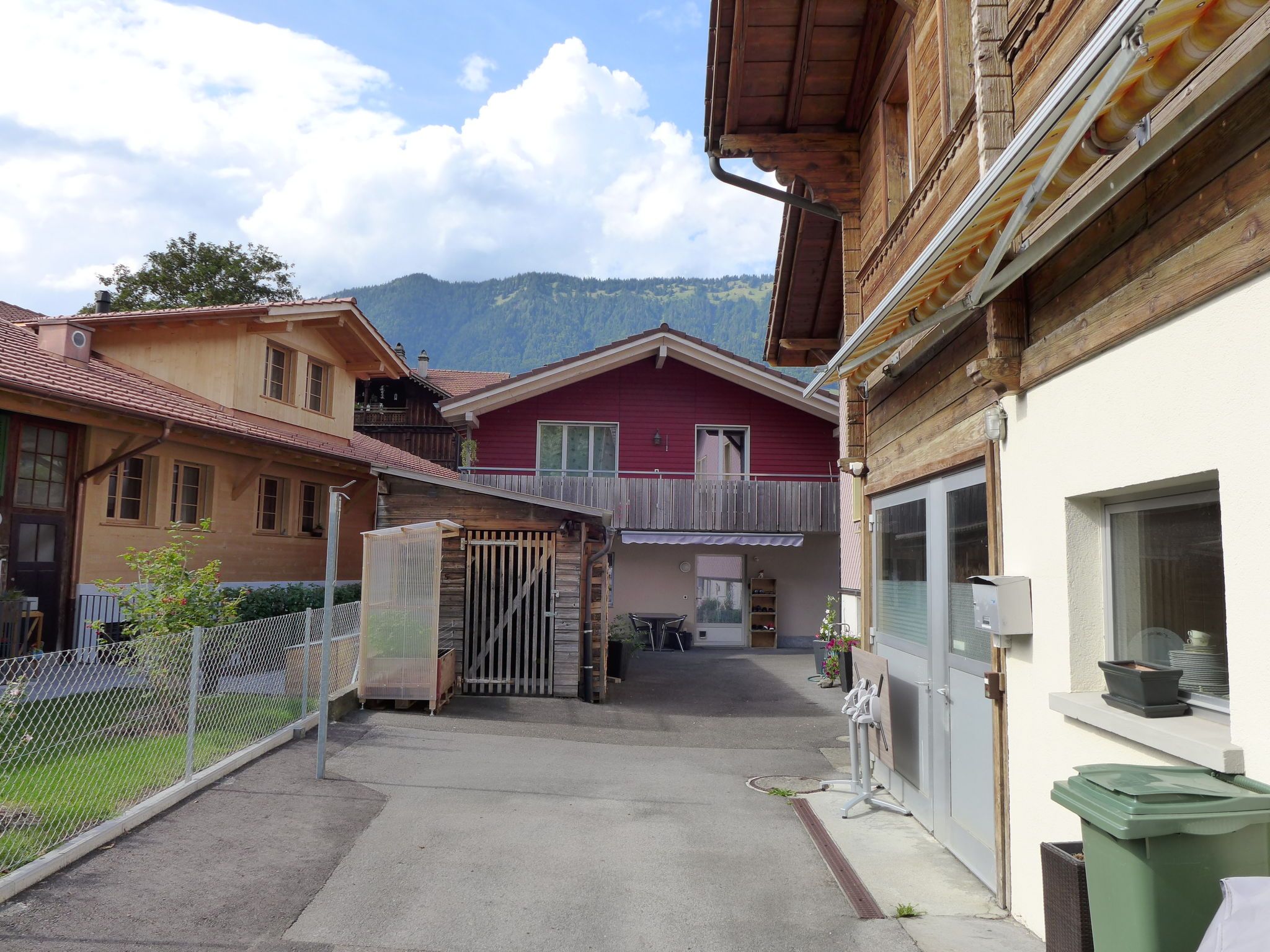 Bönigen 4 km von Interlaken: Zweifamilienhaus auf 2 Stockwerken. Im Ortszentrum von Bönigen, zentrale Lage in einem Wohnquartier, 500 m vom See, Richtung Süden. Im Hause: Zentralheizung. Parkplatz beim Haus. Lebensmittelgeschäft 50 m, Supermarkt 3 km, Restaurant 100 m, Bäckerei 100 m, Bushaltestelle, Bahnstation Interlaken Ost 2 km, Strandbad 700 m. Golfplatz (18 Loch) 8 km, Radweg 100 m. Nahe gelegene Sehenswürdigkeiten: Interlaken, Giessbach, Lauterbrunnen. Bekannte Skigebiete sind gut erreichbar: Grindelwald. Bekannte Seen in der Umgebung sind gut erreichbar: Brienzersee. Wandergebiete: Jungfrau Region. Bitte beachten: Hauptstrasse in der Nähe.