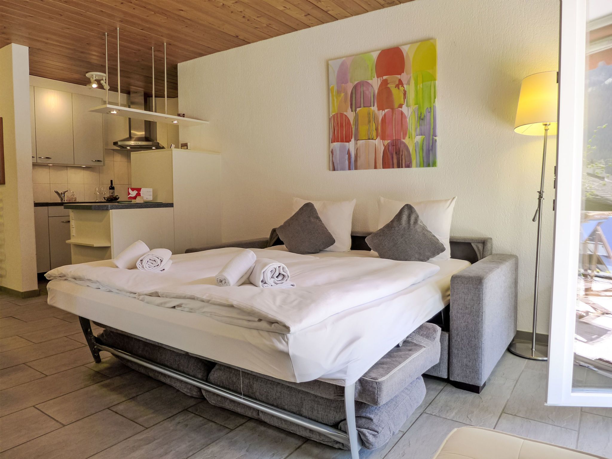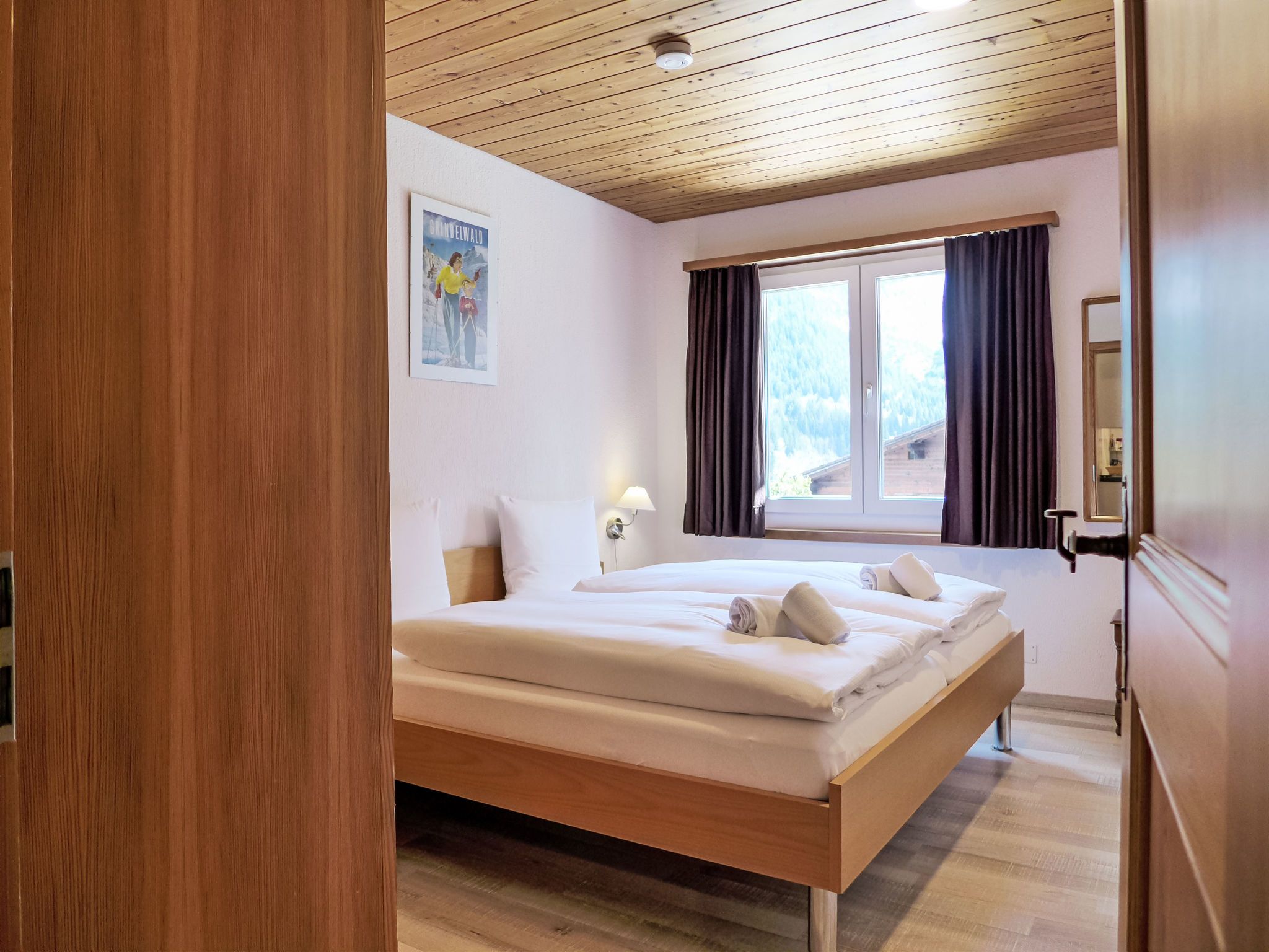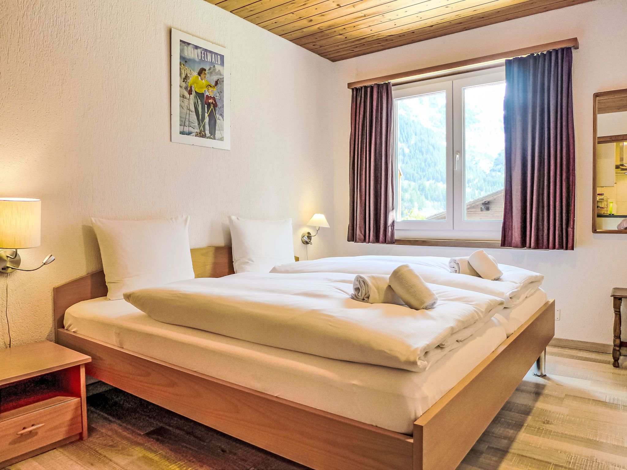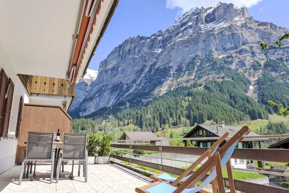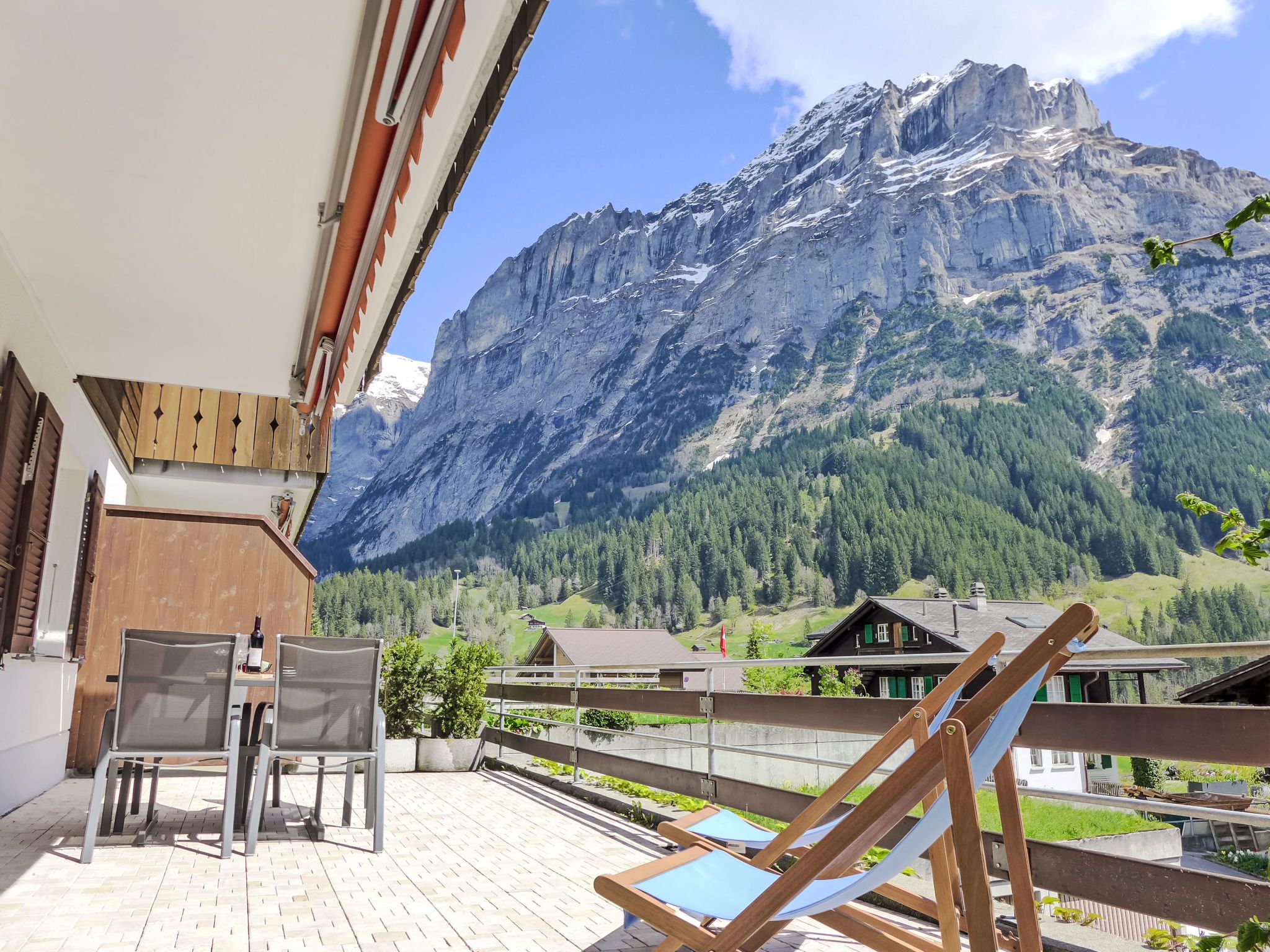 2-Zimmer-Wohnung 45 m2, im Erdgeschoss, Südlage. Hell, zweckmässig und gemütlich eingerichtet: offenes Wohn-/Schlafzimmer mit 1 Doppeldiwanbett (160 cm, Länge 200 cm), Sat-TV und Digital-TV (Flachbildschirm), Radio. Ausgang zur Terrasse. 1 Zimmer mit 1 Doppelbett (2 x 90 cm, Länge 200 cm). Offene Küche (Backofen, Geschirrspüler, 4 Glaskeramikplatten, Toaster, Wasserkocher, elektrische Kaffeemaschine, Kapseln für die Kaffeemaschine (Nespresso) extra, Racletteofen, Fondue Set (Käse)). Dusche/WC. Fussbodenheizung. Grosse Terrasse, Südlage und Westlage. Terrassenmöbel, Liegestühle. Herrliche Panoramasicht auf die Berge, die Landschaft und Eigernordwand. Zur Verfügung: Haartrockner. Internet (WLAN, gratis). Garage Nr. 2 auf dem Grundstück, Höhe 247 cm, Breite 212 cm. Bitte beachten: Nichtraucher-Unterkunft. Eigener Eingang, Feuerlöscher.