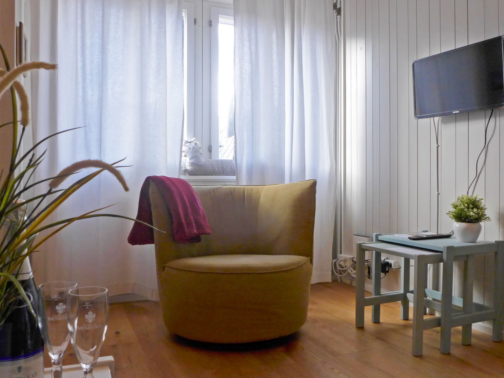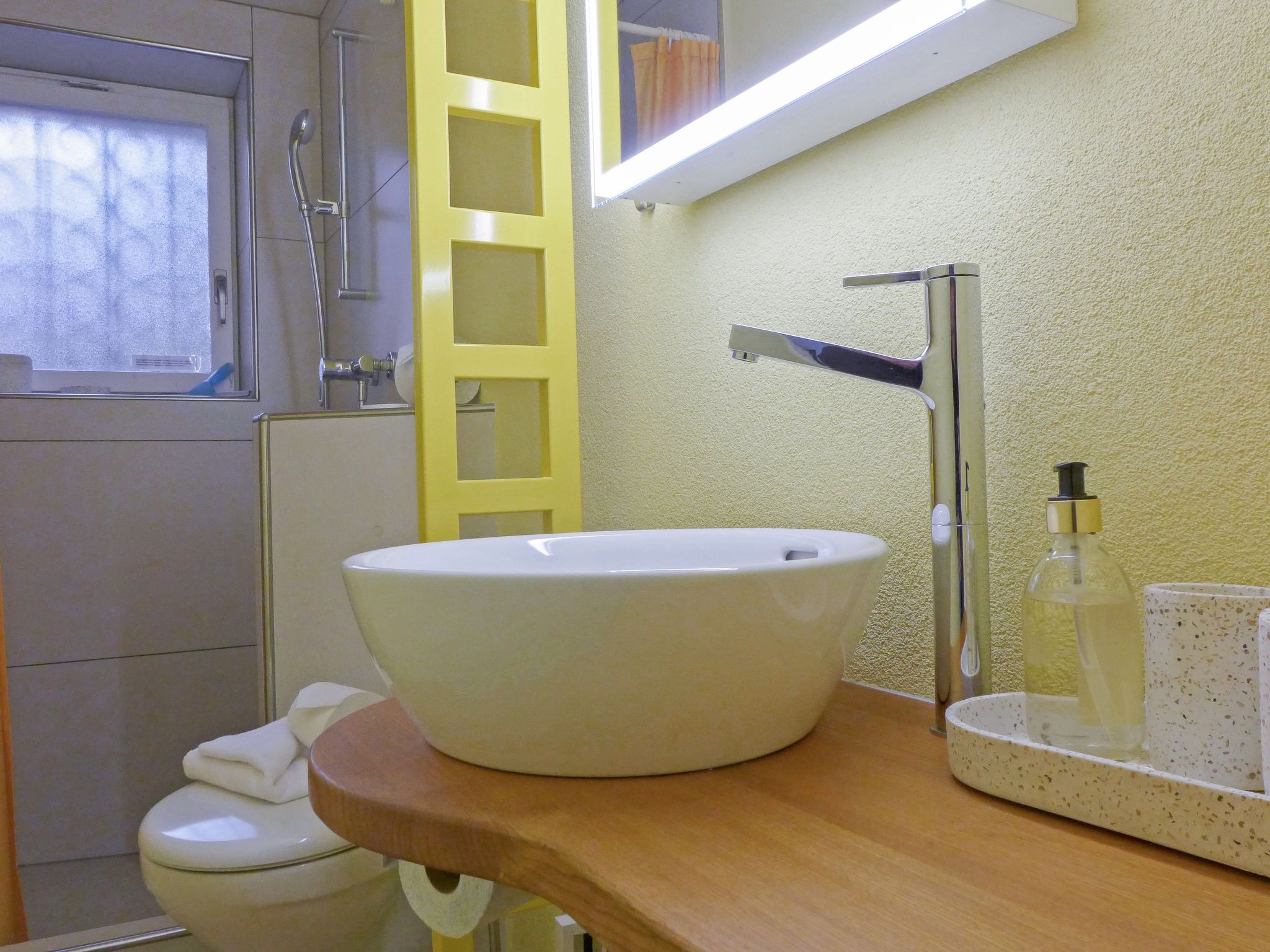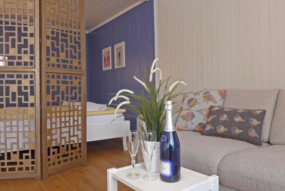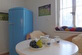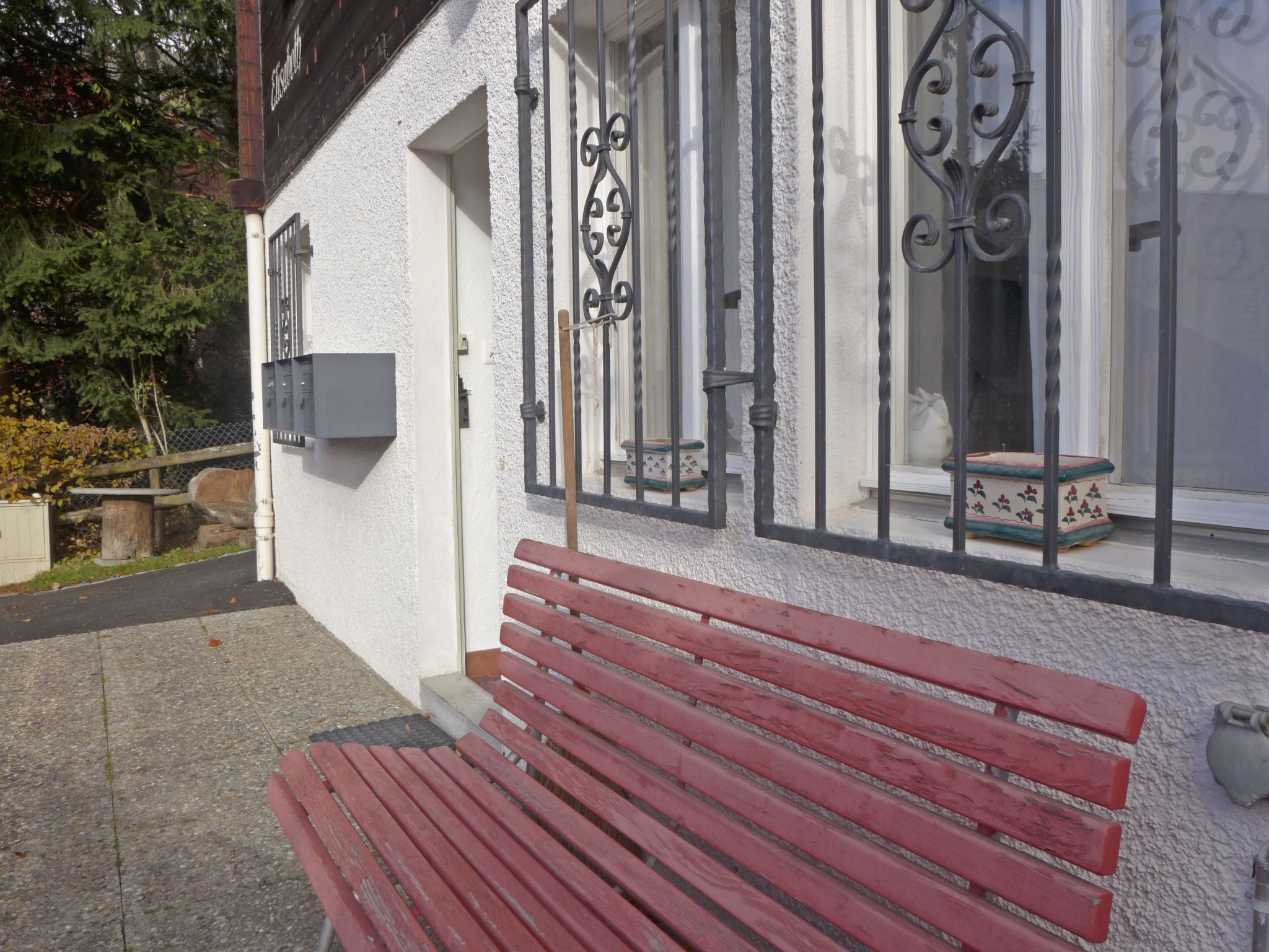 Elisabeth, 2-Zimmer-Wohnung 34 m2, im Erdgeschoss. Renoviert im Jahre 2022, komfortabel und gemütlich eingerichtet: offenes Wohn-/Schlafzimmer mit 1 Doppelbett (2 x 90 cm, Länge 200 cm), TV. Kleine Wohnküche (Backofen, Geschirrspüler, 2 Glaskeramikplatten, Toaster, Wasserkocher, elektrische Kaffeemaschine, Kapseln für die Kaffeemaschine (Nespresso) extra). Dusche/WC. Kleiner Gartensitzplatz, Westlage. Schöne Sicht auf die Berge. Zur Verfügung: Haartrockner. Internet (Wireless LAN, gratis). Bitte beachten: Nichtraucher-Unterkunft.