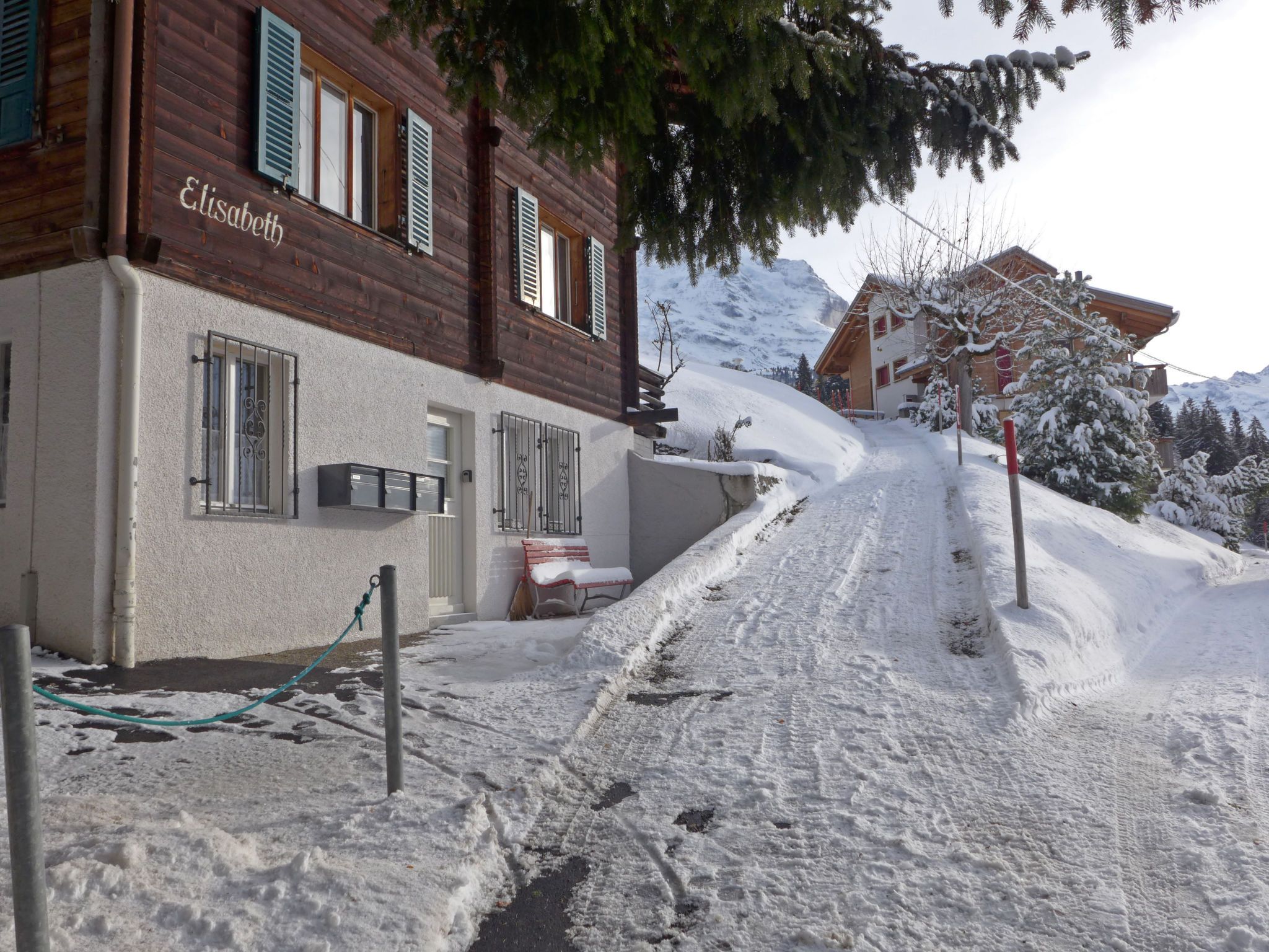 Chalet Elisabeth, auf 3 Stockwerken. Im Ort, 200 m vom Zentrum von Wengen, zentrale Lage. Im Hause: Zentralheizung. Einkaufsservice vor Anreise möglich. Einkaufsgeschäft, Lebensmittelgeschäft, Restaurant, Bäckerei 200 m, Zentrum zu Fuss in 4 Minuten erreichbar, Bushaltestelle Lauterbrunnen (by train) 3.2 km, Bahnstation Wengen 200 m, Freibad 250 m. Luftseilbahn, Bergeisenbahn, Skisportanlagen 200 m, Kinderspielplatz 250 m. Bekannte Seen in der Umgebung sind gut erreichbar: Thunersee 13 km, Brienzersee 13 km. Bitte beachten: autofreie Ferienanlage. Die Anreise erfolgt mit der Bergbahn.