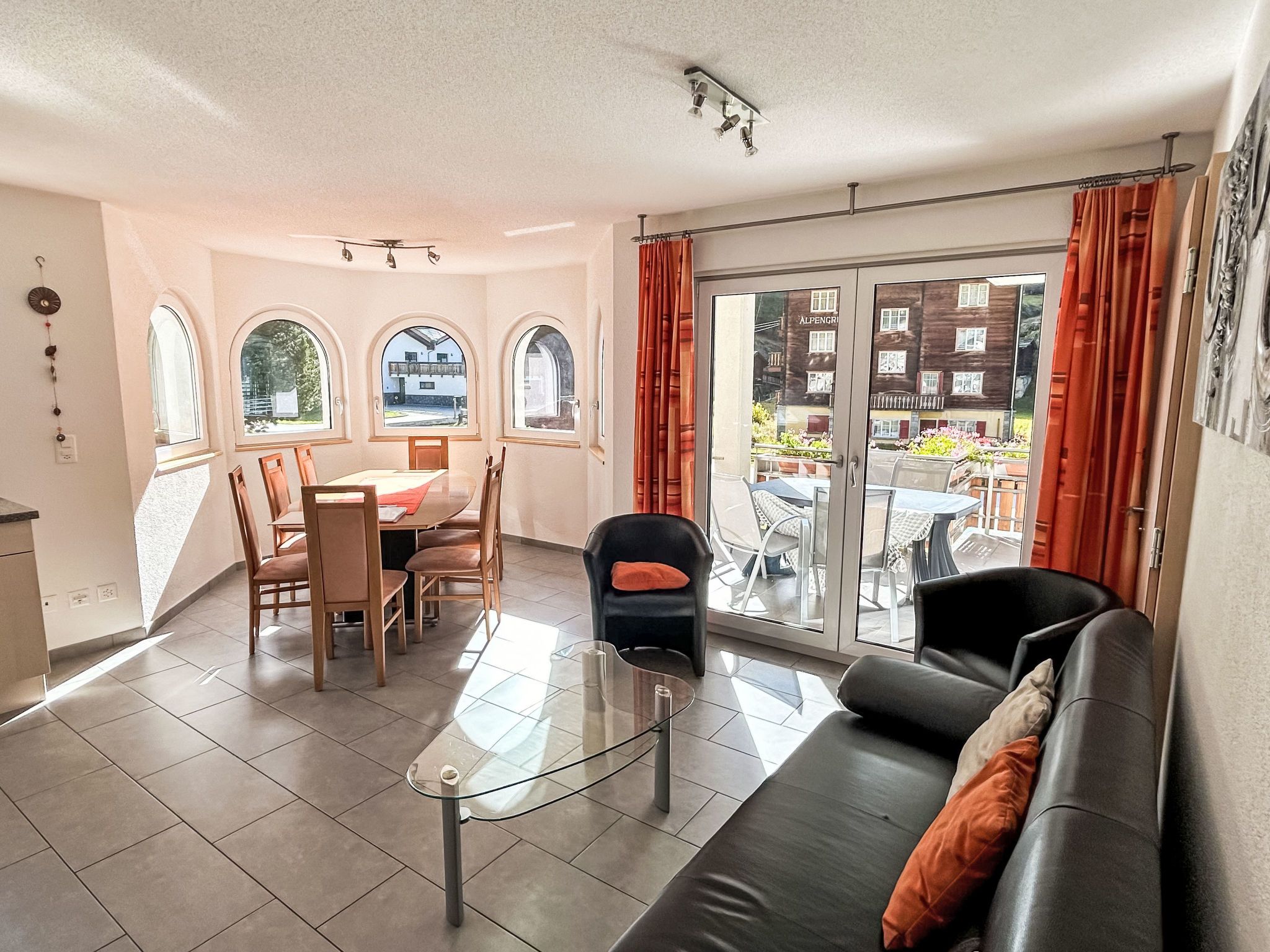 Alpenstern Trift, 4-Zimmer-Wohnung 90 m2 im 1. Stock. Komfortabel eingerichtet: Wohn-/Esszimmer mit Sat-TV (Flachbildschirm), Stereoanlage. Ausgang zum Balkon, Richtung Westen. 2 Zimmer, jedes Zimmer mit 2 Betten. Ausgang zum Balkon, Richtung Süden. 1 Zimmer mit 2 Betten. Offene Küche (Backofen, Geschirrspüler, 4 Glaskeramikplatten, Mikrowelle, elektrische Kaffeemaschine, Racletteofen, Fondue Set (Käse)). Bad/WC, Dusche/WC, Doppelwaschbecken. Balkon. Balkonmöbel, Liegestühle (6), Abstellkammer. Schöne Sicht auf die Berge und die Landschaft. Zur Verfügung: Kinderhochstuhl, Babybett, Haartrockner. Internet (Wireless LAN, gratis). Parkplatz (2 Autos) beim Haus. Bitte beachten: Nichtraucher-Unterkunft. Maximal 1 Haustier/Hund erlaubt.