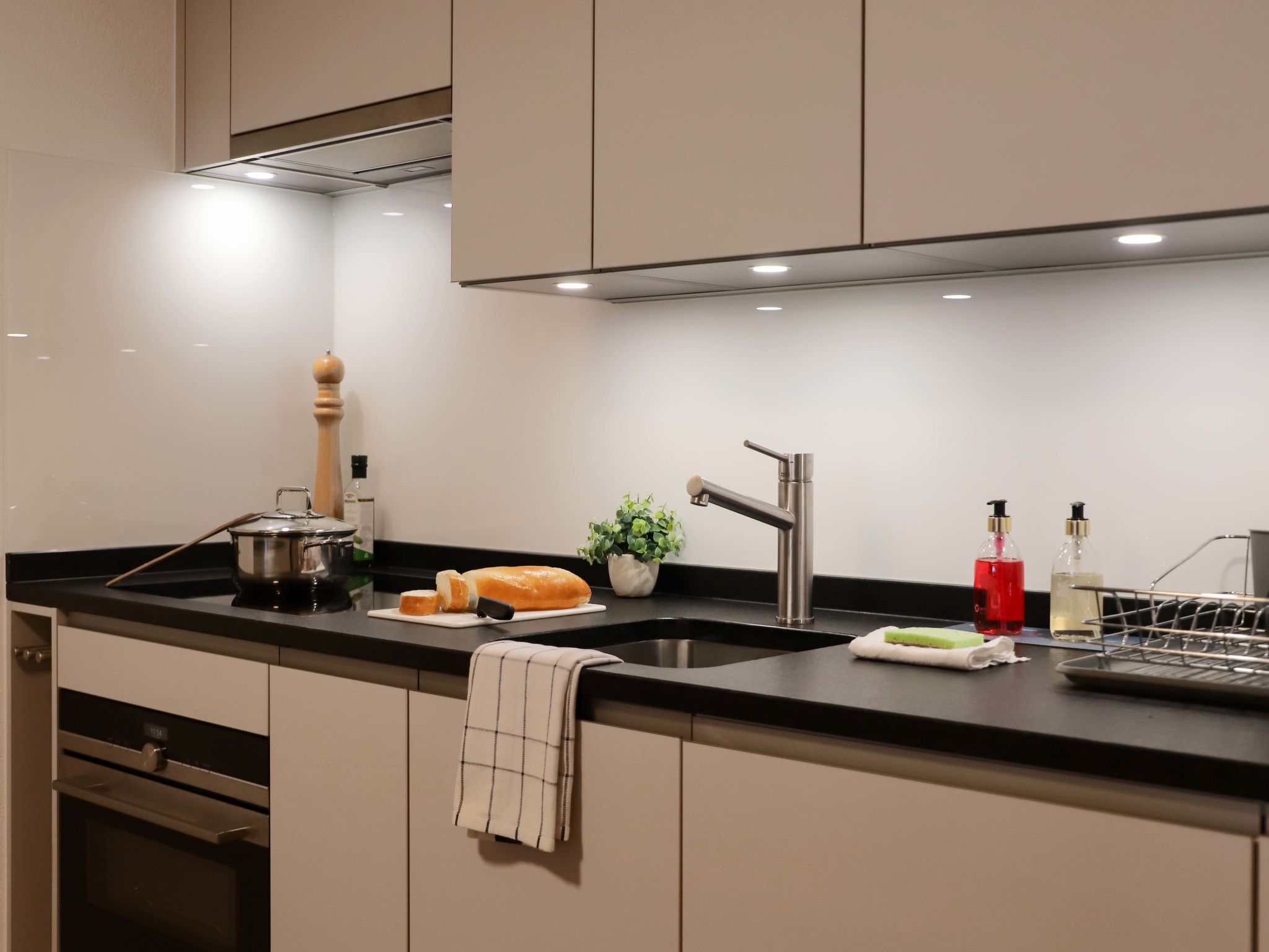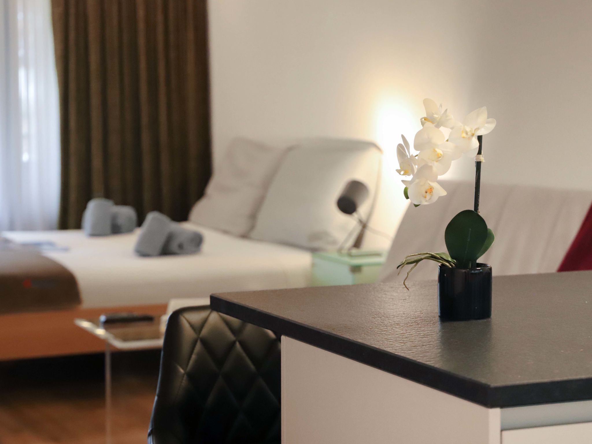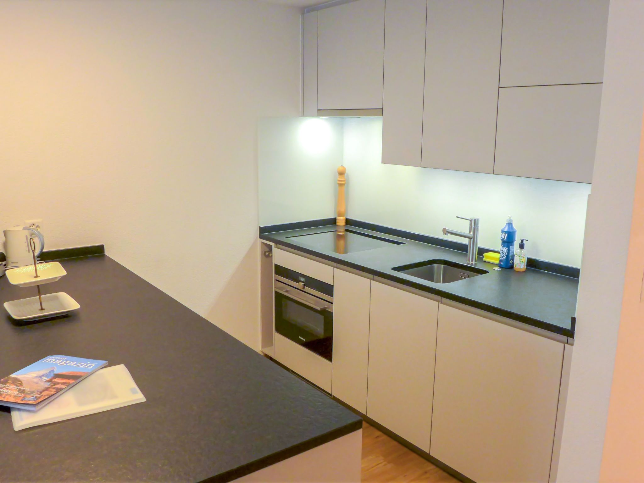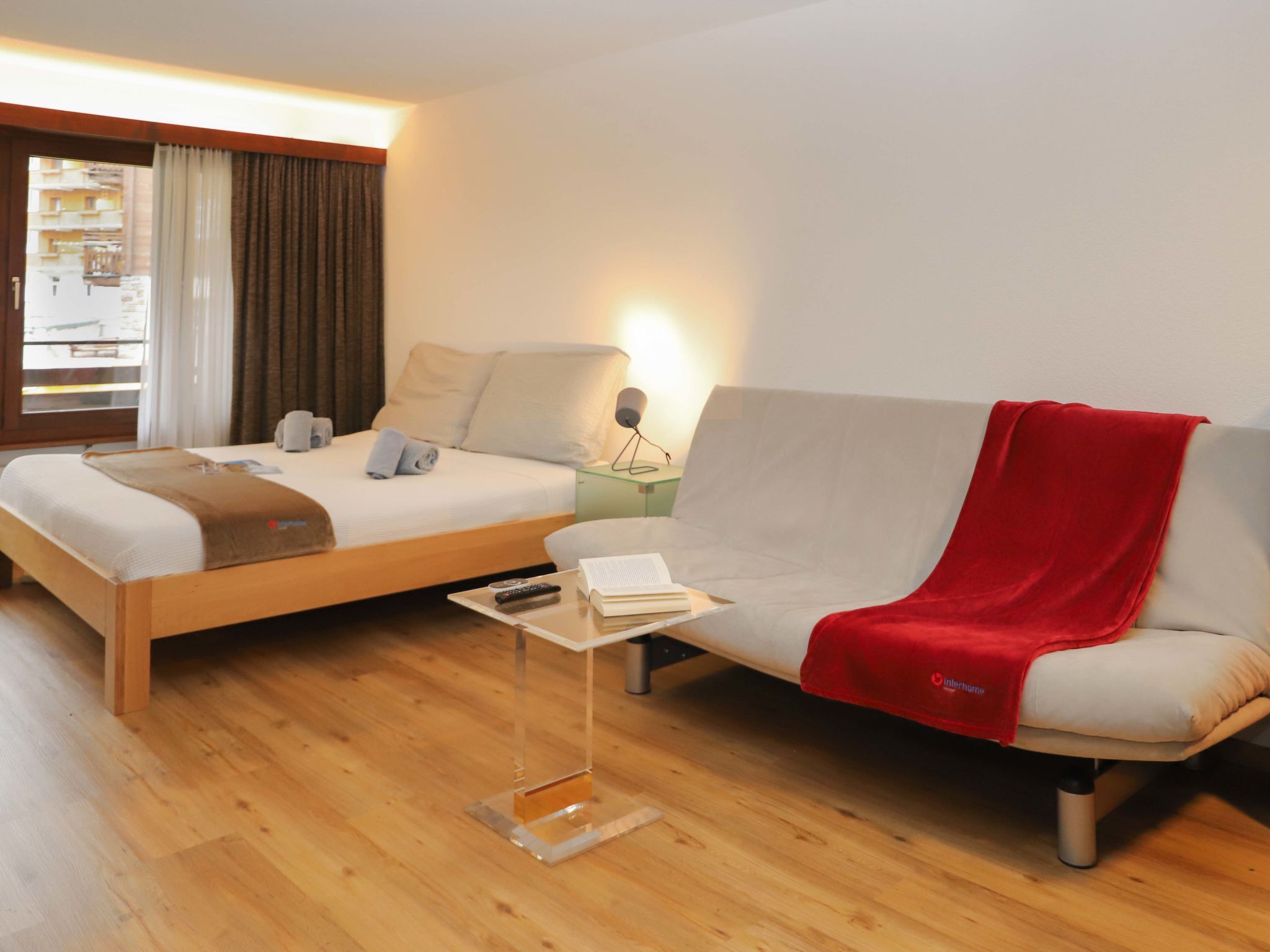 Pasadena, 1-Zimmer-Wohnung 46 m2 im 1. Stock. Geräumig und hell, schön und gemütlich eingerichtet: Wohn-/Schlafzimmer mit 1 Doppelbett (2 x 90 cm, Länge 200 cm), Esstisch und TV. Ausgang zum Balkon. Offene Küche (4 Induktionskochplatten, Toaster, Wasserkocher, Mikrowelle, Tiefkühler, elektrische Kaffeemaschine). Bad/WC. Balkon. Balkonmöbel. Seitliche Sicht auf die Berge. Zur Verfügung: Haartrockner. Internet (Wireless LAN, gratis). Bitte beachten: Nichtraucher-Unterkunft.