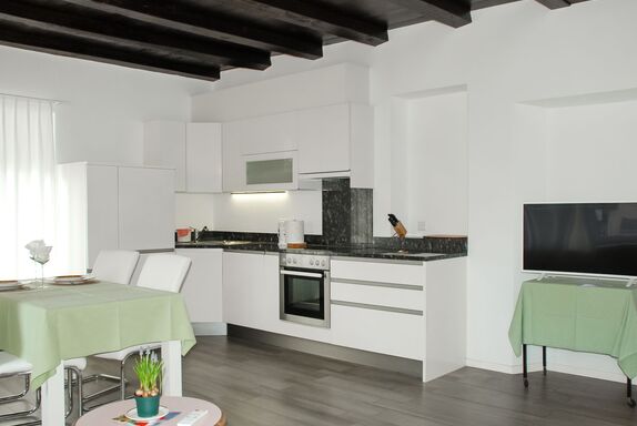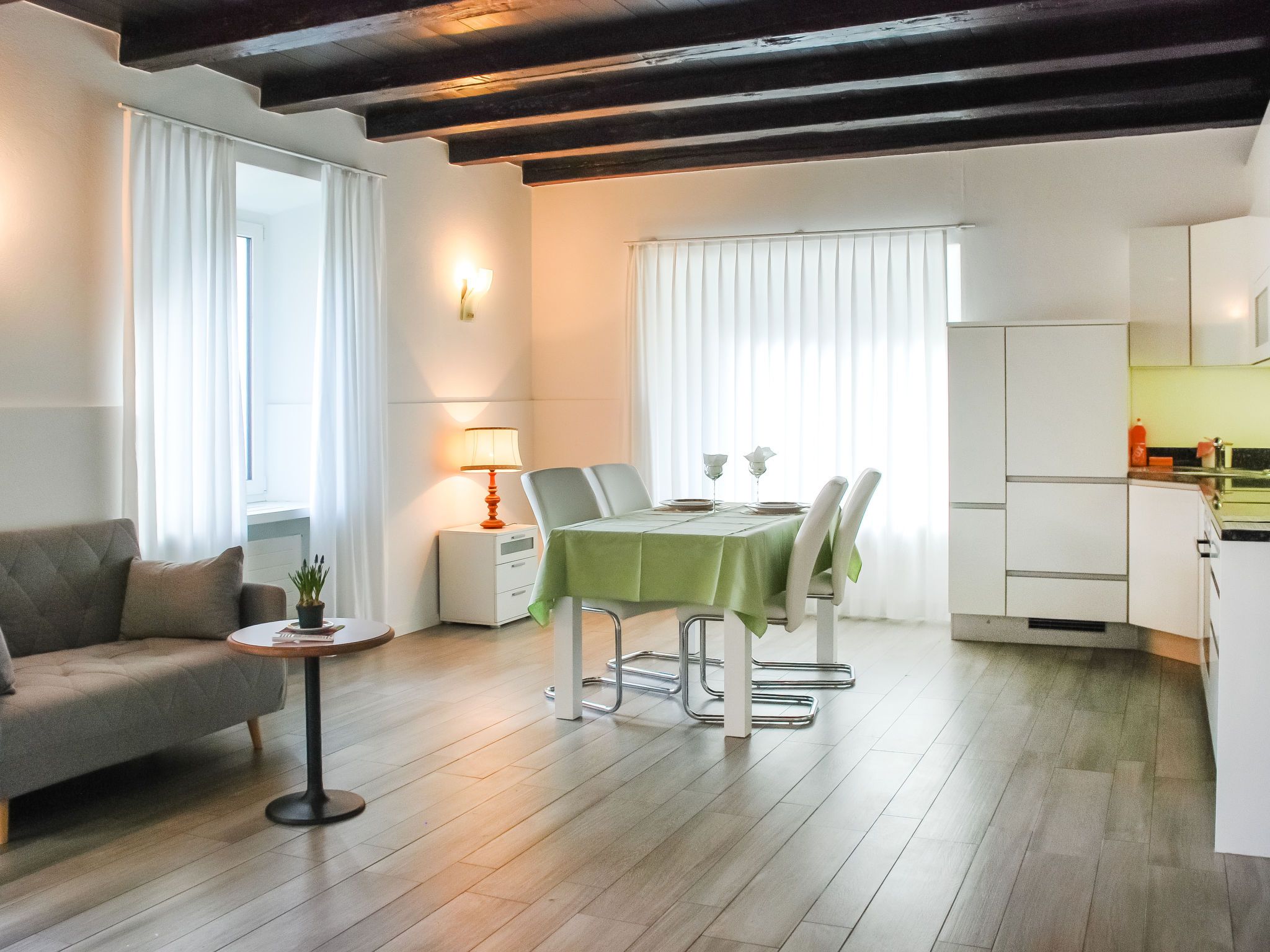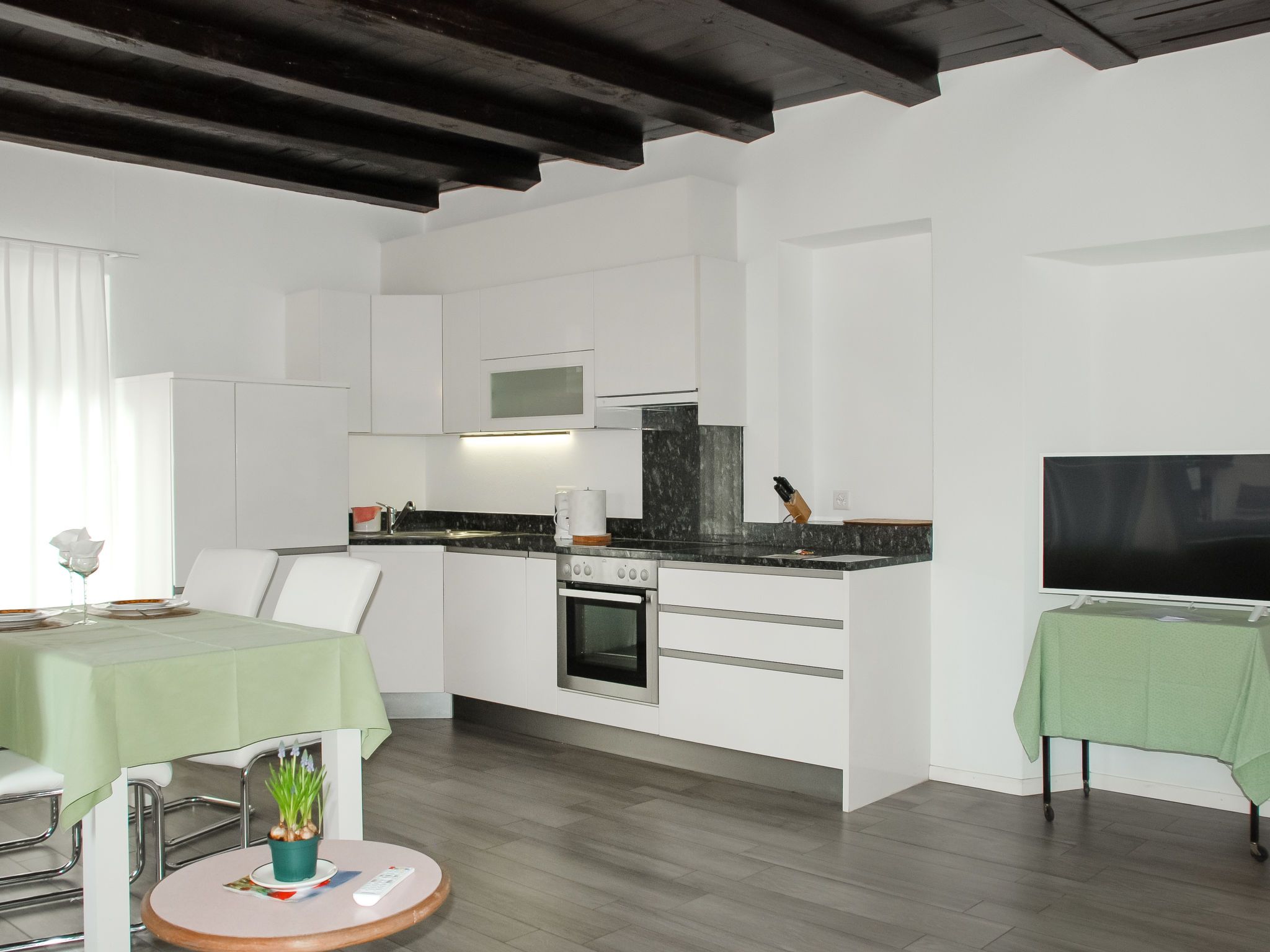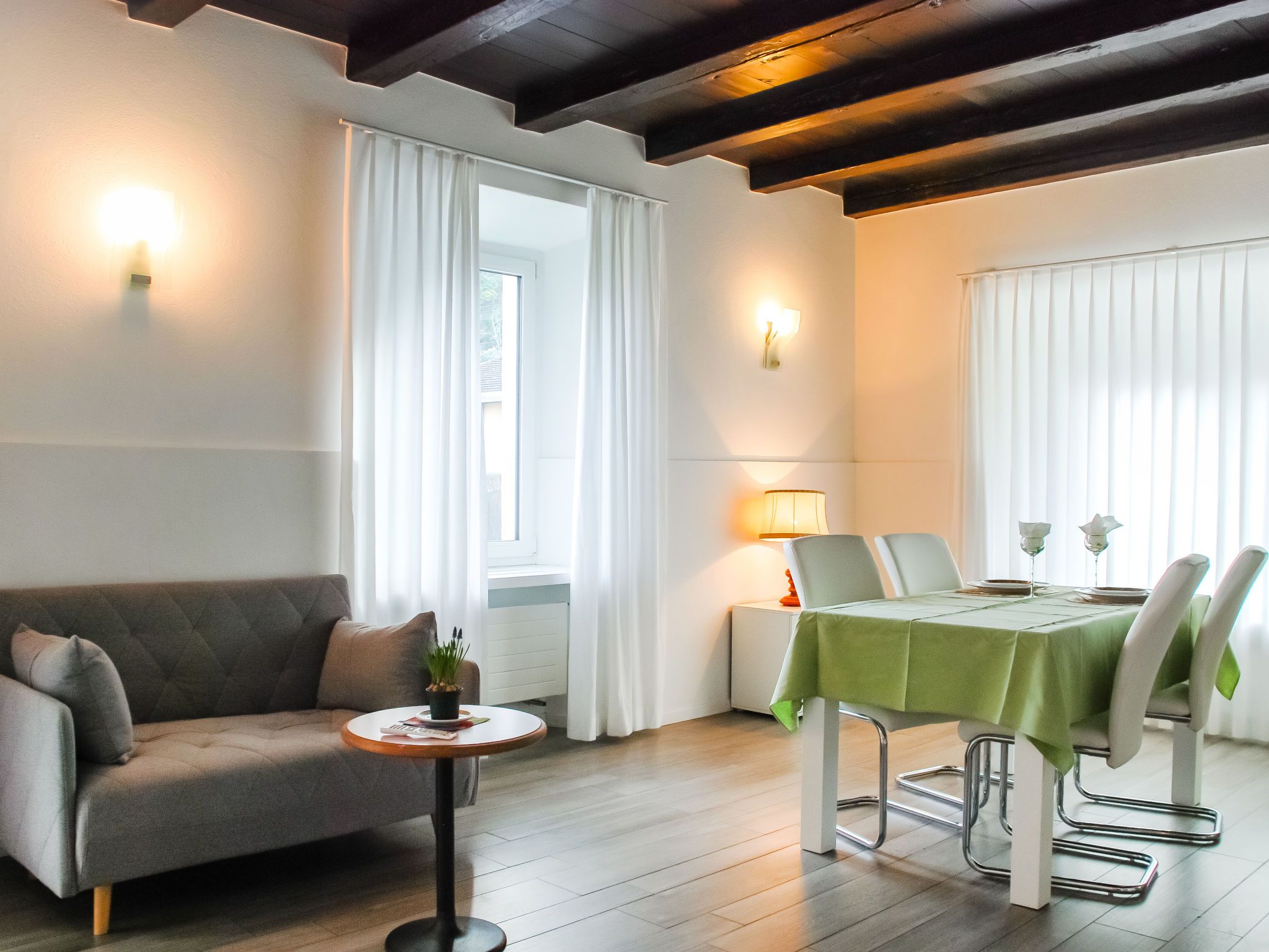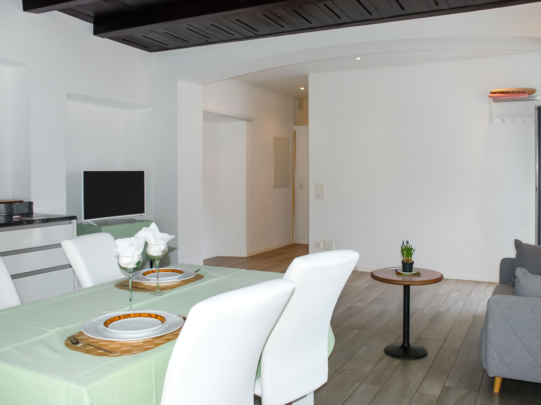 App. Vira Lago 500 Ost - EG, 2-Zimmer-Wohnung 45 m2, im erhöhten Erdgeschoss. Objekt geeignet für 2 Erwachsene + 1 Kind. Hell, teilweise renoviert im Jahre 2021, komfortabel eingerichtet: offenes grosses Wohn-/Esszimmer mit Kabel-TV und Internationale TV-Sender (Flachbildschirm). Ausgang zur Terrasse. 1 Doppelzimmer mit 2 Betten (90 cm, Länge 200 cm), sep. WC und Dusche. Grosse, offene Küche (Backofen, Geschirrspüler, 4 Glaskeramikplatten, Toaster, Wasserkocher, elektrische Kaffeemaschine, Kapseln für die Kaffeemaschine (Nespresso) extra) mit Esstisch, 1 Diwanbett (120 cm, Länge 190 cm). Kleine Terrasse. Terrassenmöbel. Sicht auf die Ortschaft. Zur Verfügung: Bügeleisen, Haartrockner. Internet (Wireless LAN, gratis). Bitte beachten: Nichtraucher-Unterkunft. Eigener Eingang. NL-