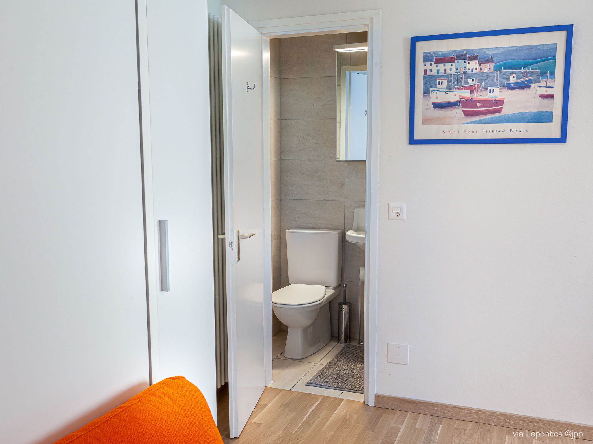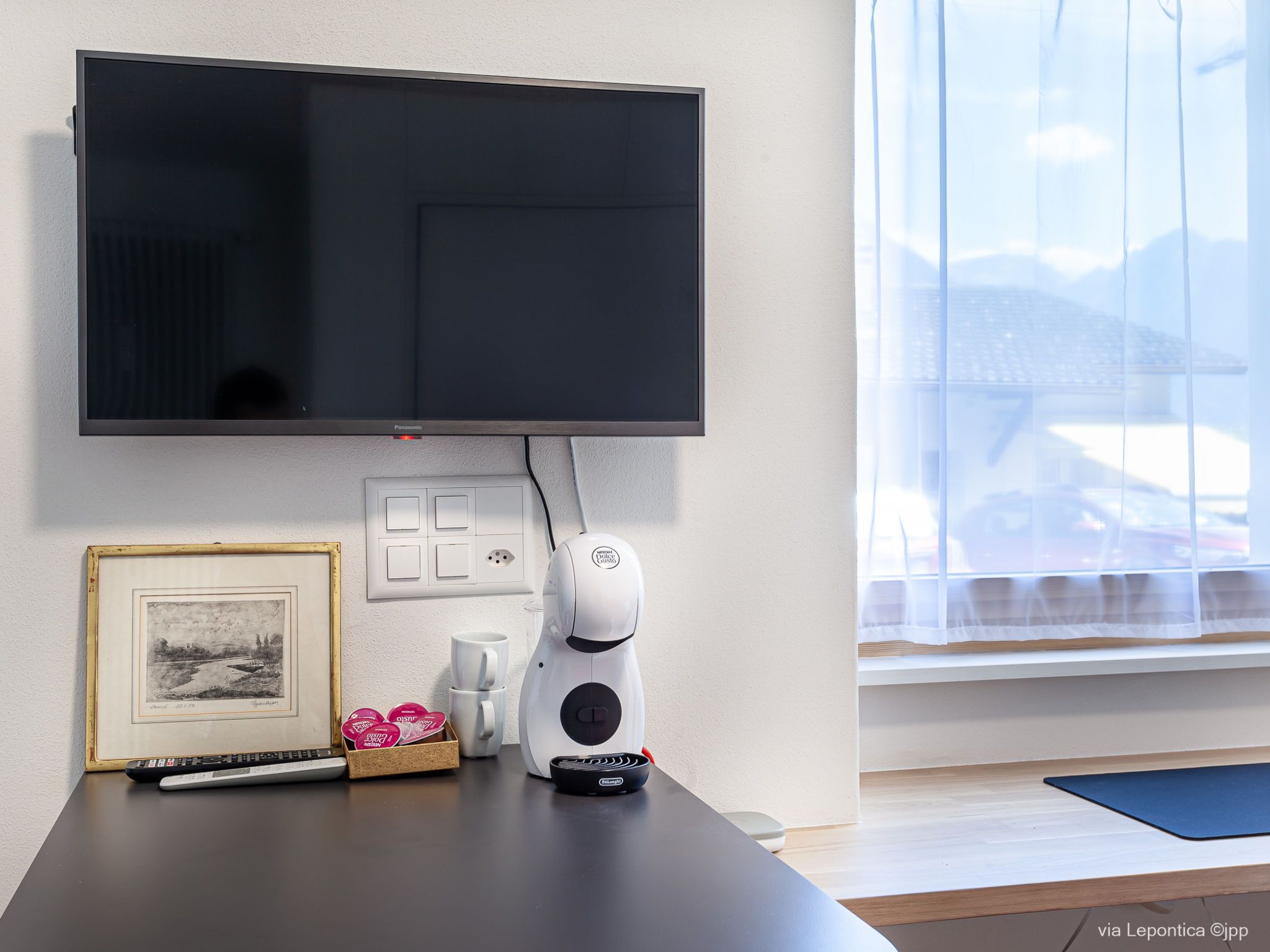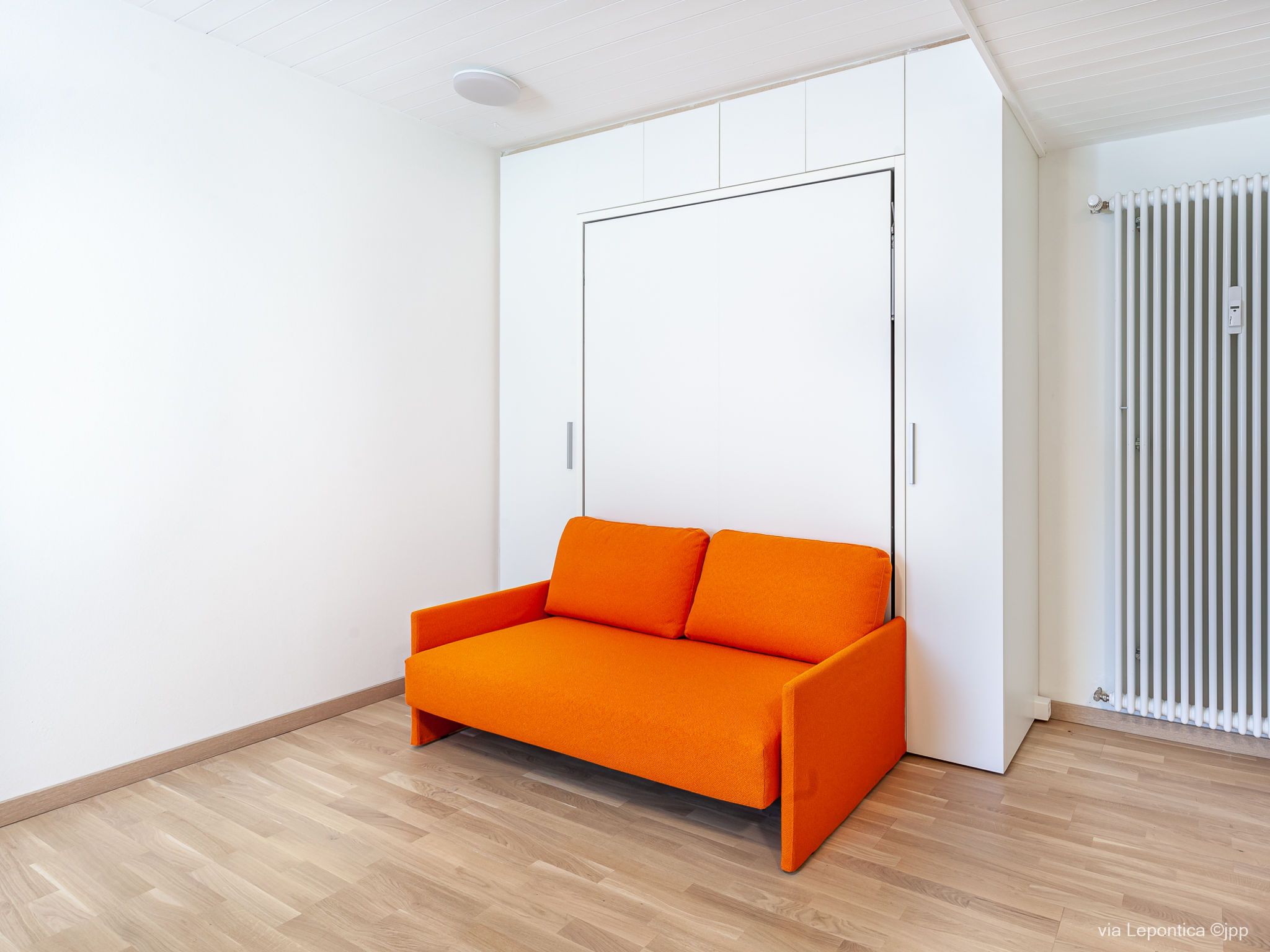 Studio Lepontica, 1-Zimmer-Studio 24 m2, im Erdgeschoss, Ostlage. Objekt geeignet für 2 Erwachsene. Vollständig renoviert im Jahre 2023, komfortabel und modern eingerichtet: offenes Wohn-/Schlafzimmer mit 1 Doppelwandschrankbett (1 x 160 cm, Länge 200 cm), TV. Kochnische (Geschirrspüler, 2 Glaskeramikplatten, Wasserkocher, Mikrowelle, elektrische Kaffeemaschine, Kapseln für die Kaffeemaschine (Dolce Gusto) extra) mit kleiner Bar. Dusche/WC. Heizung. Holzdielenboden. Eingeschränkte Sicht auf die Berge. Zur Verfügung: Haartrockner. Internet (Wireless LAN, gratis). Bitte beachten: Nichtraucher-Unterkunft. Eigener Eingang, Rauchmelder. NL-