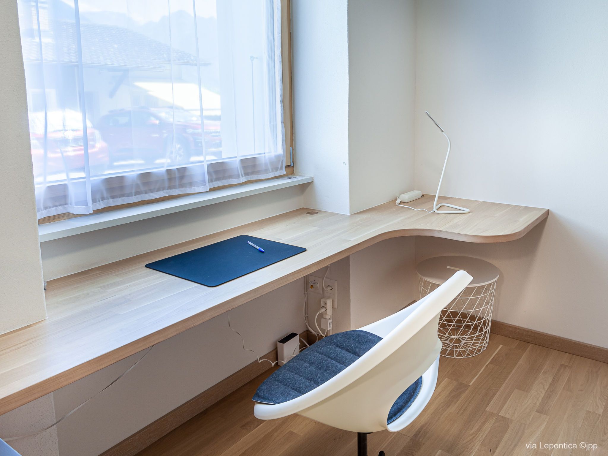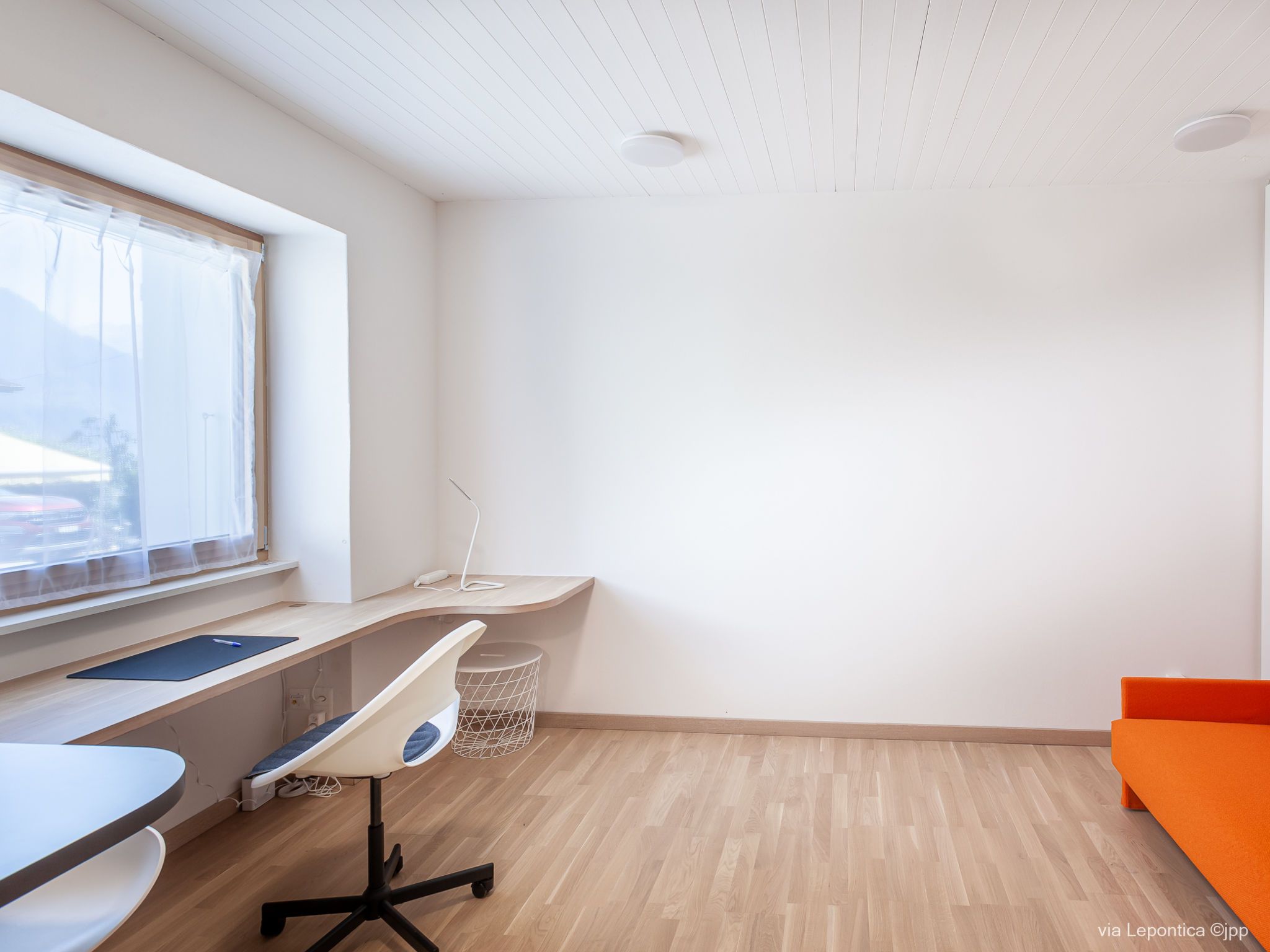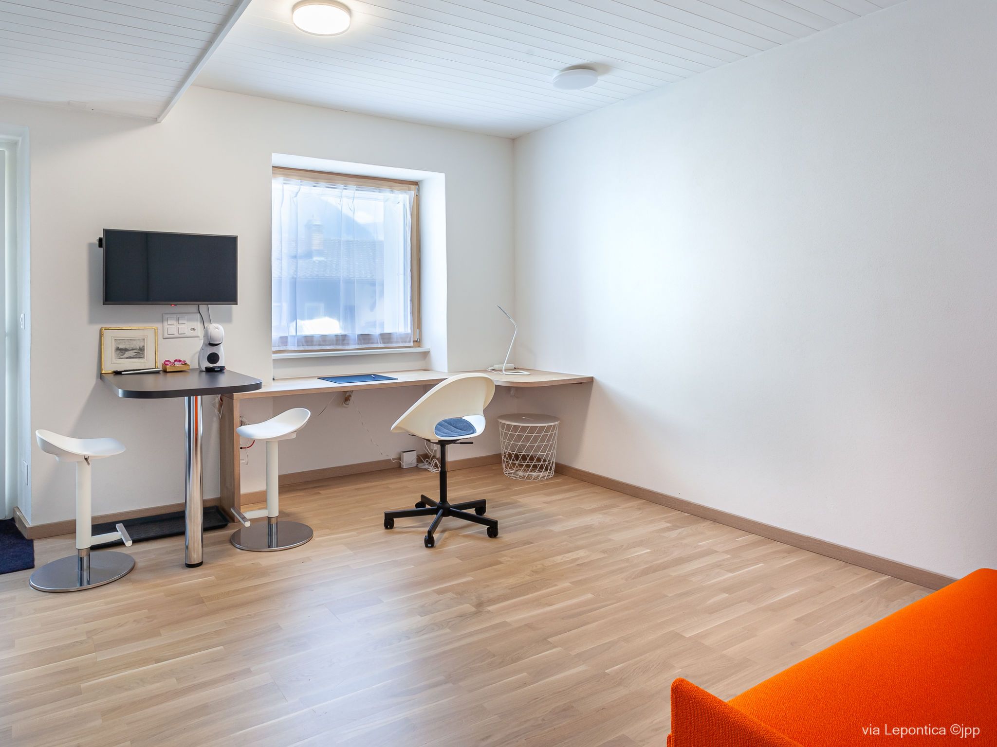 Leontica 11 km von Malvaglia: Komfortabler und heller Arbeitsbereich. Abstellraum für Fahrräder, E-Bike-Aufladung vorhanden und Wasserzugang zur Reinigung. Sehr modernes, schönes Appartementhaus Loft Lepontica, renoviert im Jahre 2023. 4 Wohnungen im Ferienhaus. Im Ortszentrum von Leontica, im Bezirk Valle di Blenio, zentrale, sonnige Lage, im Grünen, Richtung Südosten. Im Hause: Einstellraum für Fahrräder, Wäscherei, Waschmaschine, Wäschetrockner (zur Mitbenutzung). Öffentliche Parkplätze 50 m. Lebensmittelgeschäft 2 km, Supermarkt 6 km, Restaurant 50 m, Bushaltestelle Leontica Chiesa 133 90 m, Bahnstation Biasca FFS - SBB 17.7 km. Wanderwege ab Haus 30 m, Sessellift 900 m, Skipisten 1.5 km, Skiverleih 1.5 km, Skischule 1.5 km. Nahe gelegene Sehenswürdigkeiten: Castelli di Bellinzona UNESCO, Chiesa di Negrentino, Archivio Donetta, Castello di Seravalle, Museo della Valle di Blenio, Splash & Spa. Bekannte Skigebiete sind gut erreichbar: Nara, Campo Blenio, Campra, Airolo. Bekannte Seen in der Umgebung sind gut erreichbar: Lago di Luzzone, Lago Retico, Lago Maggiore (Locarno), Lago di Lugano. Wandergebiete: Valle di Blenio, Nara, Val Malvaglia, Lucomagno, Passi alpini. Bitte beachten: Ferienwohnung Ref. CH6715.35.1 befindet sich auf dem gleichen Grundstück.
