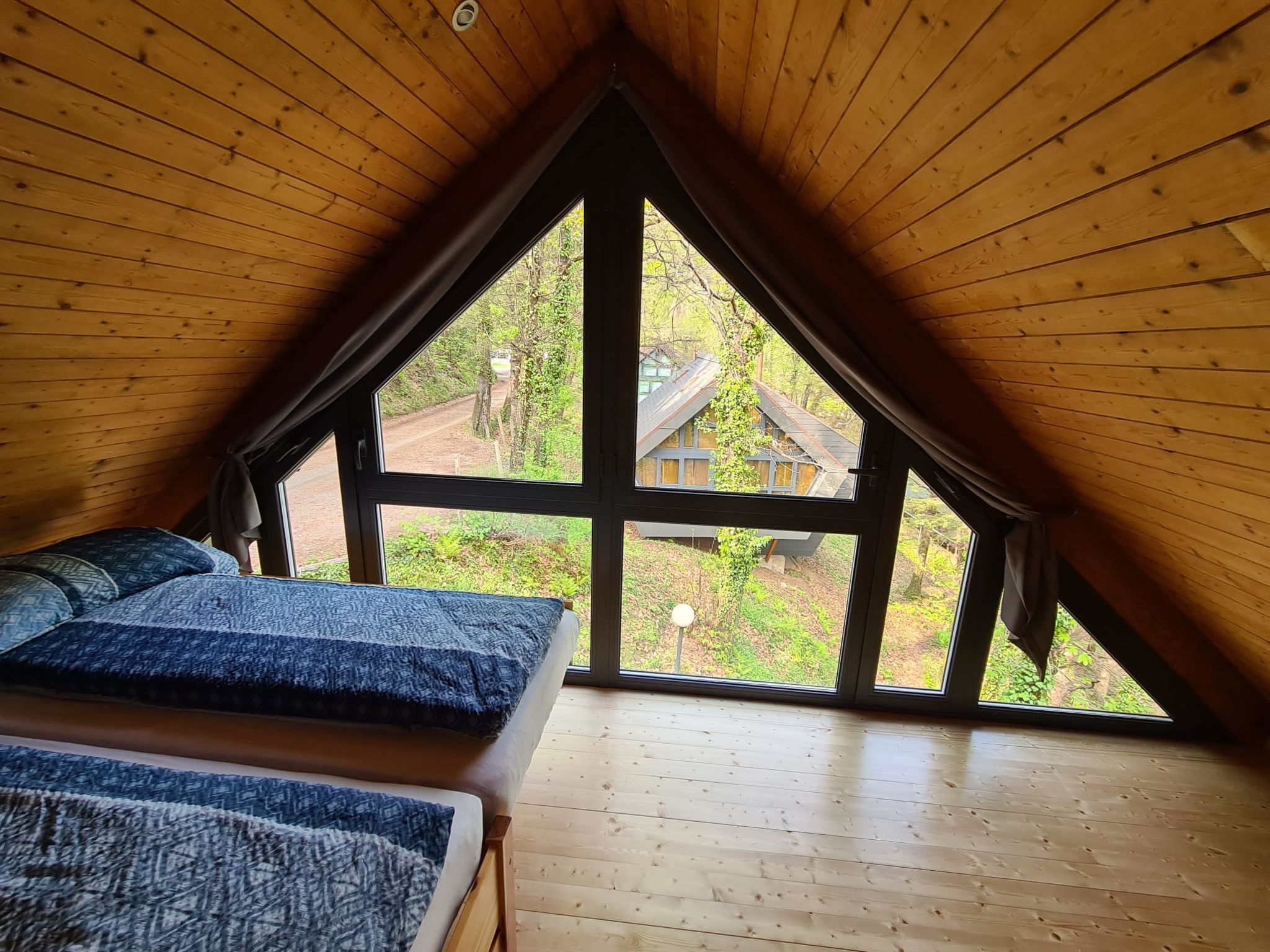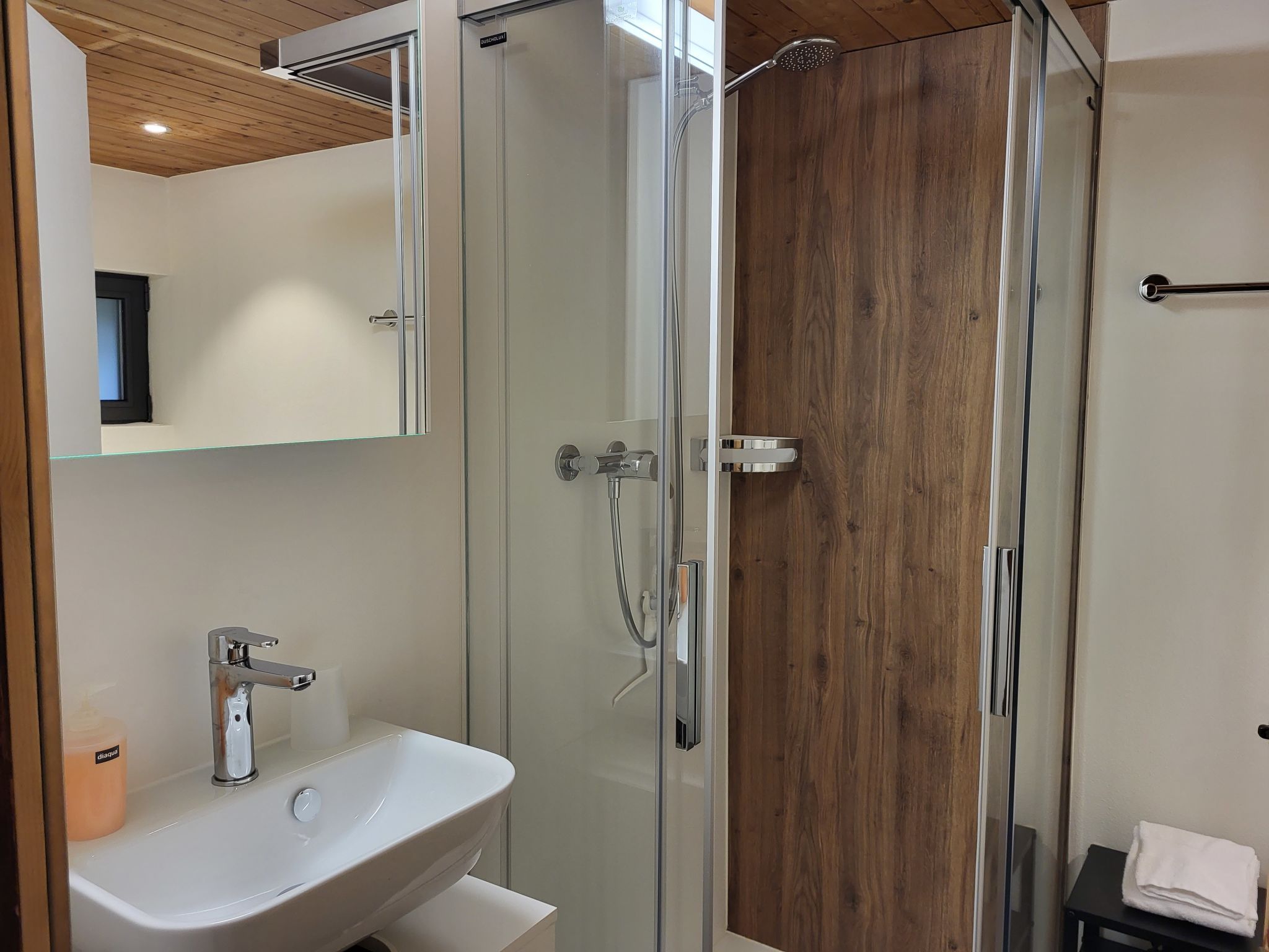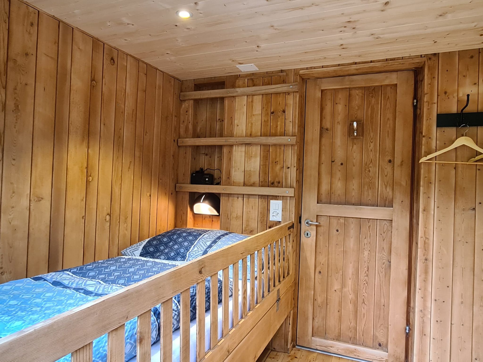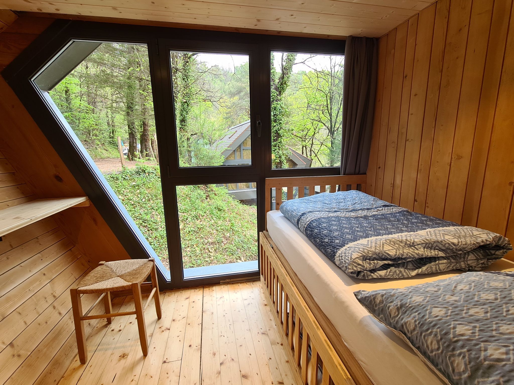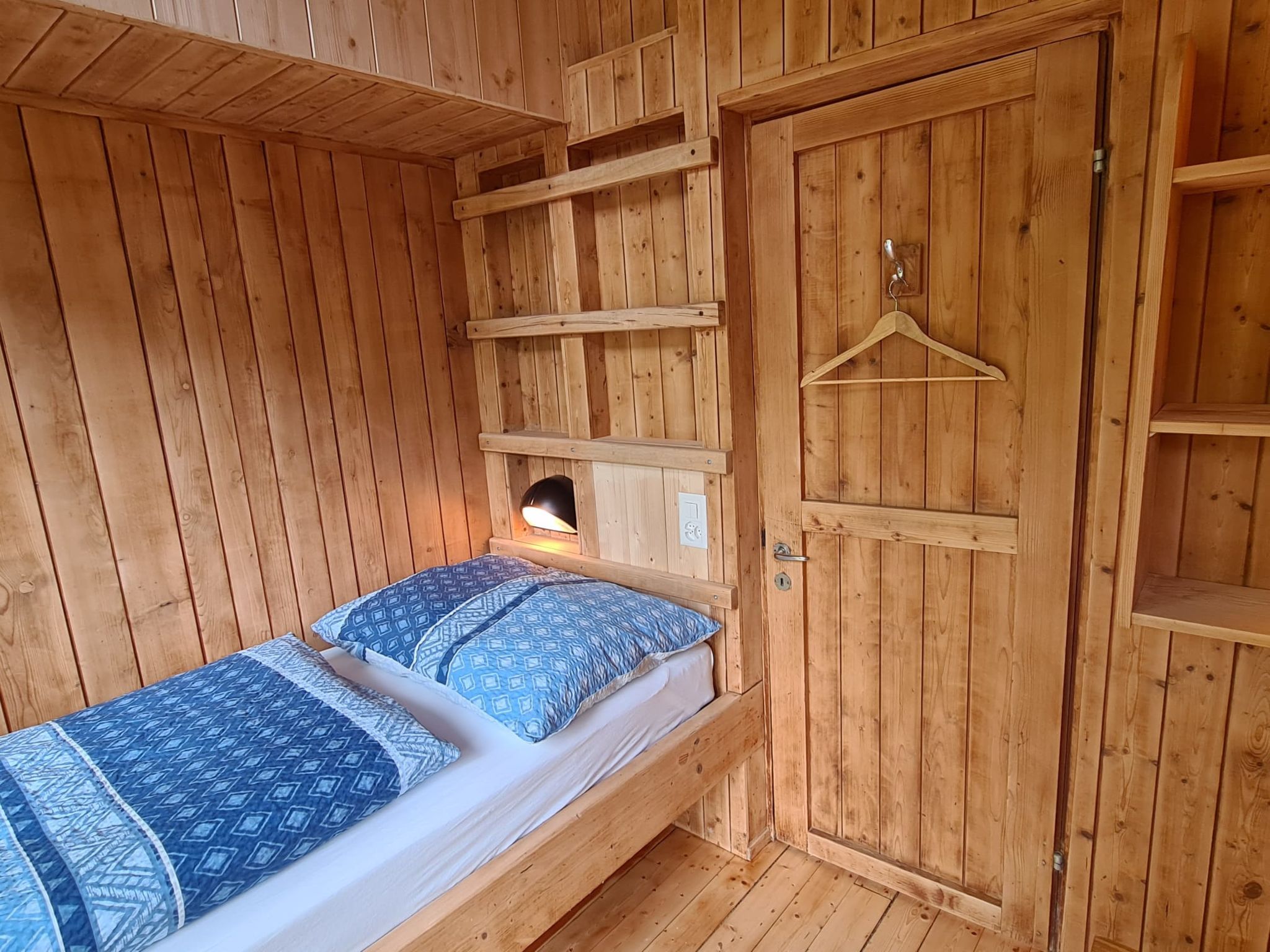 Bosco della Bella 6, 7-Zimmer-Bungalow auf 2 Stockwerken. Teilweise abgeschrägt, renoviert im Jahre 2023, schön und mit viel Holz eingerichtet: offenes Wohn-/Esszimmer. Ausgang zum Balkon. 1 kleines Zimmer mit 1 Bett (90 cm, Länge 200 cm). 1 kleines Zimmer mit 1 Bett (90 cm, Länge 200 cm). 1 kleines Zimmer mit 1 Bett (90 cm, Länge 200 cm). 1 kleines Zimmer mit 1 Bett (90 cm, Länge 200 cm). Kleine, offene Küche (Geschirrspüler, 4 Induktionskochplatten, Toaster, Wasserkocher, Mikrowelle, elektrische Kaffeemaschine, Kapseln für die Kaffeemaschine (Delizio mitbringen) extra). Dusche/WC, sep. WC. E-Heizung, Boiler. Obergeschoss: (steile Treppe) abgeschrägte, offene Galerie mit Kabel-TV und Flachbildschirm. 1 abgeschrägtes Doppelzimmer mit 1 Doppelbett (1 x 160 cm, Länge 200 cm). 1 abgeschrägtes Zimmer mit 2 Betten (90 cm, Länge 200 cm). Holzdielenboden. Balkon, Südlage und Ostlage. Sicht auf das Tal und den Wald. Zur Verfügung: Babybett bis 2 Jahre (extra). Internet (WLAN, gratis). Parkplatz beim Haus. Bitte beachten: geeignet für Familien. Nichtraucher-Haus. NL-