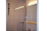 Das Badezimmer ist mit einer Dusche, WC und Waschbecken versehen.