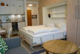 Die kleine Ferienwohnung ist zweckmäßig eingerichtet. Sie bietet Ihnen einen Wohn-/ Schlafraum Wandschrankbetten und eine Couchgarnitur für entspannte Stunden. Für Ihre Unterhaltung steht ein Fernseher (Kabel-TV) für Sie bereit.