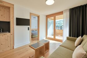Catrina 2-Zimmer Standard Apartment, 2-Zimmer-Wohnung 60 m2. Komfortabel und modern eingerichtet: Wohn-/Esszimmer mit 1 Doppeldiwanbett (176 cm, Länge 195 cm), Kabel-TV (Flachbildschirm), Radio. Ausgang zum Balkon. 1 Zimmer mit 1 Doppelbett (160 cm, Länge 200 cm), Kabel-TV (Flachbildschirm). Offene Küche (2 Induktionskochplatten, Wasserkocher, Mikrowelle, elektrische Kaffeemaschine, Kapseln für die Kaffeemaschine (Nespresso) extra). Dusche/WC. Holzdielenboden. Balkon. Balkonmöbel. Schöne Sicht auf die Berge, die Landschaft und die Ortschaft. Zur Verfügung: Kinderhochstuhl, Babybett, Haartrockner. Internet (Wireless LAN, gratis). Garage. Bitte beachten: Nichtraucher-Unterkunft.