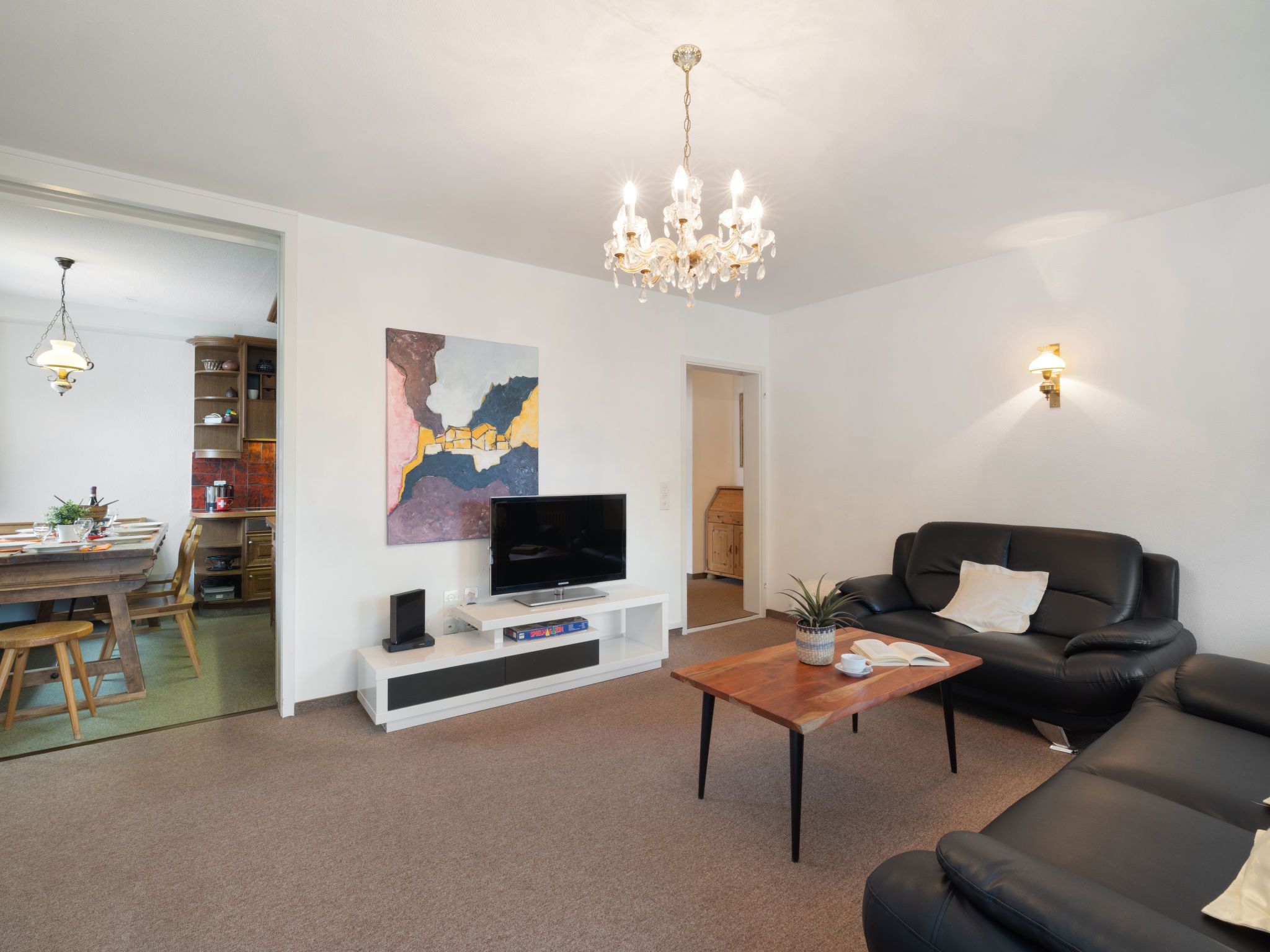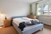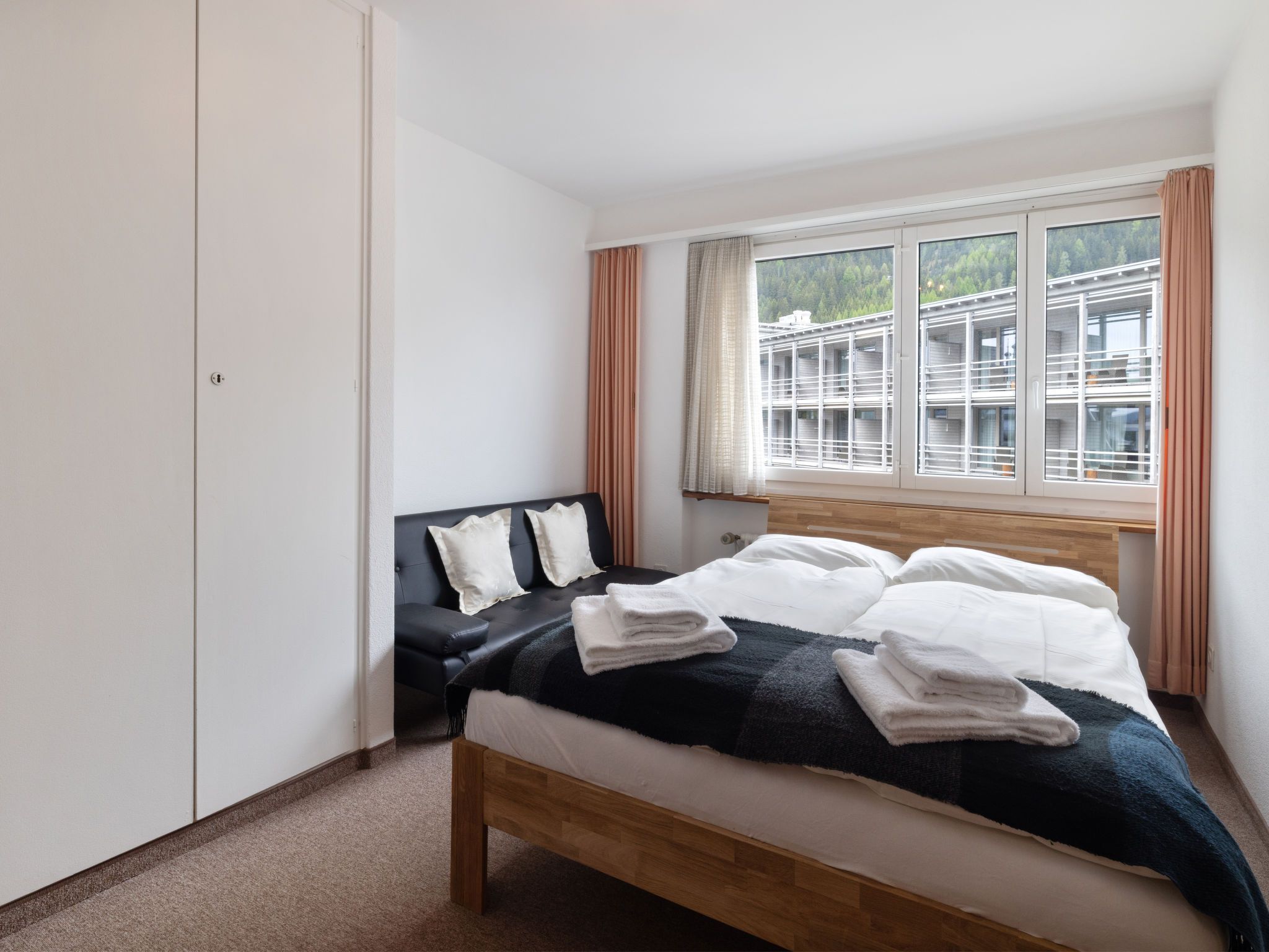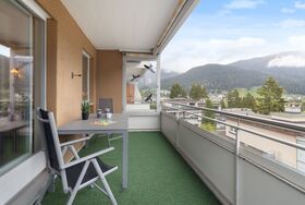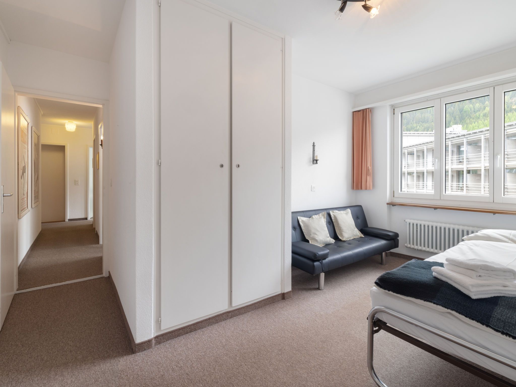 Regina Apt Golfblick, 6-Zimmer-Wohnung 160 m2 im 4. Stock, Südostlage. Geräumig, einfach und zweckmässig eingerichtet: Wohn-/Esszimmer mit offenem Kamin (nur Deko), Kabel-TV (Flachbildschirm). Ausgang zum Balkon, Richtung Südosten. 1 Doppelzimmer 20 m2 mit 1 Doppelbett (2 x 90 cm, Länge 200 cm). 1 Zimmer 15 m2 mit 1 franz. Bett (1 x 140 cm, Länge 200 cm). 3 Zimmer, jedes Zimmer mit 1 Bett (90 cm, Länge 200 cm). Offene Küche (Backofen, Geschirrspüler, 4 Glaskeramikplatten, Toaster, Wasserkocher, Mikrowelle, elektrische Kaffeemaschine, Kapseln für die Kaffeemaschine (Nespresso) extra, Fondue Set (Chinoise, Käse)) mit Esstisch. Bad/WC, Dusche/WC, sep. WC, Doppelwaschbecken. Teppichboden. Balkon 15 m2, Südostlage. Balkonmöbel. Panoramasicht auf die Berge und das Städtchen. Zur Verfügung: Internet (WLAN, gratis). Bitte beachten: geeignet für Familien. Nichtraucher-Unterkunft, kein Parkplatz. Anstelle eines abgeschlossenen Schlafzimmers befinden sich manche Schlafplätze in einem offenen Bereich (Galerie, Nische etc.). 50047