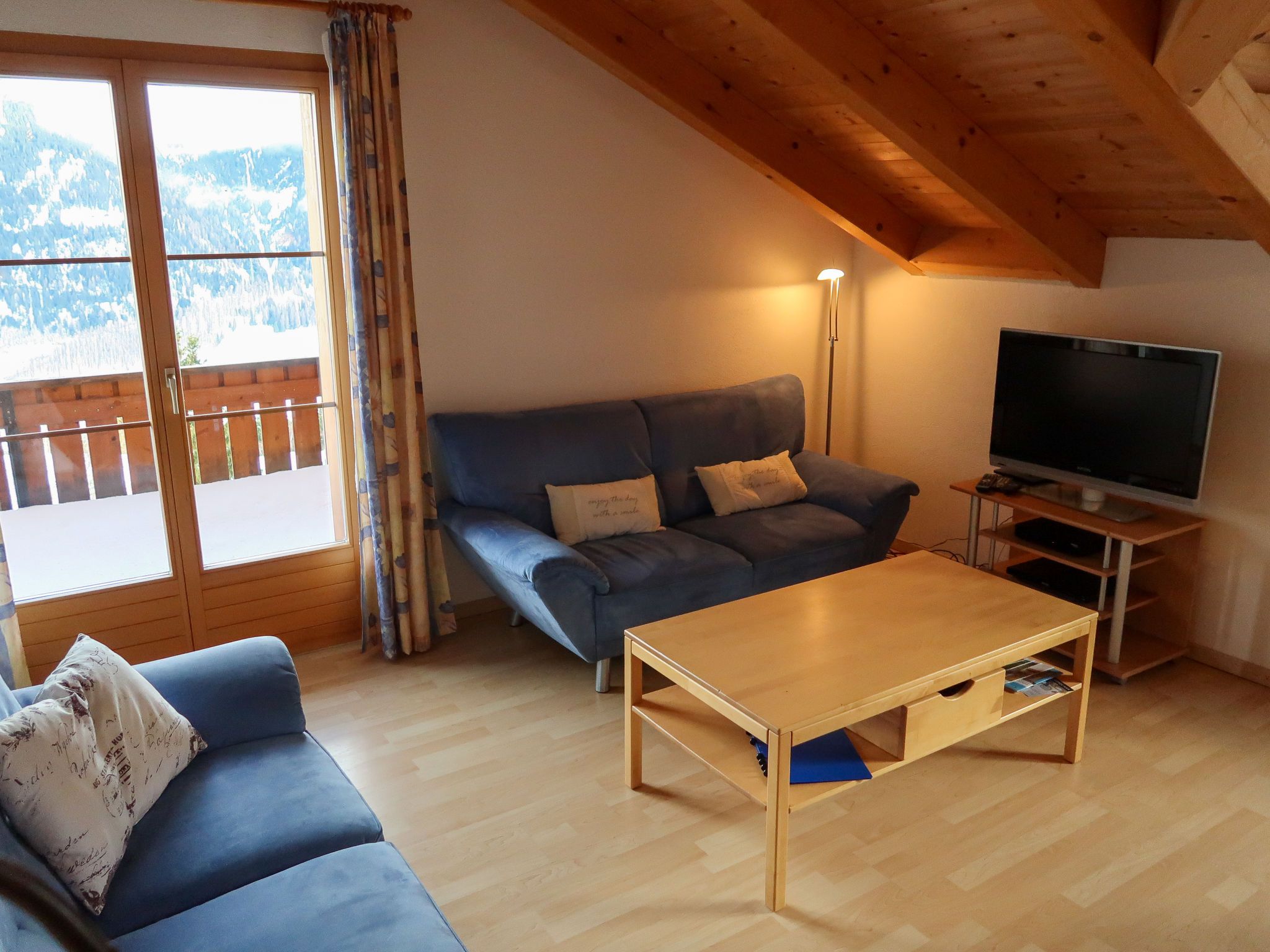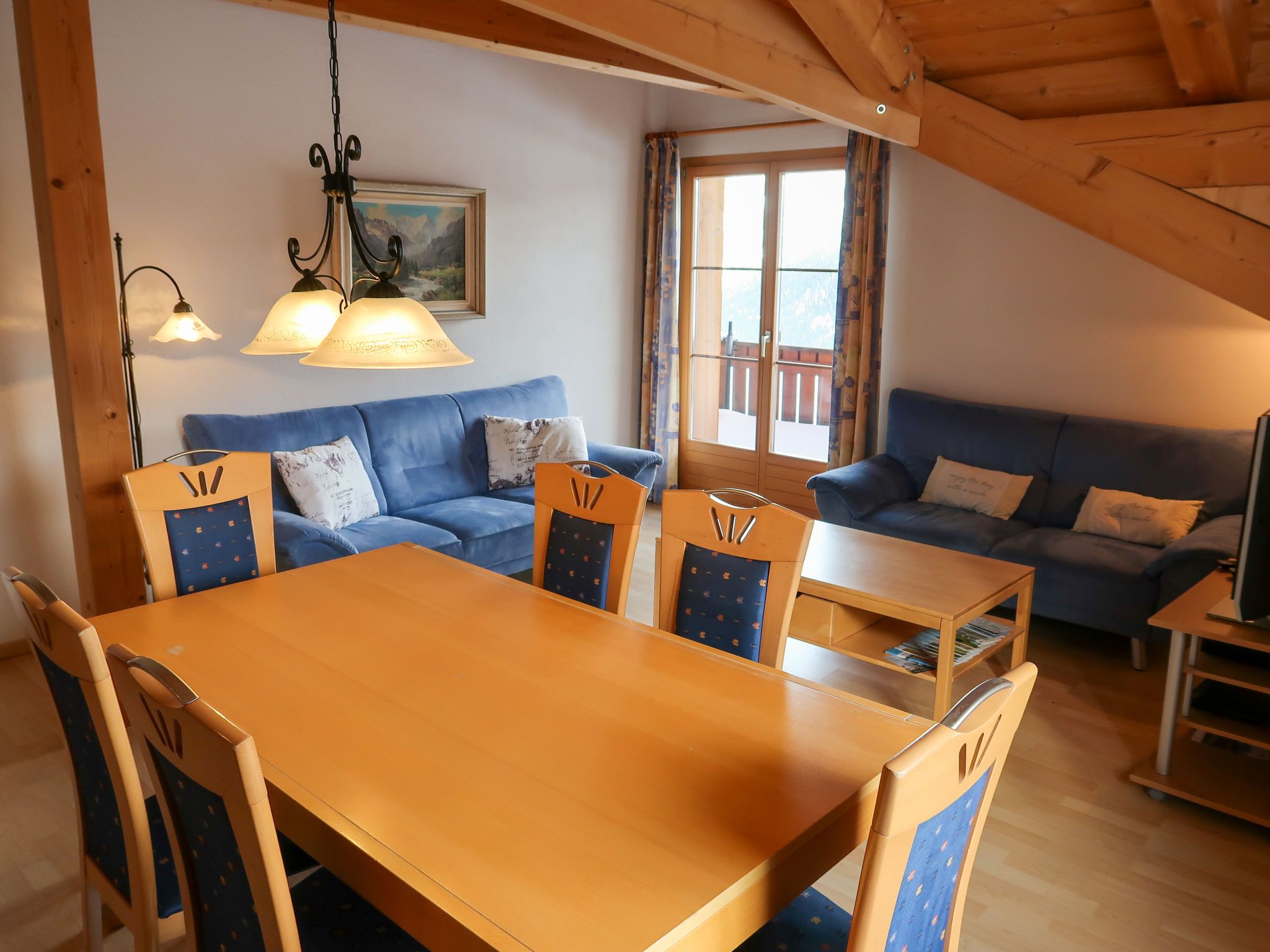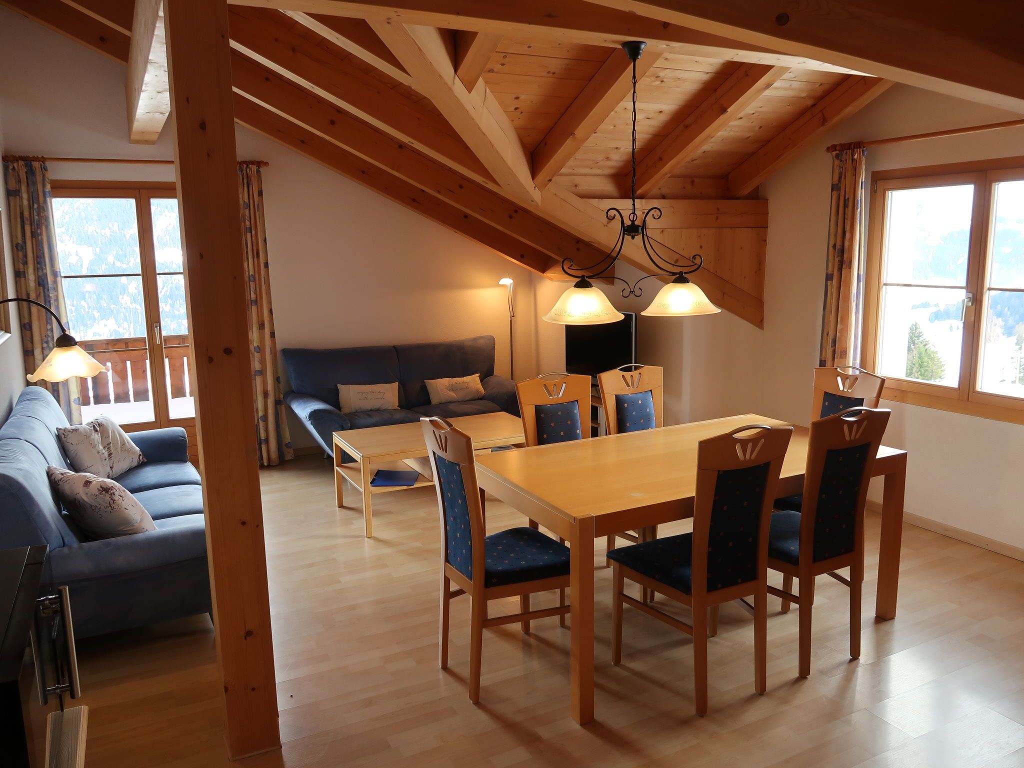 Tga Stgirat Dachgeschoss, 3-Zimmer-Wohnung 82 m2 im 2. Stock. Komfortabel und geschmackvoll eingerichtet: Wohn-/Esszimmer mit 1 Diwanbett und Sat-TV (Flachbildschirm), DVD. Ausgang zum Balkon. 1 Zimmer mit 1 Bett und 1 Doppelbett. 1 Doppelzimmer. Offene Küche (Backofen, Geschirrspüler, 4 Glaskeramikplatten, Toaster, Wasserkocher, Mikrowelle, elektrische Kaffeemaschine, Racletteofen, Fondue Set (Käse)). Dusche/WC, sep. WC. Balkon 10 m2. Balkonmöbel. Schöne Sicht auf die Berge, das Tal und die Landschaft. Zur Verfügung: Haartrockner. Internet (WLAN, gratis). Parkplatz (1 Auto), Garage (extra). Bitte beachten: Nichtraucher-Unterkunft. Maximal 1 Haustier/Hund erlaubt.