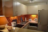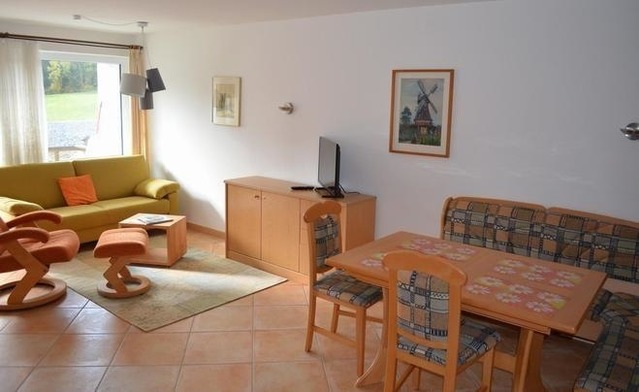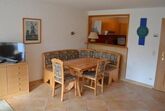 Im gefliesten Wohnbereich finden Sie in der Sitzlandschaft Ruhe und Erholung beim Fernsehen oder Lesen. Mahlzeiten können in der Essecke verspeist werden, die an die Küche angrenzt und mit einer Durchreiche verbunden ist.