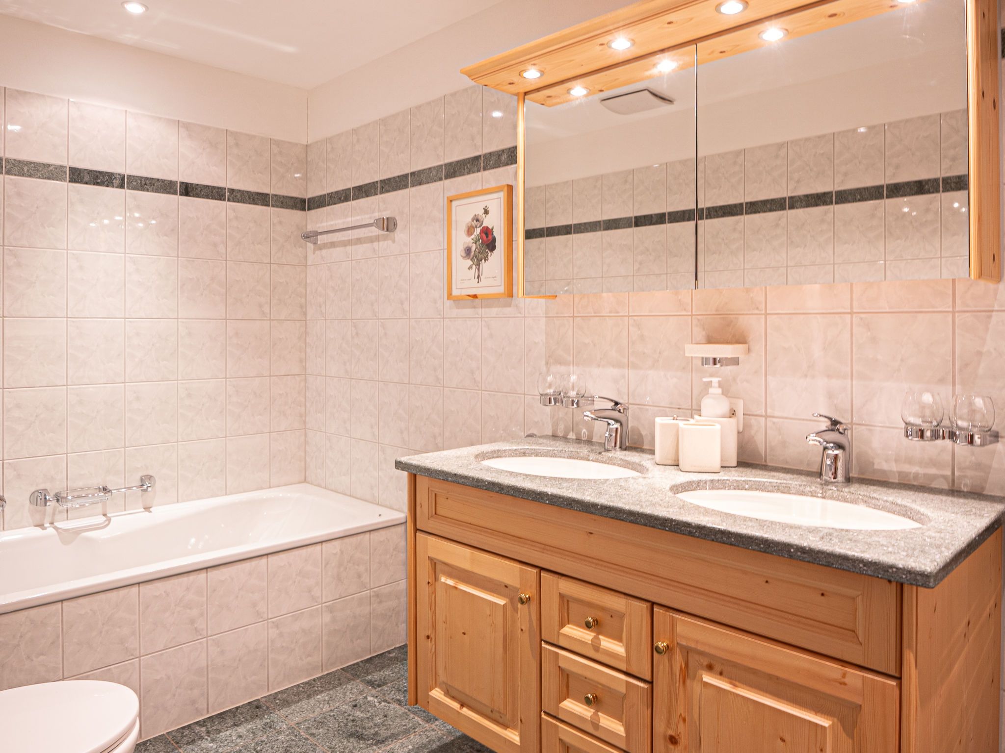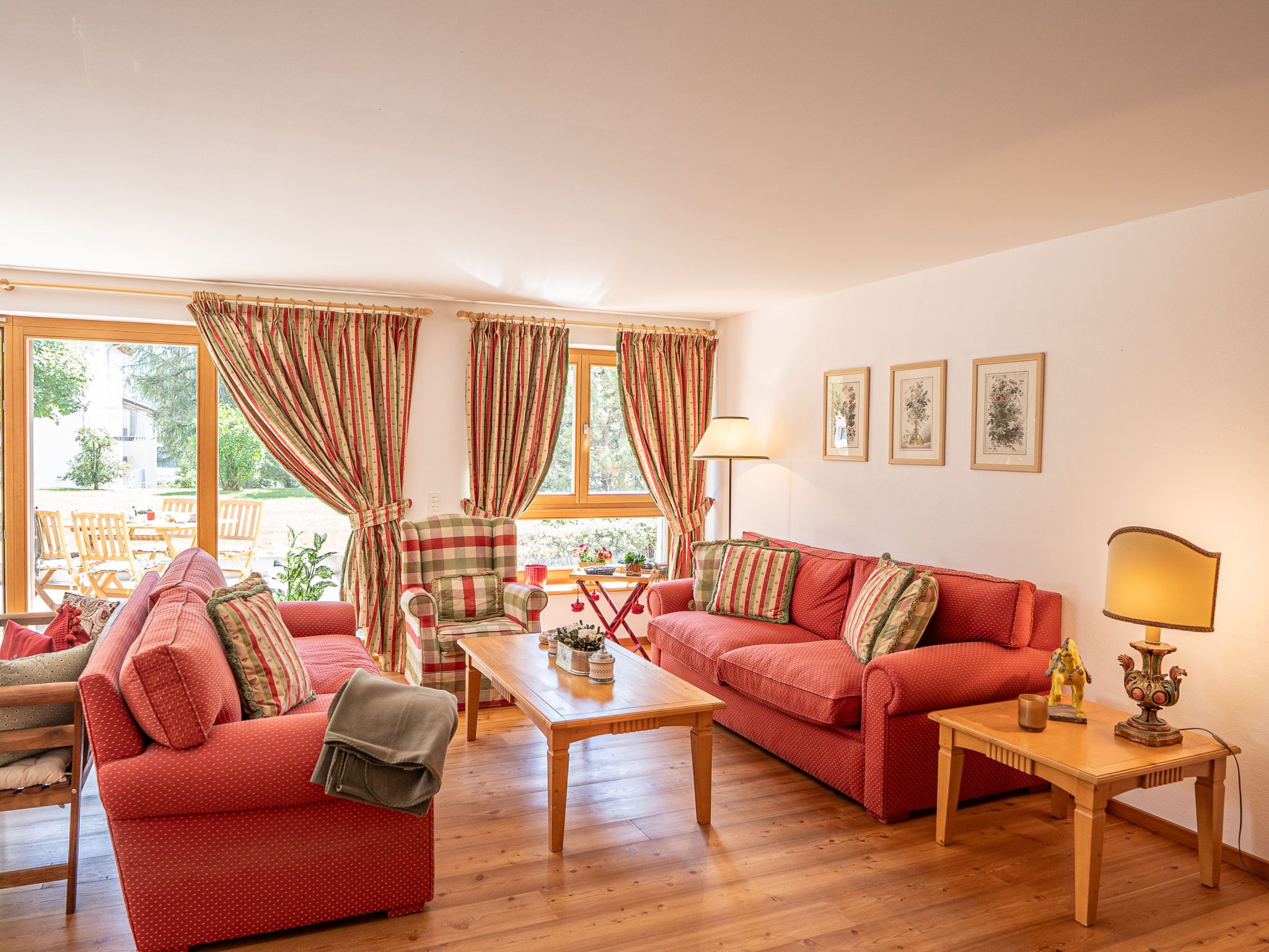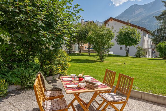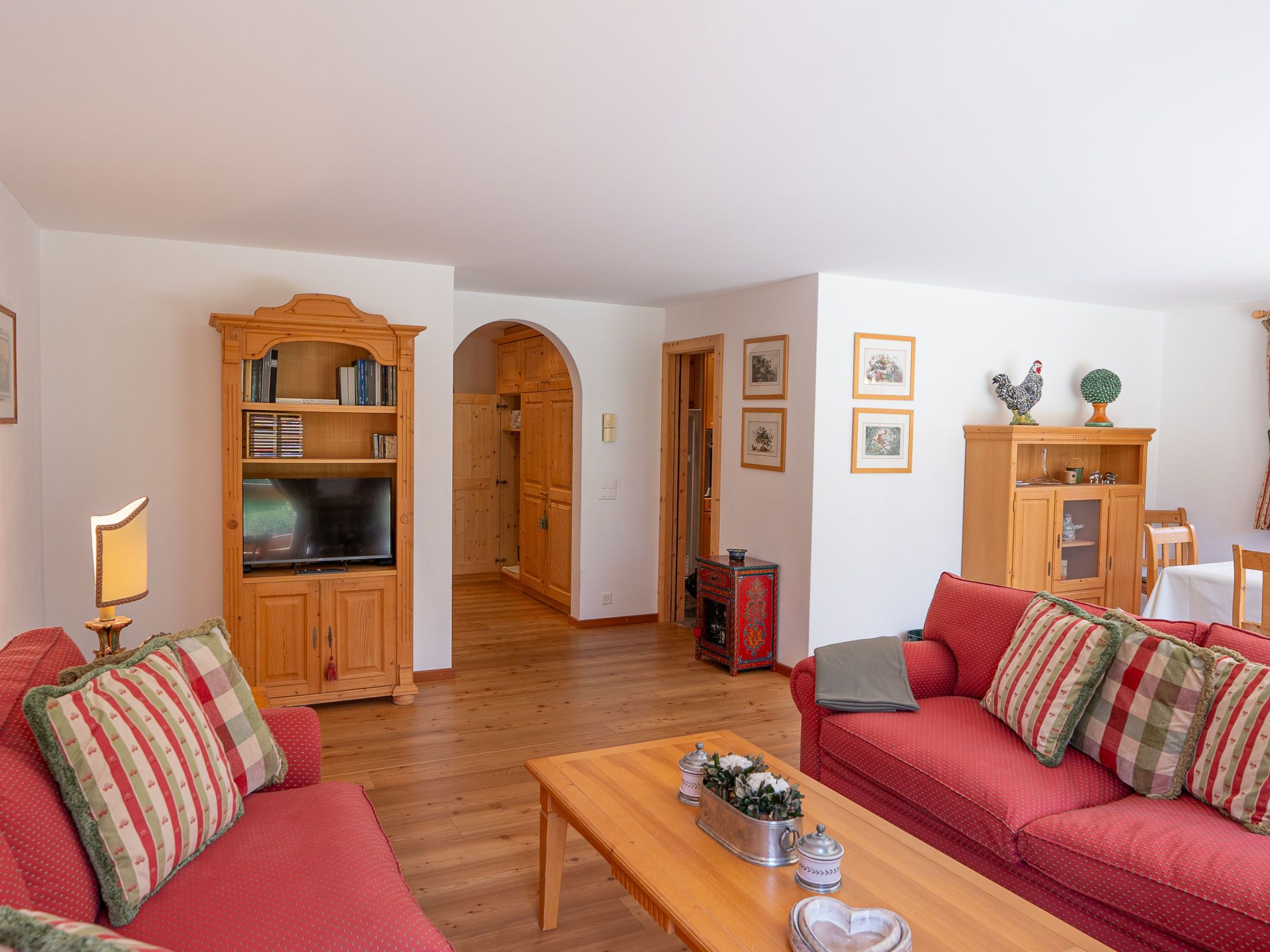 Chesa Dal Luf B1, 3-Zimmer-Wohnung 110 m2, im Erdgeschoss. Geräumig und hell, geschmackvoll und gemütlich eingerichtet: grosses Wohn-/Esszimmer mit TV (Flachbildschirm). Ausgang zum Garten, zum Gartensitzplatz. 1 grosses Doppelzimmer mit 1 Doppelbett (2 x 90 cm, Länge 200 cm), Bad/WC und Bidet. 1 Zimmer mit 2 Betten (90 cm, Länge 200 cm). Grosse Küche (Backofen, Geschirrspüler, 2 Glaskeramikplatten, 2 Induktionskochplatten, Toaster, Wasserkocher, elektrische Kaffeemaschine, Kapseln für die Kaffeemaschine (Nespresso) extra). Dusche/WC. Heizung. Holzdielenboden. Terrassenmöbel. Schöne Sicht auf die Berge und die Landschaft. Zur Verfügung: Bügeleisen, Haartrockner. Internet (Wireless LAN, gratis). Garage Nr. 5+6, Höhe 250 cm, Breite 230 cm. Bitte beachten: Nichtraucher-Unterkunft, Nichtraucher-Haus.