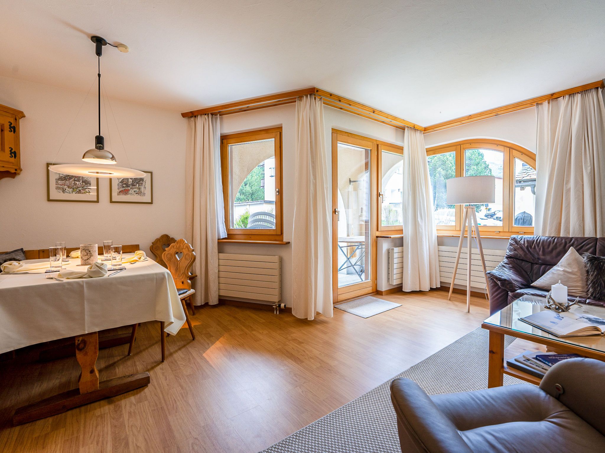 Chesa Auricula 1.1, 3-Zimmer-Wohnung 92 m2, im Erdgeschoss. Geräumig und hell, gemütlich eingerichtet: Wohn-/Esszimmer mit TV (Flachbildschirm). Ausgang zur Terrasse. 1 Zimmer mit 2 Betten (90 cm, Länge 200 cm). 1 Doppelzimmer mit 1 Doppelbett (2 x 90 cm, Länge 200 cm). Küche (Backofen, Geschirrspüler, 4 Glaskeramikplatten, Toaster, Wasserkocher, Mikrowelle, Tiefkühler, elektrische Kaffeemaschine, Kapseln für die Kaffeemaschine (Nespresso) extra, Fondue Set (Käse)). Bad, Dusche/WC. Heizung. Gartensitzplatz 10 m2. Terrassenmöbel. Seitliche Sicht auf die Berge und die Ortschaft. Zur Verfügung: Bügeleisen, Haartrockner. Internet (WLAN, gratis). Garage Nr. 11 (1 Auto), Höhe 205 cm, Breite 220 cm. Bitte beachten: geeignet für Familien. Nichtraucher-Unterkunft, Nichtraucher-Haus. Maximal 1 Haustier/Hund erlaubt.