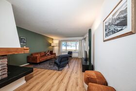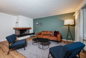 Wohnraum mit Polstergruppe, Essecke, TV, Kamin, W-LAN.