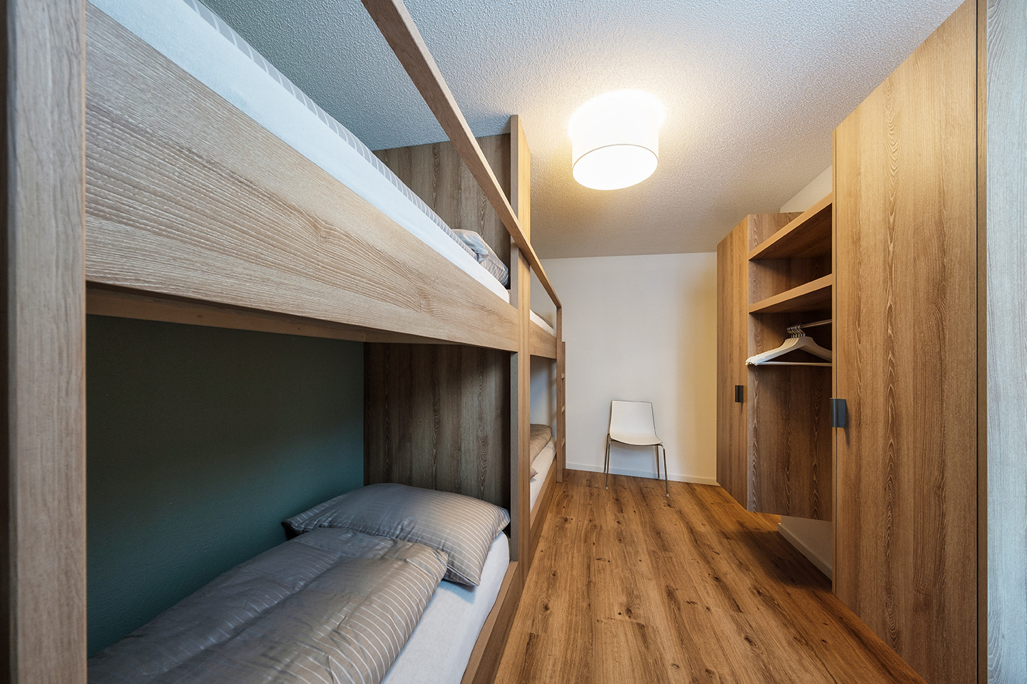 Schlafzimmer mit 2 Etagenbetten (80x200).
