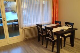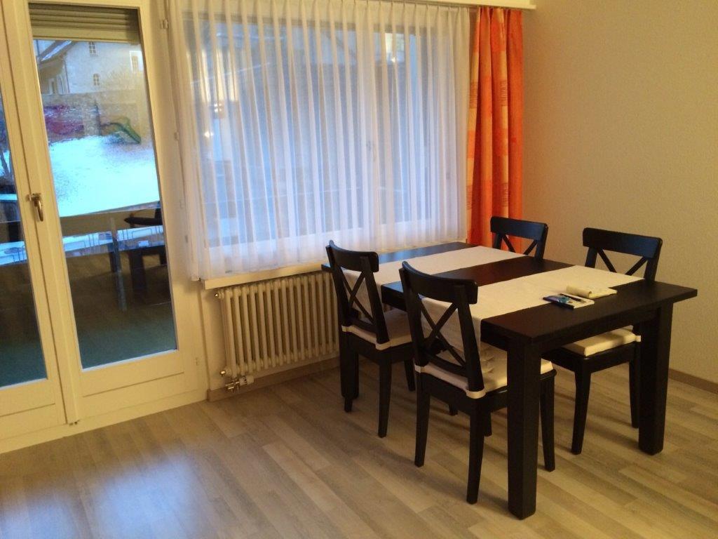 1,5 Zimmerwohnung im 2. Stock, ca. 44 m2 mit Balkon, 2 bis max. 4 Personen; zentral gelegen, Einkauf, Bahnen, Langlaufloipe zu Fuss erreichbar. Eisbahn in der Nähe oder mit dem Ortsbus (gratis) erreichbar; im selben Haus: eine Pizzeria. Autoeinstellhalle, Hallenbad (gratis), Sauna gegen Gebühr, Abschliessbarer Skischrank, Lift/ Aufzug; Küche: Geschirrspüler, Raclett/Fondueset, Wasserkocher, Nespresso Kaffeemaschine/ Filterkaffee. Küchentücher, Abwaschmittel vorhanden; Dusche/ WC, Haarföhn und Frottierwäsche vorhanden; 1 separates Schlafzimmer mit Doppelbett; Wohnraum mit Sofabett, Essecke, TV, WiFi (gratis); Balkon: Sitzbank, Tisch und 4 Klappstühle; Nichtraucherwohnung, kein Teppich, Haustiere nicht erlaubt.