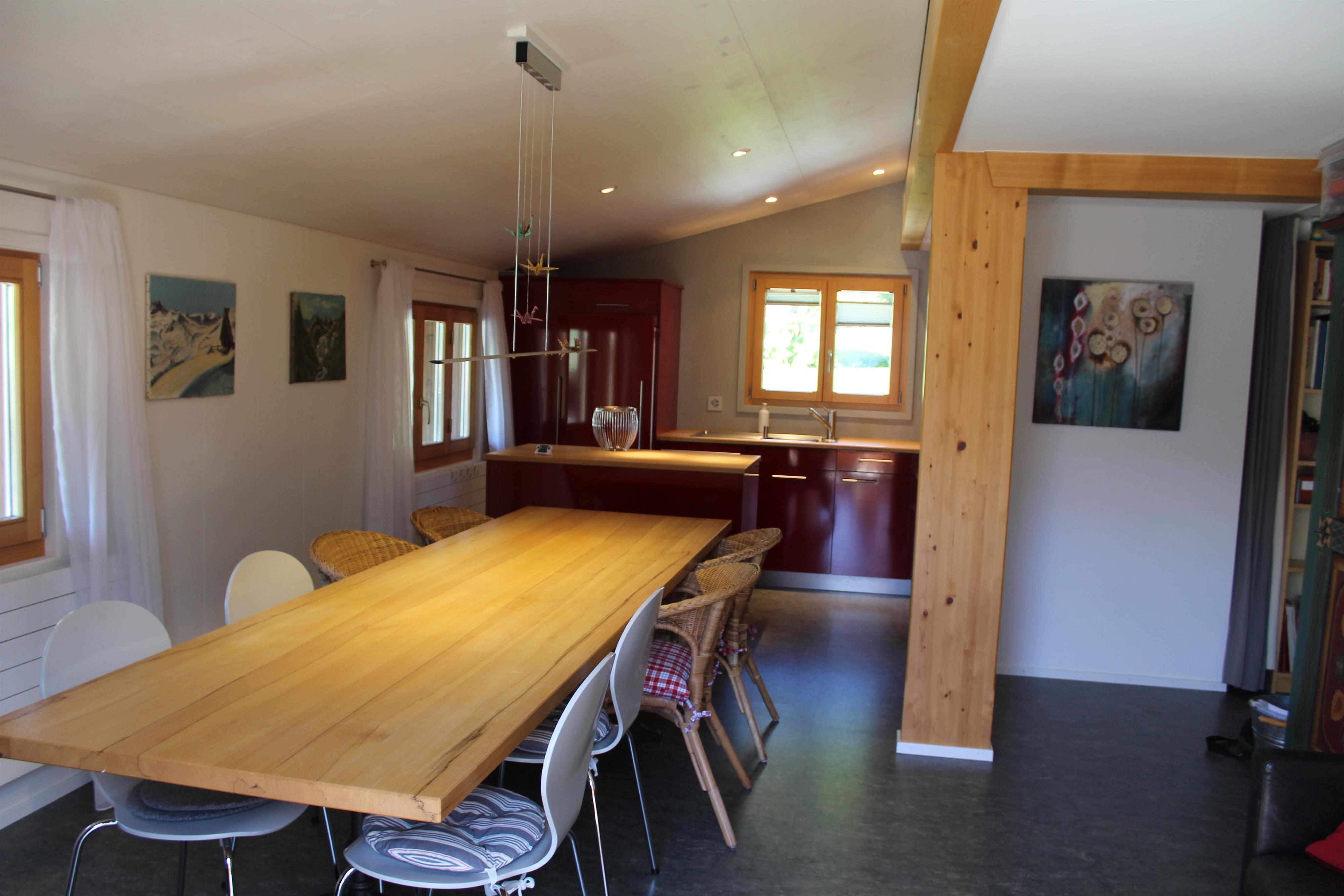 Das 2 Familienhaus befindet sind an der unteren Kurhausstrasse 9, im Gebäude der Malerei Baumann ( stilles Gewerbe) Wohnung ist im Dachgeschoss mit einmaliger Aussicht auf unsere Adelbodner Bergwelt. ( 2. Stock) Die Wohnung verfügt über 4 Schlafzimmer mit je einem Doppelbett und in jedem Zimmer ist ein Lavabo mit Kalt- und Heisswasser, 1 Bad mit Badewanne und WC, gut eingerichtete Küche mit Nespresso Kaffeemaschine, Raclettofen und Fonduecaquelon etc. Küche und Wohnzimmer sind in einem grossen Raum zusammen (Wohnküche). Kleiner Balkon mit Gartenmöbel läd zum verweilen ein. Im Parterre sind Schuh- und Skiraum. 2 reservierte Parkplätze stehen zur Verfügung