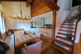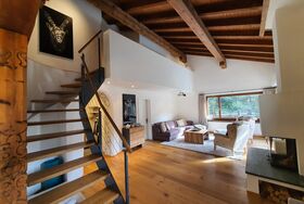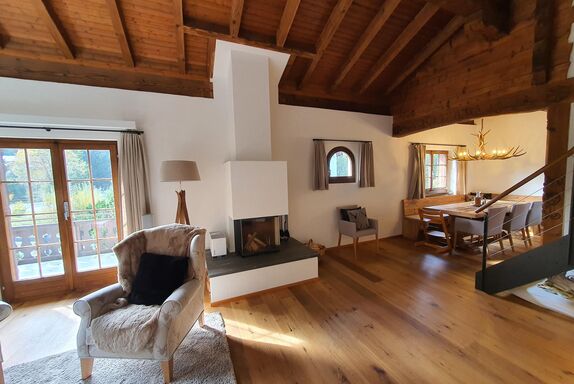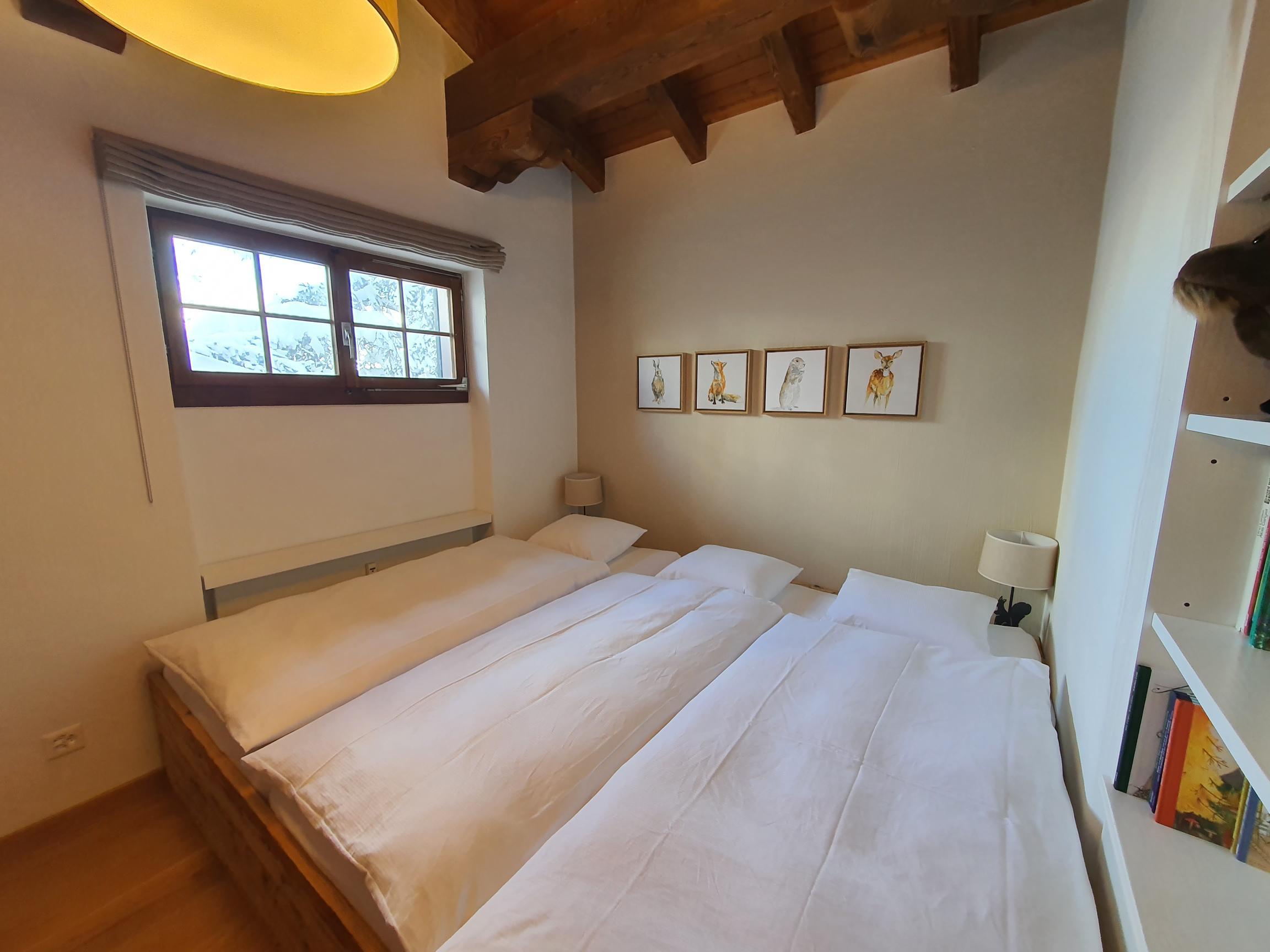 Grosszüges, helles Wohnzimmer mit Cheminée. Charmantes Esszimmer mit offener Küche. Grosser Balkon. 1.Geschoss: ein Schlafzimmer (Doppelbett 180x210) sowie En-Suite Badezimmer inkl. Badewanne, direkt neben dem Wohnzimmer. Auf dieser Etage separate Gästetoilette vorhanden. 2.Geschoss: eine Gallerie, zwei weitere Schlafzimmer und ein weiteres Badezimmer mit Dusche vorhanden. Dabei handelt es sich um ein Doppelbettschlafzimmer (Doppelbett 180x210) und ein Dreibettschlafzimmer. Holzbalken, Möbel aus Altholz sowie der Holzboden vermitteln Wärme.