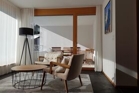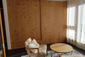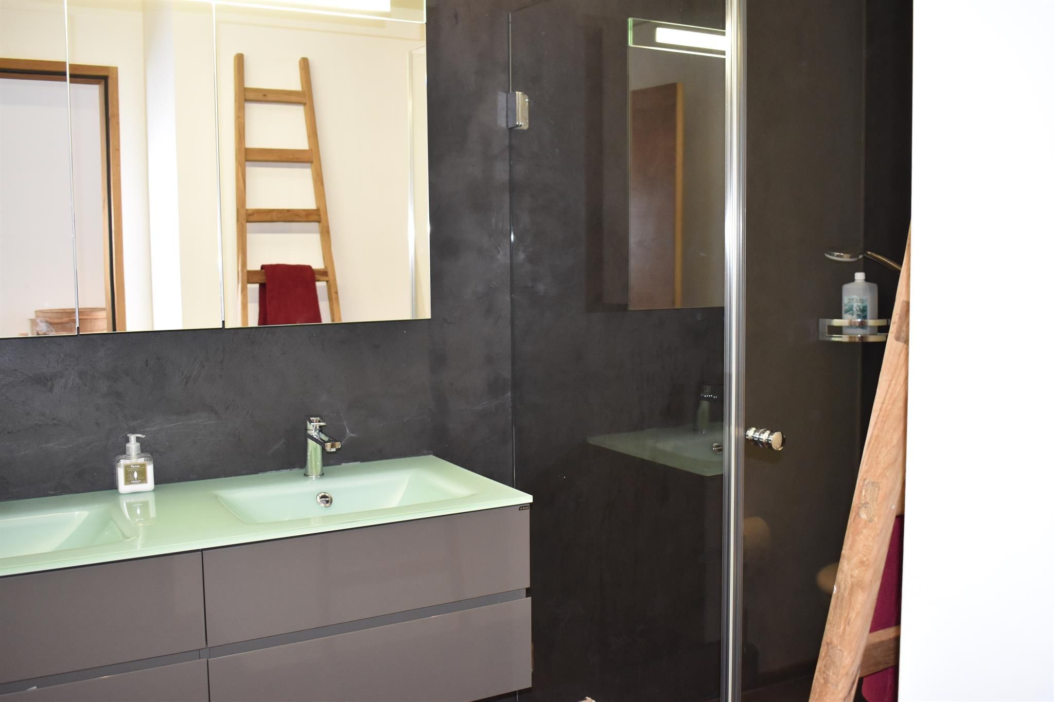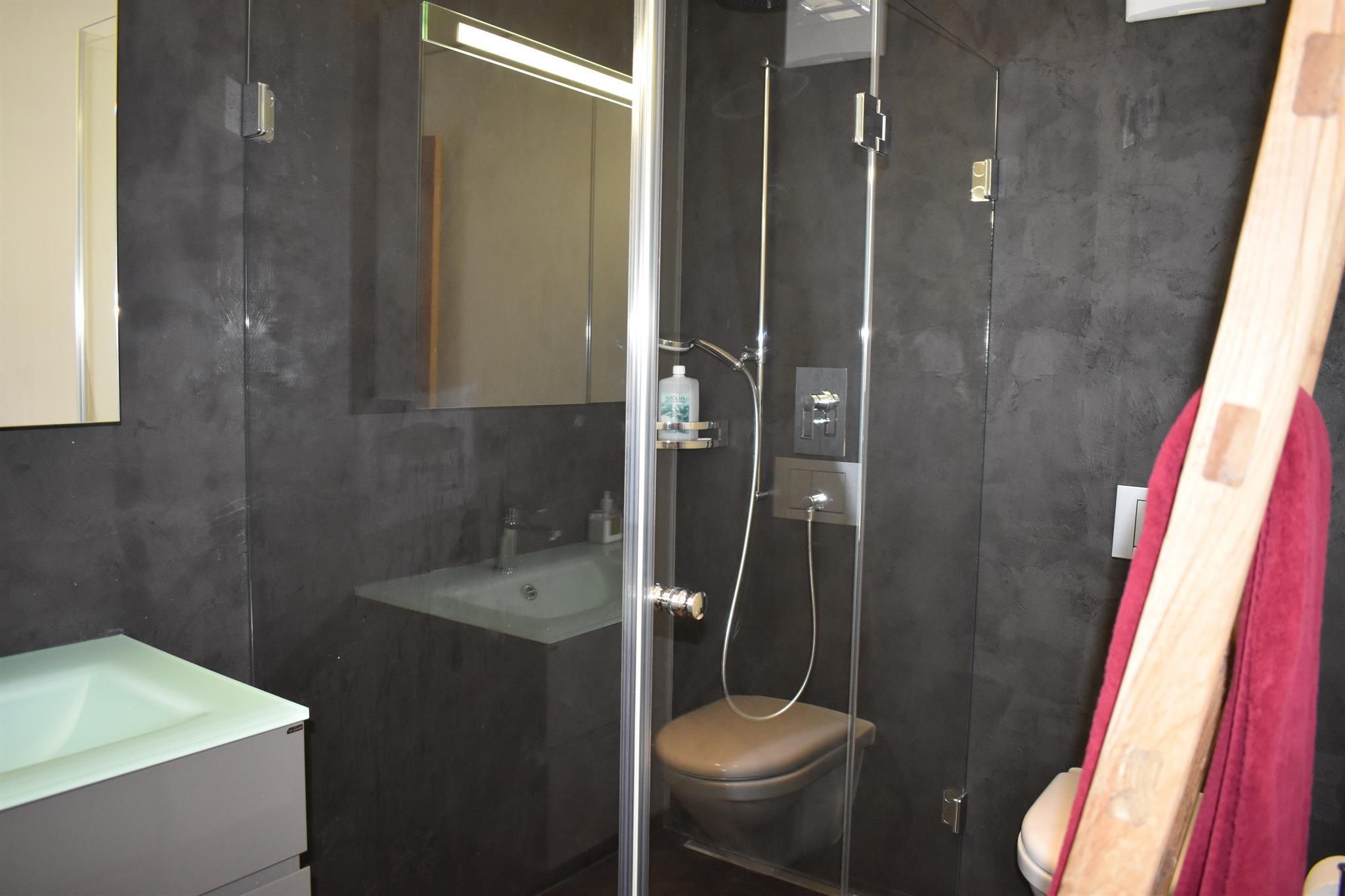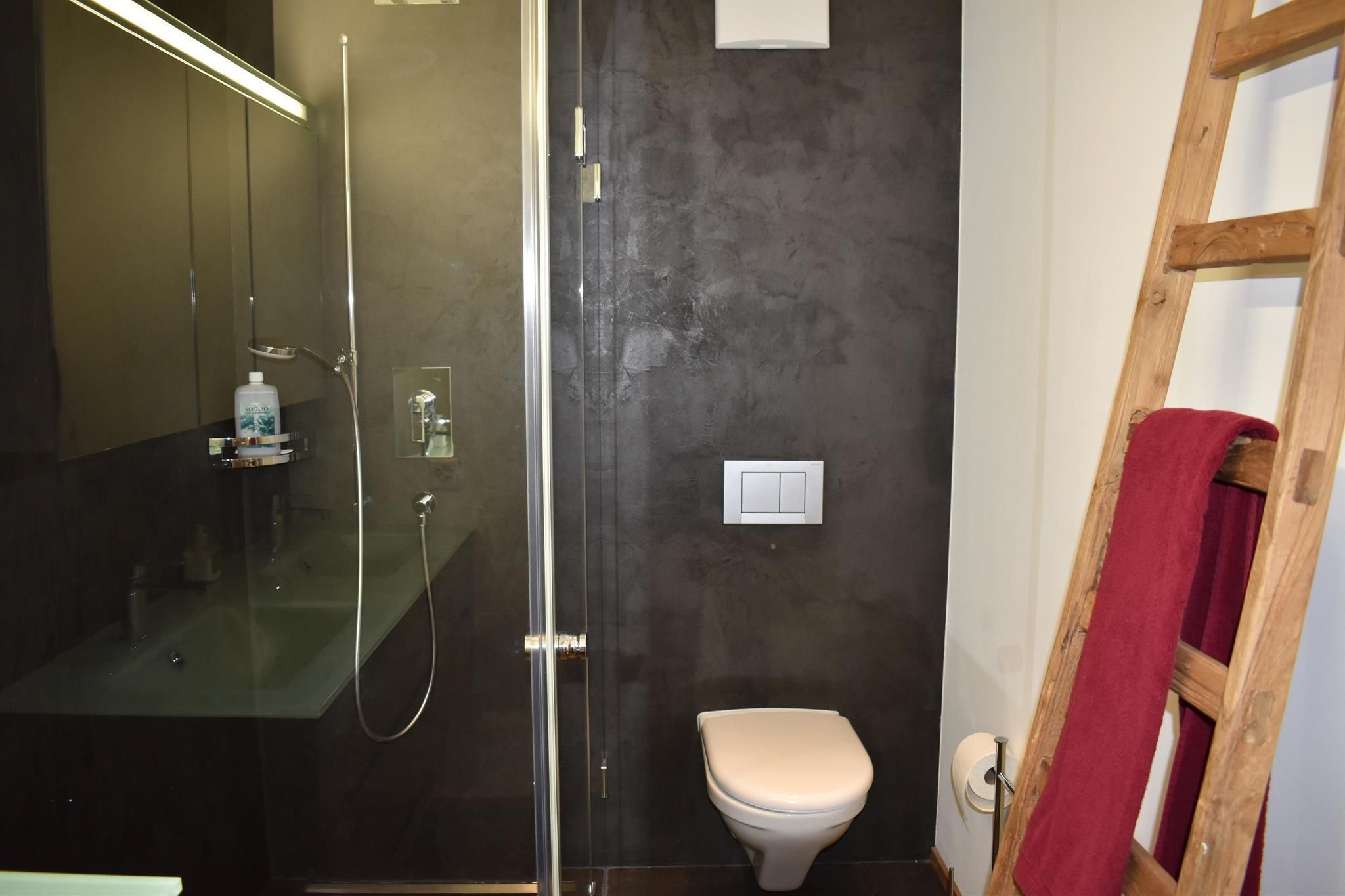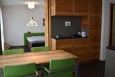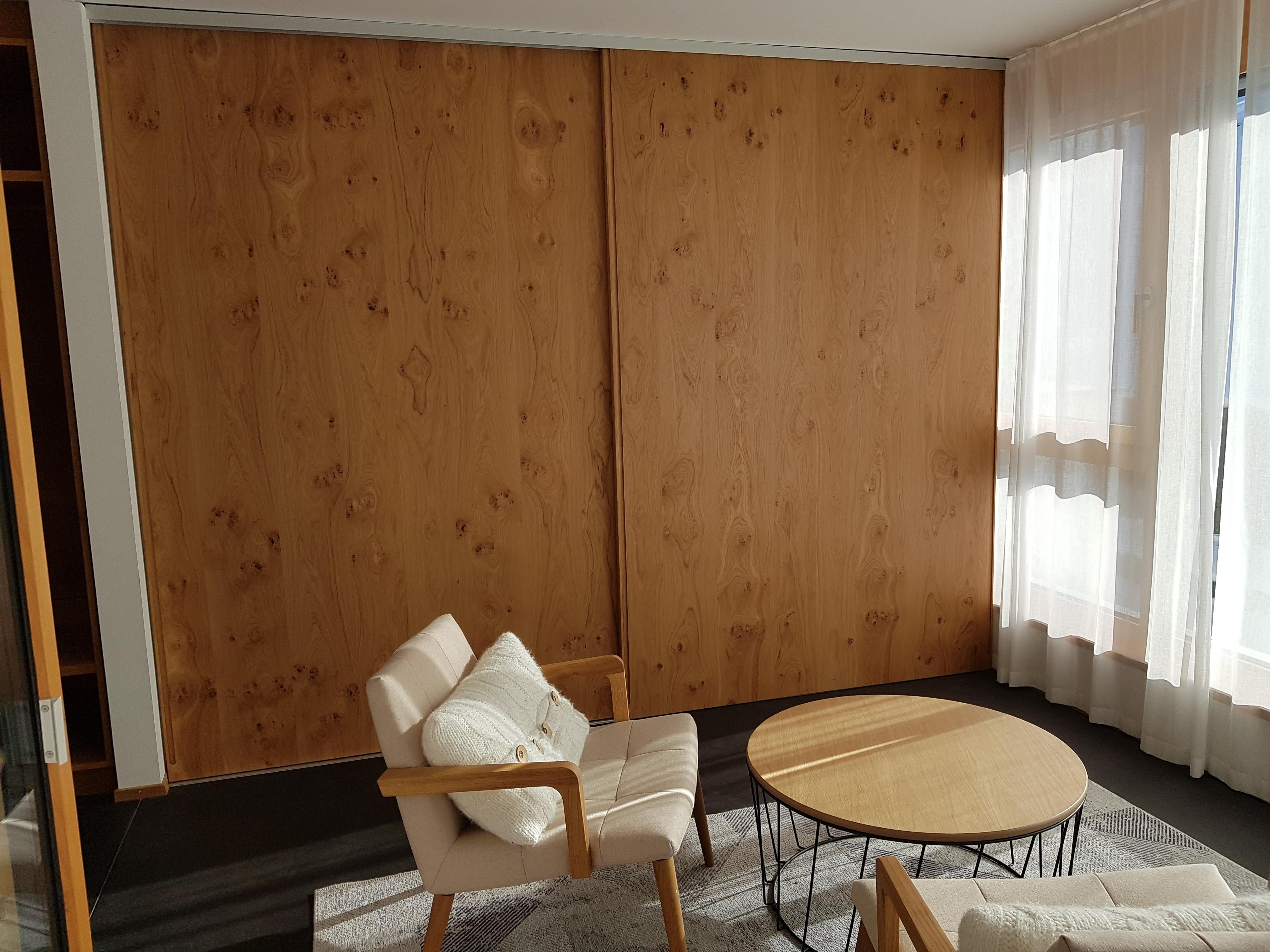 Eingang mit offener Garderobe, Putzschrank und Kommode, Wohnzimmer mit grossem Schlafsofa (180x200) und TV. Es gibt eine Holzwand die man nach Bedarf zuschieben kann, Ausgang zum Ostbalkon (von der Strasse abgewendet), Ostbalkon mit Tisch, Bank und 2 Stühlen, Küche mit Inductionsherd, Dampfabzug, CombiAir-Steamer, grossem Kühlschrank mit Gefrierfach, Geschirrspüler und Esstisch mit Stühlen / Schlafzimmer mit Doppelbett (140x200) und Einzel-Hochbett (90x190), Einbau-Kleiderschrank, Dusche/WC/Doppellavabo.