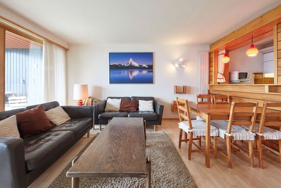 Blava 108, 3-Zimmer-Wohnung im 1. Stock. Komfortabel und gemütlich eingerichtet: Wohn-/Esszimmer mit offenem Kamin, TV und DVD. Ausgang zum Balkon. 1 Zimmer mit 1 Doppelbett (160 cm, Länge 200 cm). 1 Zimmer mit 2 x 2 Etagenbetten (90 cm, Länge 190 cm). Offene Küche (3 Kochplatten, Backofen, Geschirrspüler, Mikrowelle). Bad/WC, sep. WC. Balkon, Ostlage. Sehr schöne Sicht auf die Berge und die Landschaft. Bitte beachten: Nichtraucher-Unterkunft. Kein Fahrstuhl.