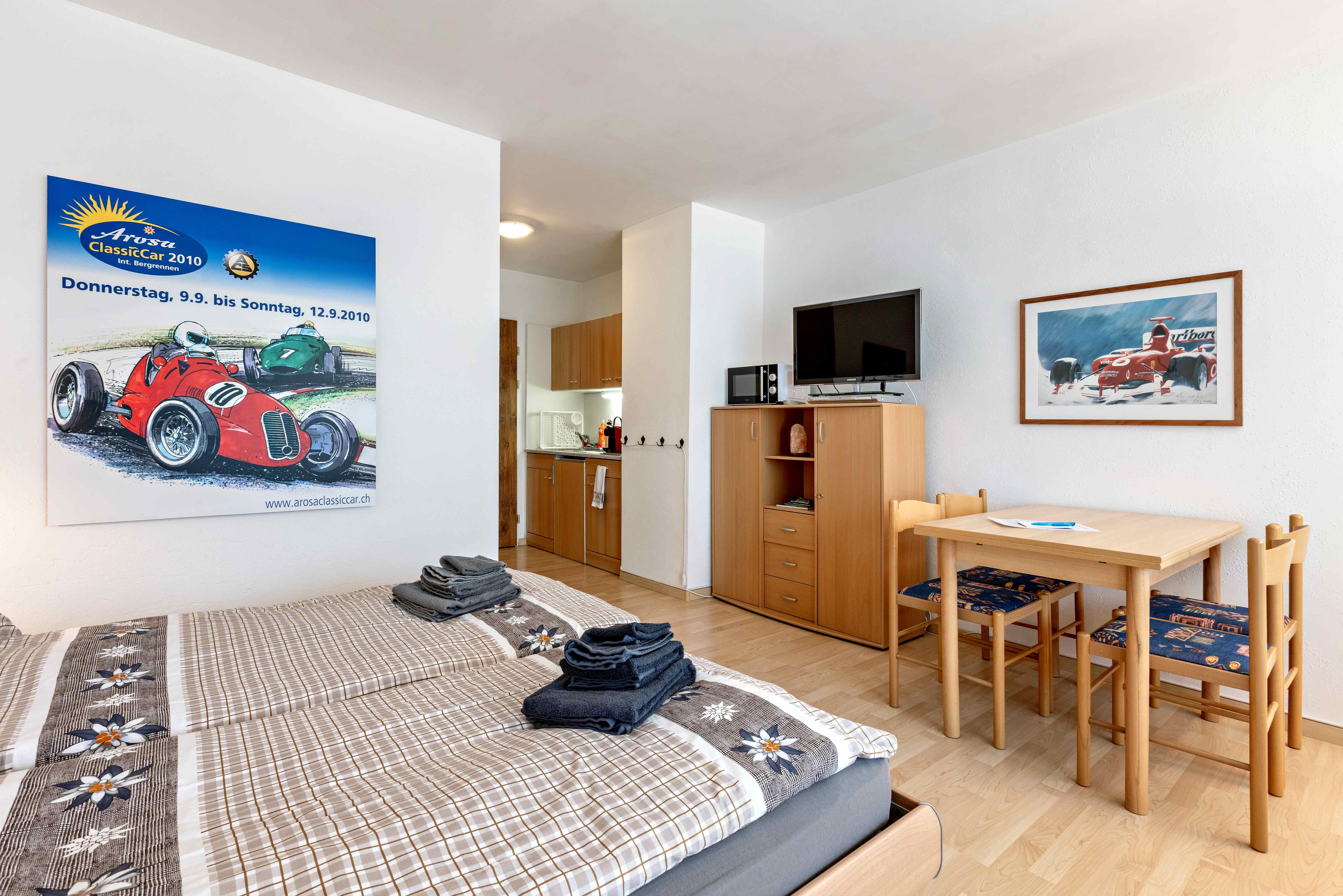 Die Ferienwohnung Derby 26A liegt direkt am Obersee, 300m von der Weisshornbahn und der Sesselbahn Tschuggen Ost und lediglich 50m von der nächsten Bäckerei entfernt. Das zentral gelegene Derby ist nur durch die Poststrasse von der Promenade des Obersees entfernt. Bahnhof, Bushaltestelle, Eishalle, die offene Eisfläche (Fussballplatz), Apotheke, Bäckerei, Lebensmittelgeschäfte und verschiedene Restaurants befinden sich in unmittelbarer Nähe. Das Derby ist ein optimaler Ausgangspunkt für alle Schneesportarten und viele Sommeraktivitäten.