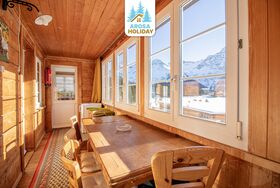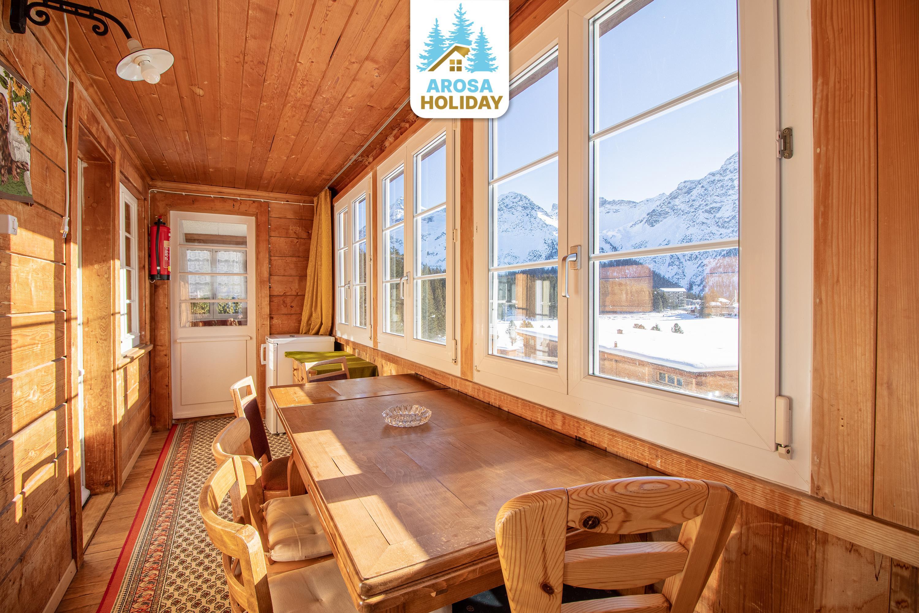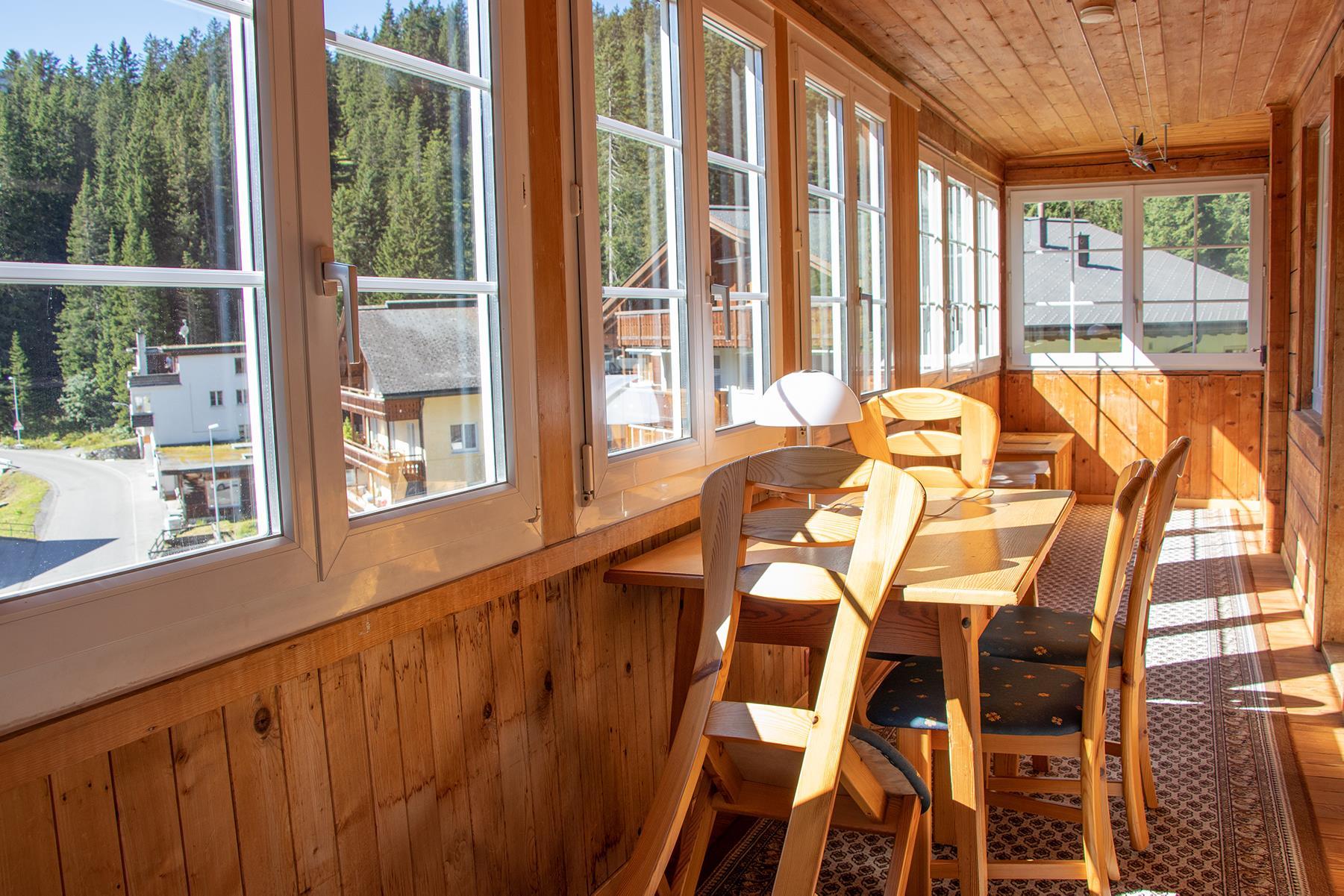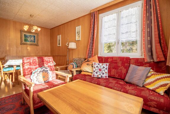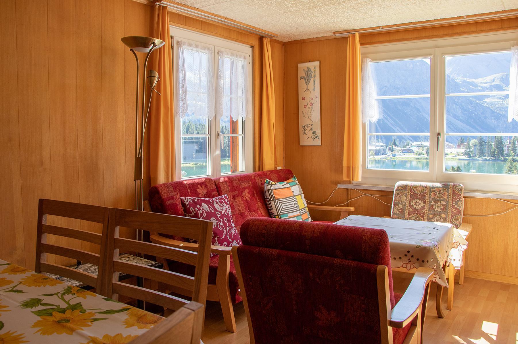 Die rustikale 4-Zimmer-Wohnung befindet sich im 1. Stock eines alten Holzchalets an ruhiger Lage am Obersee. Die Wohnung befindet sich in unmittelbarer Nähe zum Bahnhof und den Bergbahnen. Der verglaste Vorraum bietet einen herrlichen Blick auf den See.