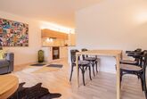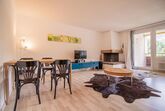 Geräumiges Wohn- und Esszimmer mit Schlafcouch (für 2 Personen) und Kamin