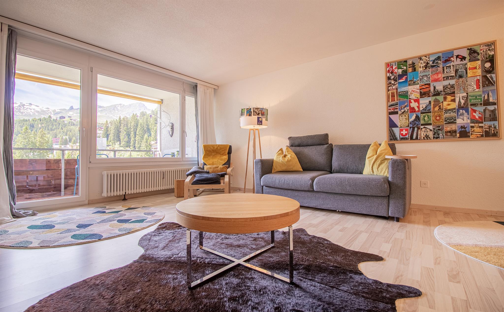 Die geräumige und moderne 2-Zimmer-Wohnung befindet sich im 10. Stock des Rothornblick Gebäudes an ruhiger Lage und von viel Natur umgeben. Der Balkon bietet einen herrlichen Bergblick. Während den Öffnungszeiten des direkt nebenan gelegenen Hotel Robinson Club Arosa, können der Swimming Pool und das Fitness kostenfrei mitbenutzt sowie im Winter vom Skibus profitiert werden.