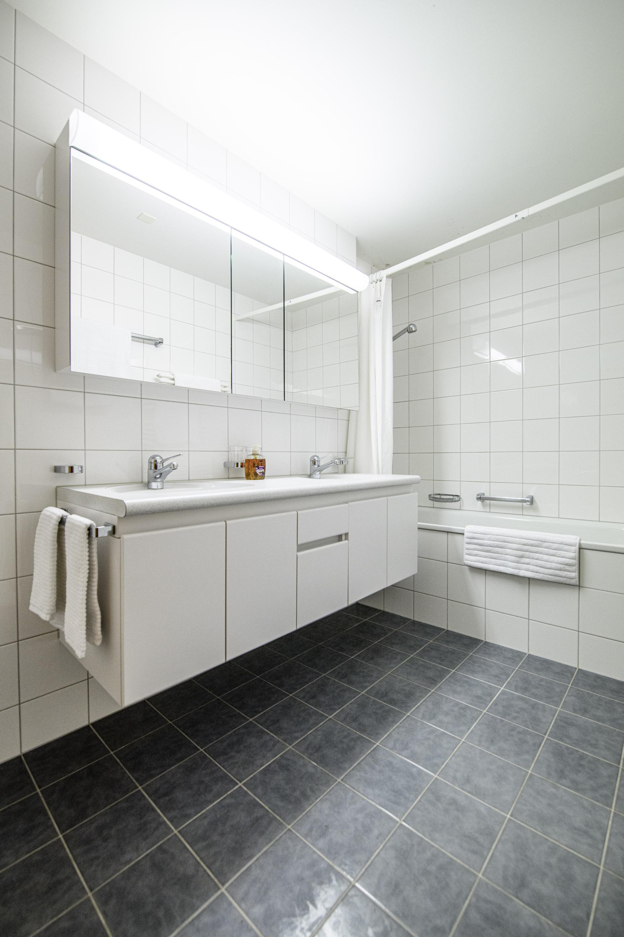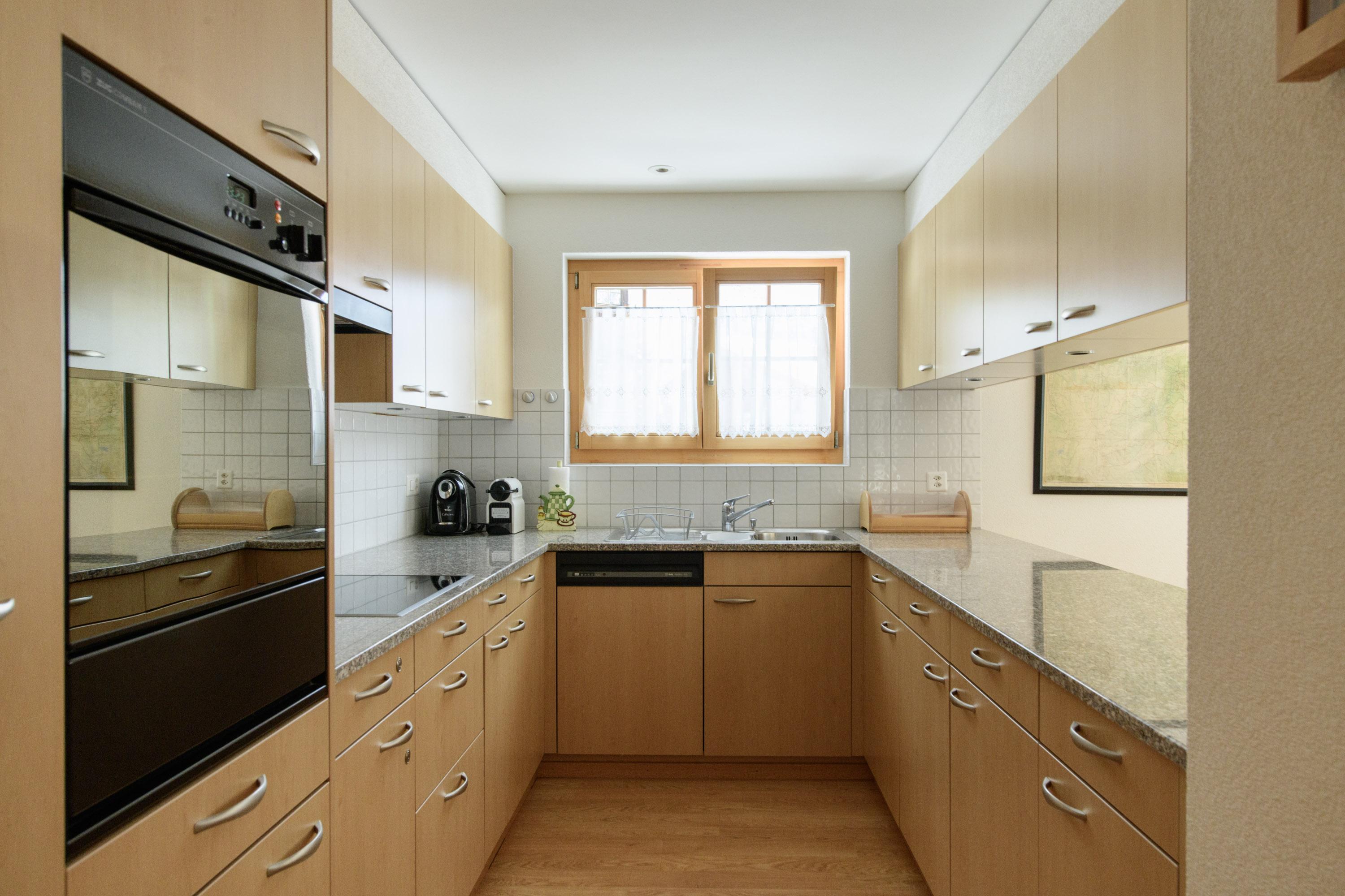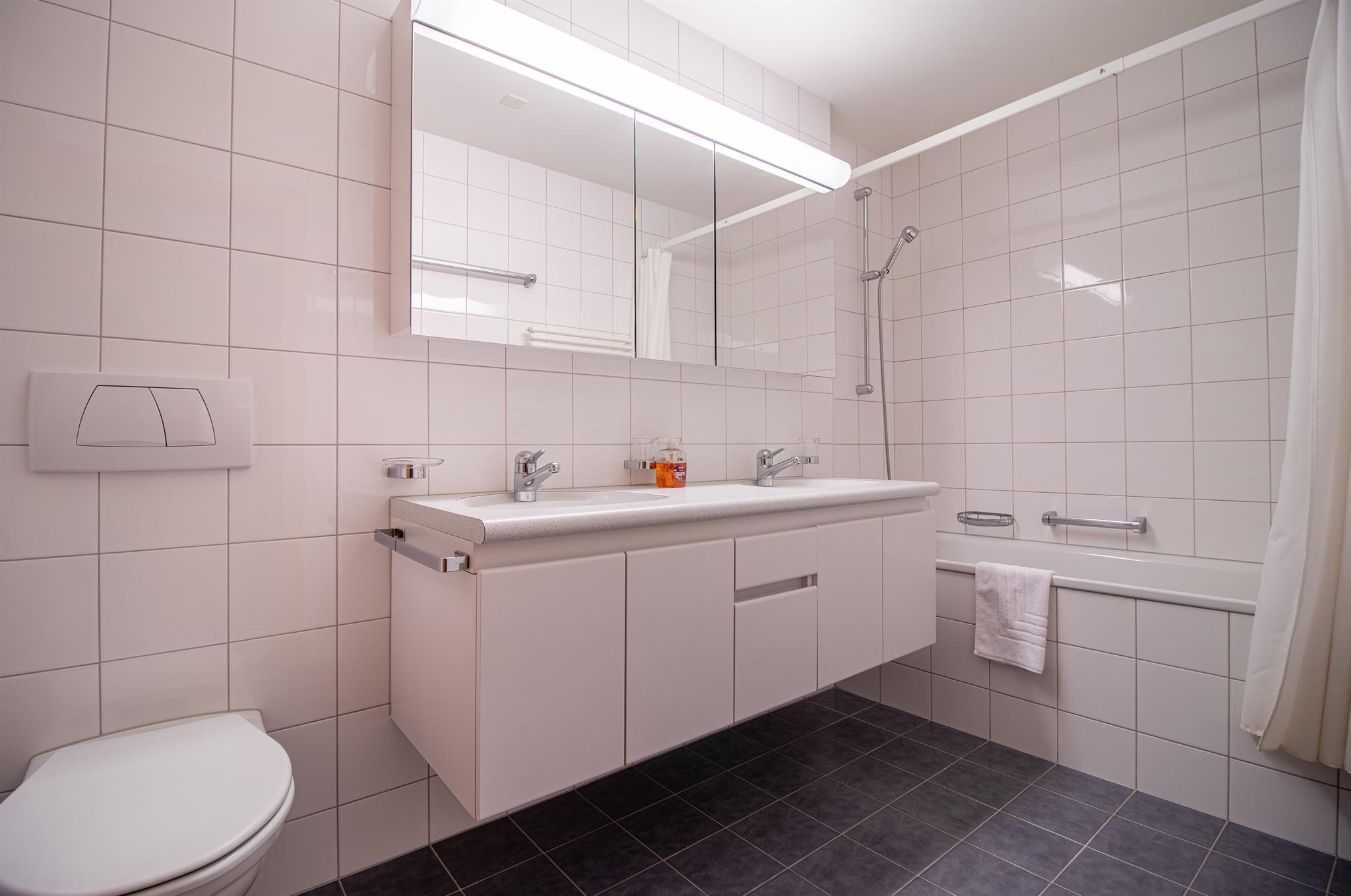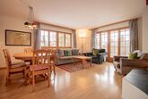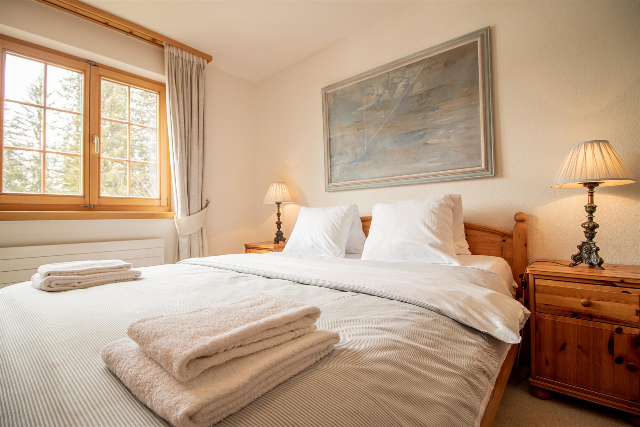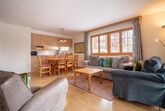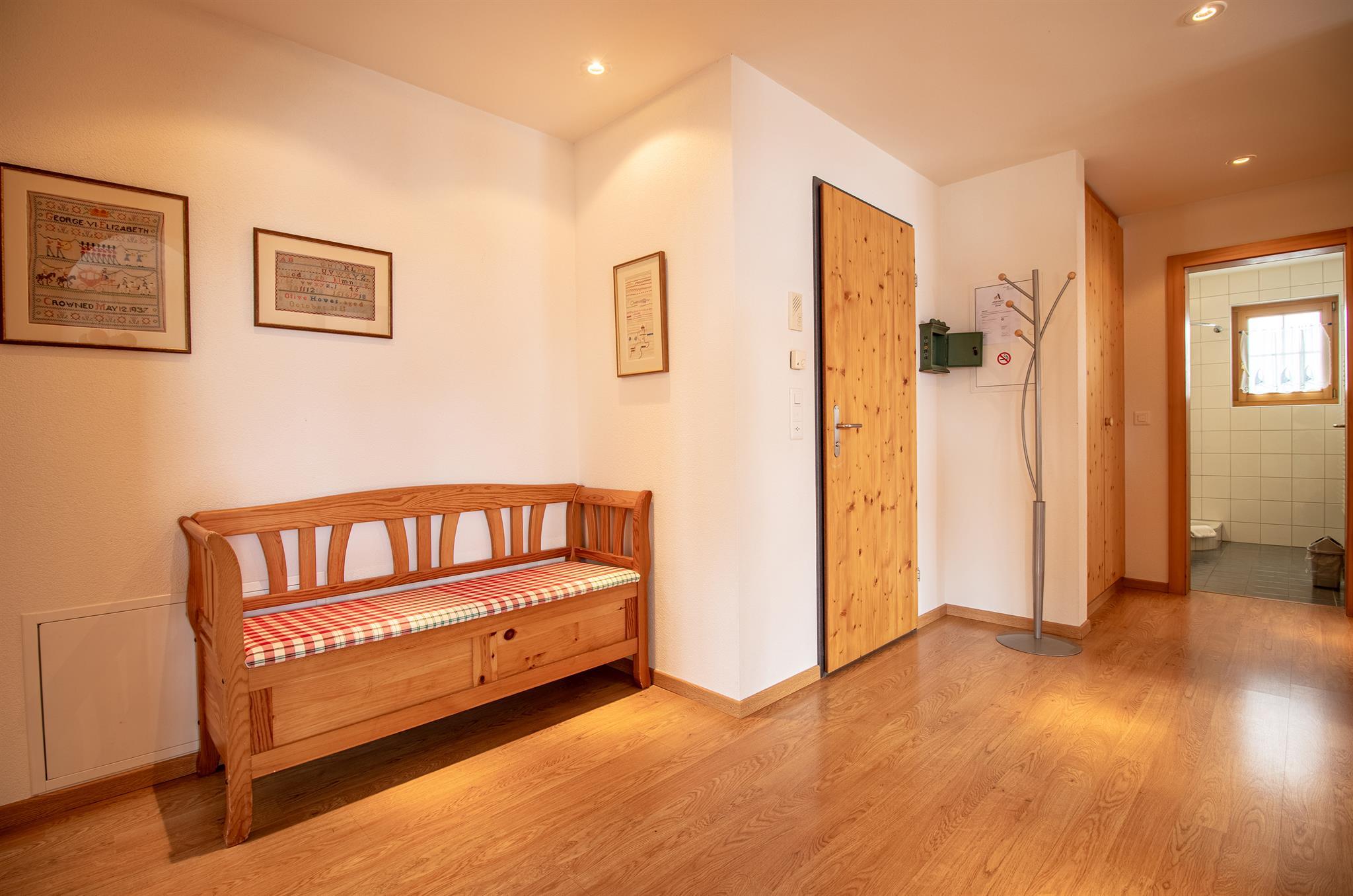 Neumöbilierte Wohnung mit schöner Wohnküche, im Wohnzimmer befindet sich ein Bettsofa als zusätzliche Schlafmöglichkeit. Cheminée mit Grillrost. Gemütlich eingerichteter Wohnbereich mit Parkett, TV, Radio, Telefon. Die Küche ist gegen den Essbereich offen. Ein Schlafzimmer mit Doppelbett und Bad, 1 Zimmer mit zwei zusammenstellbaren Einzelbetten, Dusche/WC,