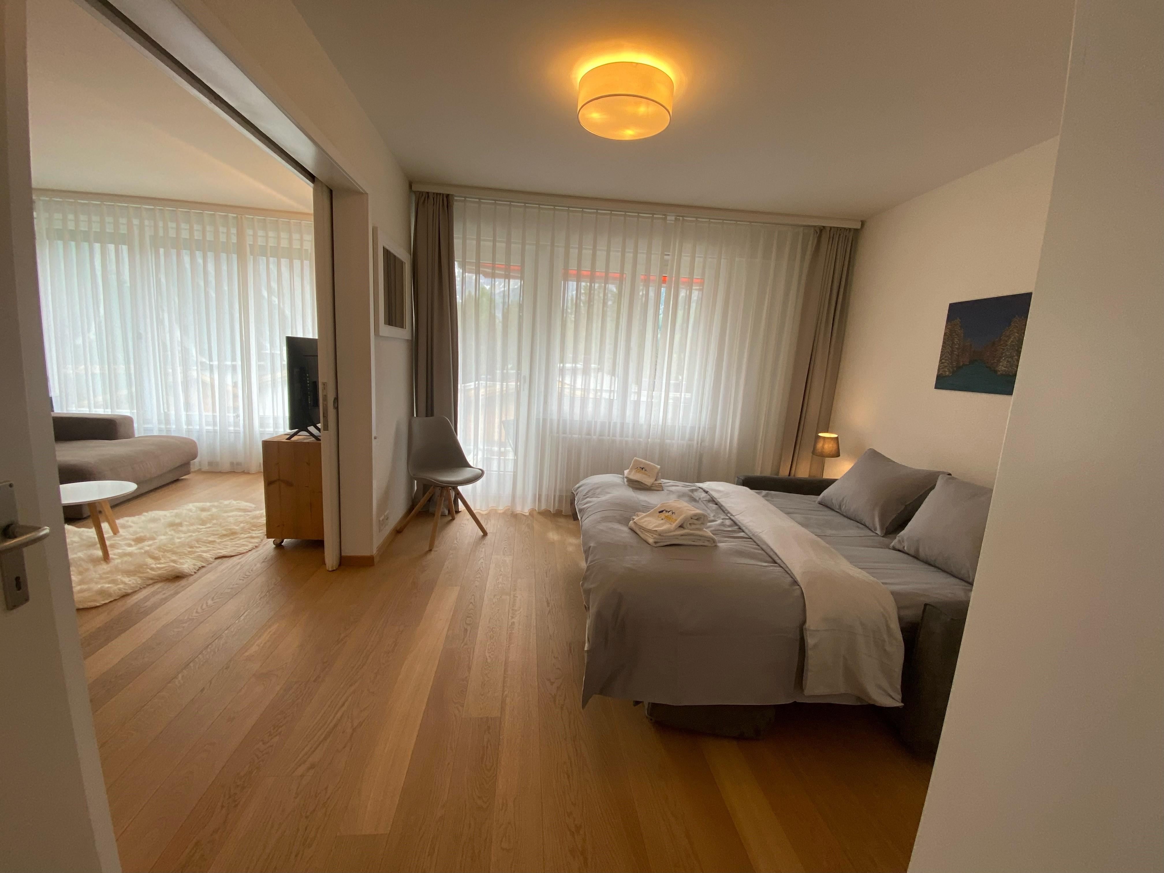 Die geräumige und moderne 4-Zimmer-Wohnung befindet sich auf der 2. Etage eines Wohngebäudes an ruhiger Lage im Zentrum von Arosa. Der spektakuläre Bergblick vom Balkon und den Zimmern ist einer der besten in Arosa. Die Bushaltestelle sowie Einkaufsmöglichkeiten an der Hauptstrasse sind in unmittelbarer Nähe der Wohnung.