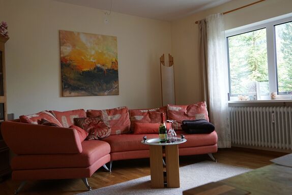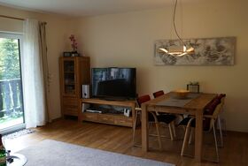 Top ausgestattete Ferienwohnung mit 2 Schlafzimmern, durchgehend Eichenparkett, Badezimmer und Küche gefliest, Fernseher mit Heimkinoanlage, kostenlos W-lan.