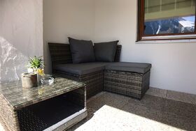 Unser neu renoviertes Nichtraucher Apartment befindet sich im Erdgeschoss und verfügt über einen Wohn /Schlafraum mit Doppelbett und Schlafcouch, einen Flachbild-TV und eine voll ausgestattete Küche mit einem Geschirrspüler, Backofen, Mikrowelle und Internet Radio.Unsere Ferienwohnung bietet zudem einen Waschtrockner sowie ein Bad mit Dusche und WC.Das Apartment verfügt über kleine Terrasse mit Bergblick vor der Ferienwohnung. Mehrere Sitzgelegenheiten sind vorhanden.