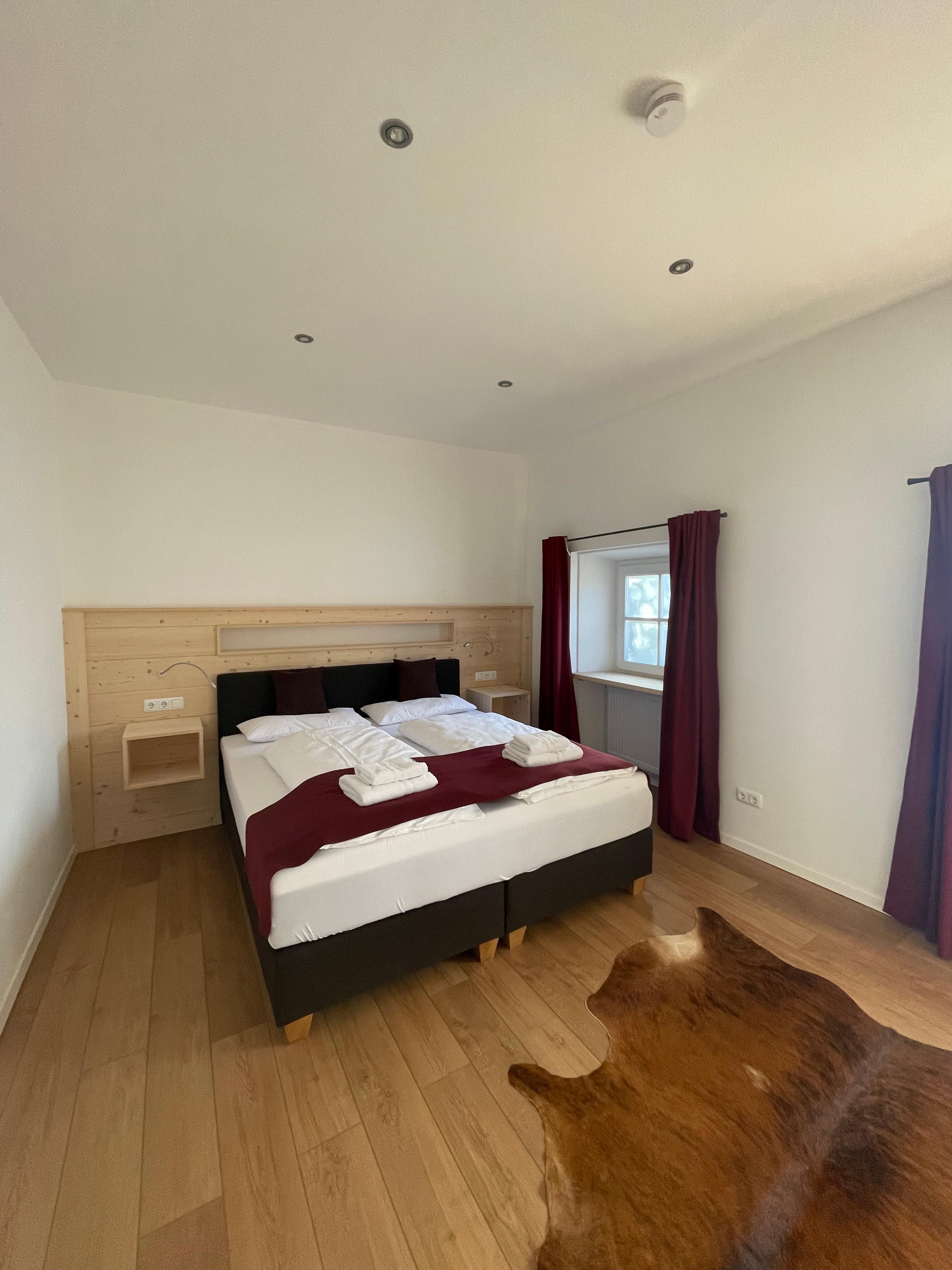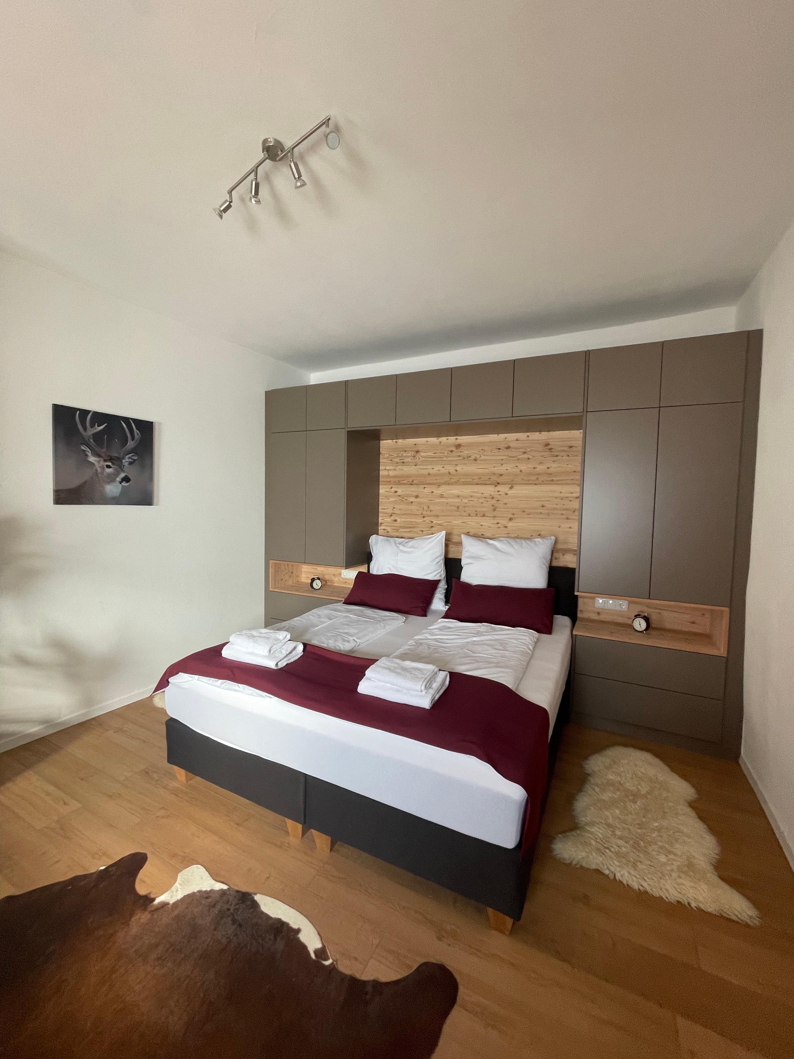 Die neu renovierte Ferienwohnung wurde mit großzügigem Inventar ausgestattet. Beide Schlafräume verfügen über ein Doppelbett sowie einem eigenen TV-Gerät. Ein Kinderbett kann auf Anfrage gerne zugestellt werden.