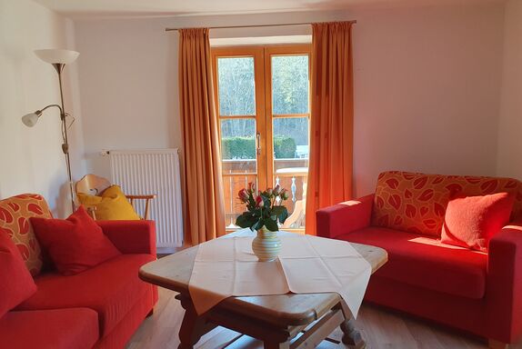 Neu renovierte Nichtraucherwohnung im Landhausstil eingerichtet mit eigenem Eingang und Balkon WLAN und SAT-TV.1 Doppelbett, 1 Schlafsofa (0,80x2,00m), 1 Schlafsofa (0,80x1,90m) im Wohnzimmer mit Lattenrost und Matratze.