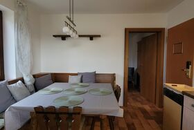 Die Unterkunft ist von Wiesen umgeben. Man hat Aussicht ins Grüne und auf die Berge. Es existieren zwei behindertengerechte Einheiten im Erdgeschoß. Im Sommer sind Kälber auf der angrenzenden Wiese. Die Unterkunft liegt am äußersten Südrand des ehemaligen Dorfes Pang (jetzt von Rosenheim eingemeindet). Diese ist sehr ruhig, sonnig und hell gelegen. Es steht eine Waschmachine und ein Trockner im Untergeschoß der Unterkunft über eine Treppe erreichbar zur Verfügung. Ein Bügelbrett und Bügeleisen sind im ebenerdigen Gemeinschaftsbereich verfügbar. Der Flughafen München ist über die Autobahn 100 km, ca 1 Stunde entfernt. Zum Flughafen Salzburg sind es 77 km über die Autobahn. In 5 Minuten erreicht man das Autobahnkreuz Inntaldreieck oder die Anschlußstelle Bad Aibling an der A8. Auch mit den öffnetlichen Verkehrsmitteln Bahn und Bus und 2 Gehminuten (nach 19:00 Uhr ca 6 km mit dem Taxi) erreicht man die Unterkunft sehr gut. Der Bus fährt im 20 Minuten Takt vom Bahnhof zur Unterkunft in Pang. Vor Ort gibt es in 2-5 Gehminuten Apotheke, Lebensmittelladen, Bäcker, Pizzaria, bayerische Wirtschaften, Post, Bushaltestellen, Dorfladen, Autowerkstatt, 5 Fahrminuten zu den nächsten Seen, Angelmöglichkeiten, Golfplatz, Boulderhalle, Ponyreiten, Beachvolleyball, Tankstelle, Supermarkt. Kanufahren, Kajakwelle, diverse Freibäder, Hallenbad, Kletterhalle, Stadtmitte (Bahnhof) sind 10 Auto-Minuten entfernt. Die nächsten Skilifte sind 18,4 km (18 Auto-Minuten bis 33 km (29 Minuten) (Nachtskilauf) entfernt. Man kann von der Haustüre weg flach Wandern, Radfahren und Bergradfahren (13 km Anfahrt über verkehrsberuhigte (Feld-) Straßen) mit sehr guter Aussicht. Die nächstgelegenen Bergwanderungen und Klettergebiete sind 18,4 km (18 Auto-Minuten) entfernt. Langlaufen kann man an den nächsten schneesicheren Zielen in ca. 30 km Entfernung ca. 30 Minuten entfernt in zB. Sachrang und Bayrischzell, Tiersee etc., 55 km in 53 Minuten dauert die Anfahrt zum legendären Alpinkletter und Wander Mekka - dem Kaisergebirge. Wenn es um Berg-, Skisport, Klettersteige, Hochtouren und Eisklettern geht, sind sie von der Vermieterin bestens beraten und geführt. Diese ist staatlich geprüfte BERG UND SKIFÜHRERIN. Tauchen, Windsurfmöglichkeiten und geführte Angeltouren mit Boot bietet der Chiemsee. Das Westufer erreicht man in ca. 29 km und 25 Minuten. Zur nächsten Gleitschirmschule und den nächsten Flugbergen sind es ca. 16 km. Der nächste Pferdeeinstellplatz mit Reithalle ist 1 km entfernt. Das Gelände eignet sich sehr gut zum Ausreiten.