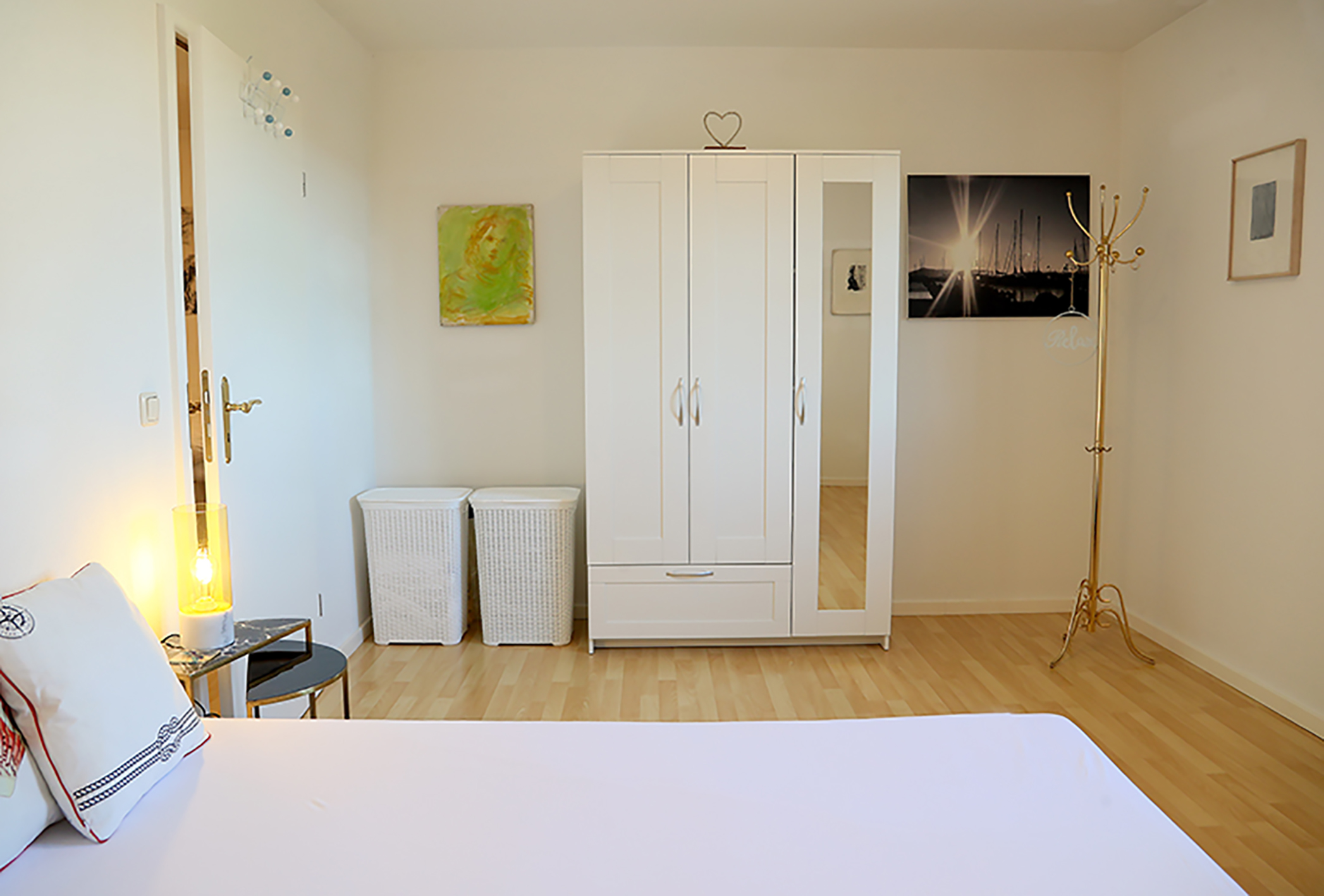 In dieser Ferienwohnung werden 2 Kofferständer, Dusch-, Handtücher, Bettwäsche, Strandtücher, Decken, Wäscheständer, Haussschuhe und Pflegeprodukte angeboten.